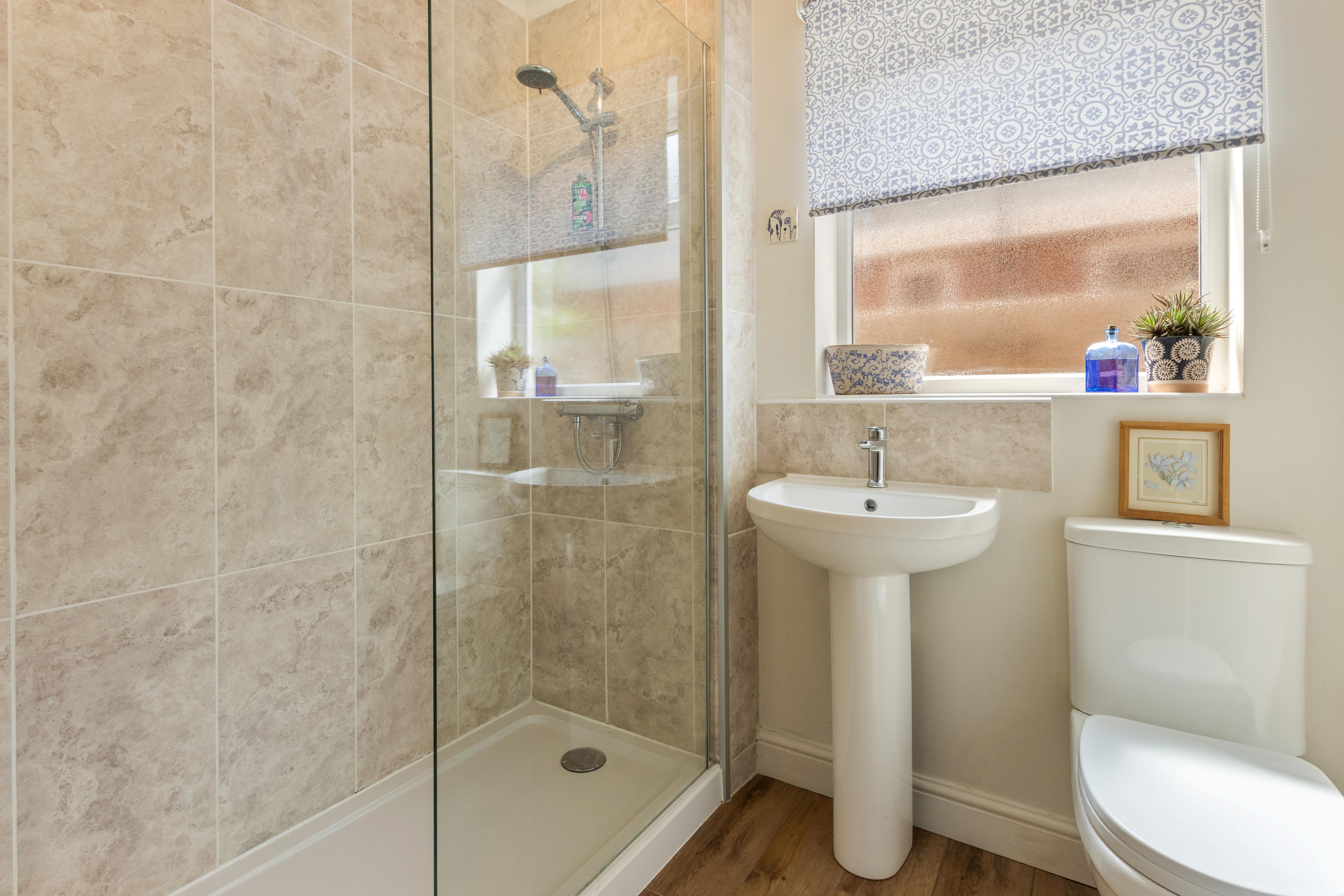 There are two well-proportioned double bedrooms, with Bedroom 2 currently utilised as a cosy snug or home office, highlighting the home’s flexibility. The accommodation is completed by a modern shower room, featuring a walk-in shower, wash hand basin, and WC.