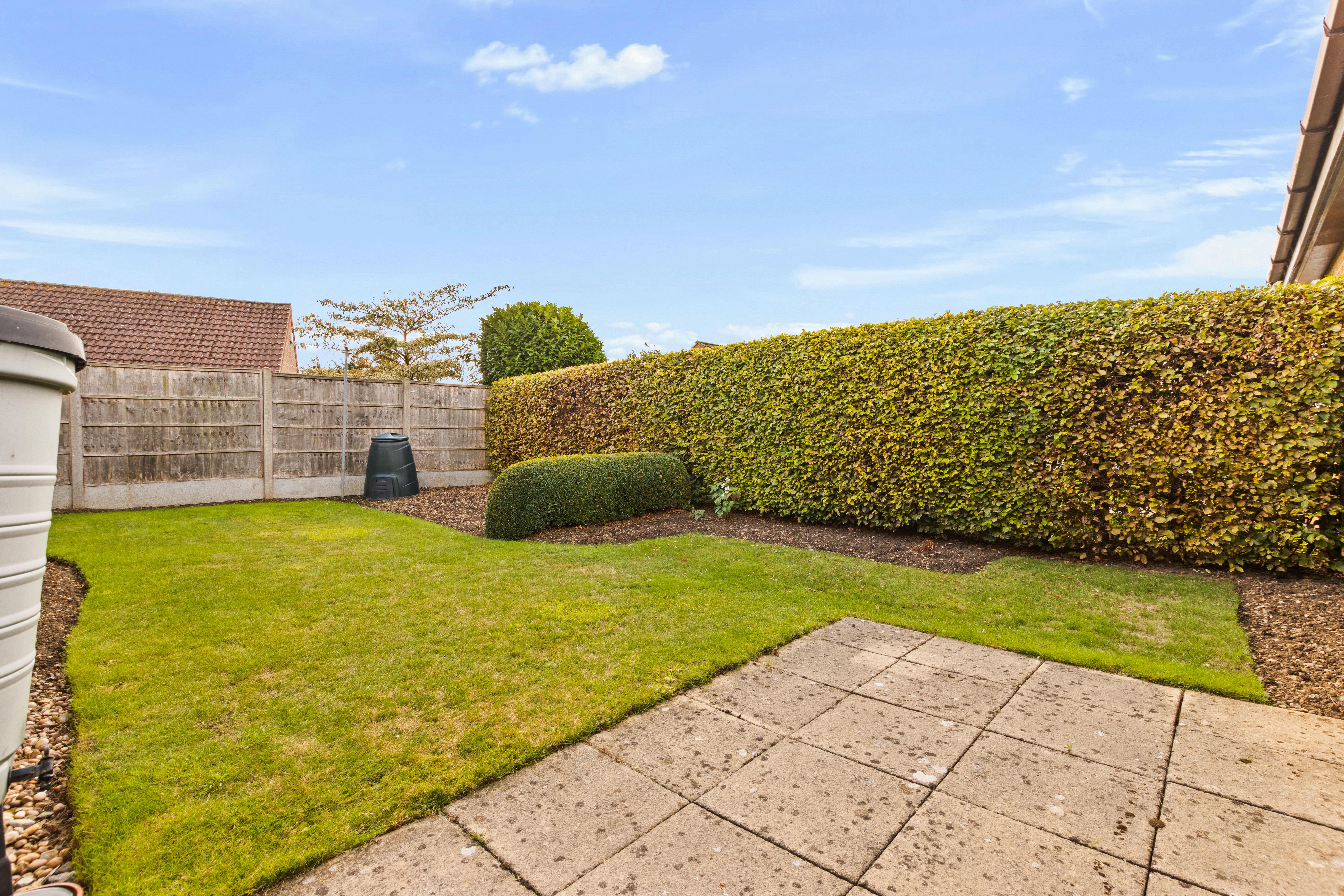 The rear garden is private and easy to manage mainly laid to level lawn with shaped borders for seasonal colour, a smart clipped hedge along one boundary and panel fencing elsewhere. A paved path/patio by the house makes a sunny perch for morning coffee, and there’s a water butt by the garage plus tidy gravel margins to keep maintenance low. Loads of space to potter, yet simple to look after.