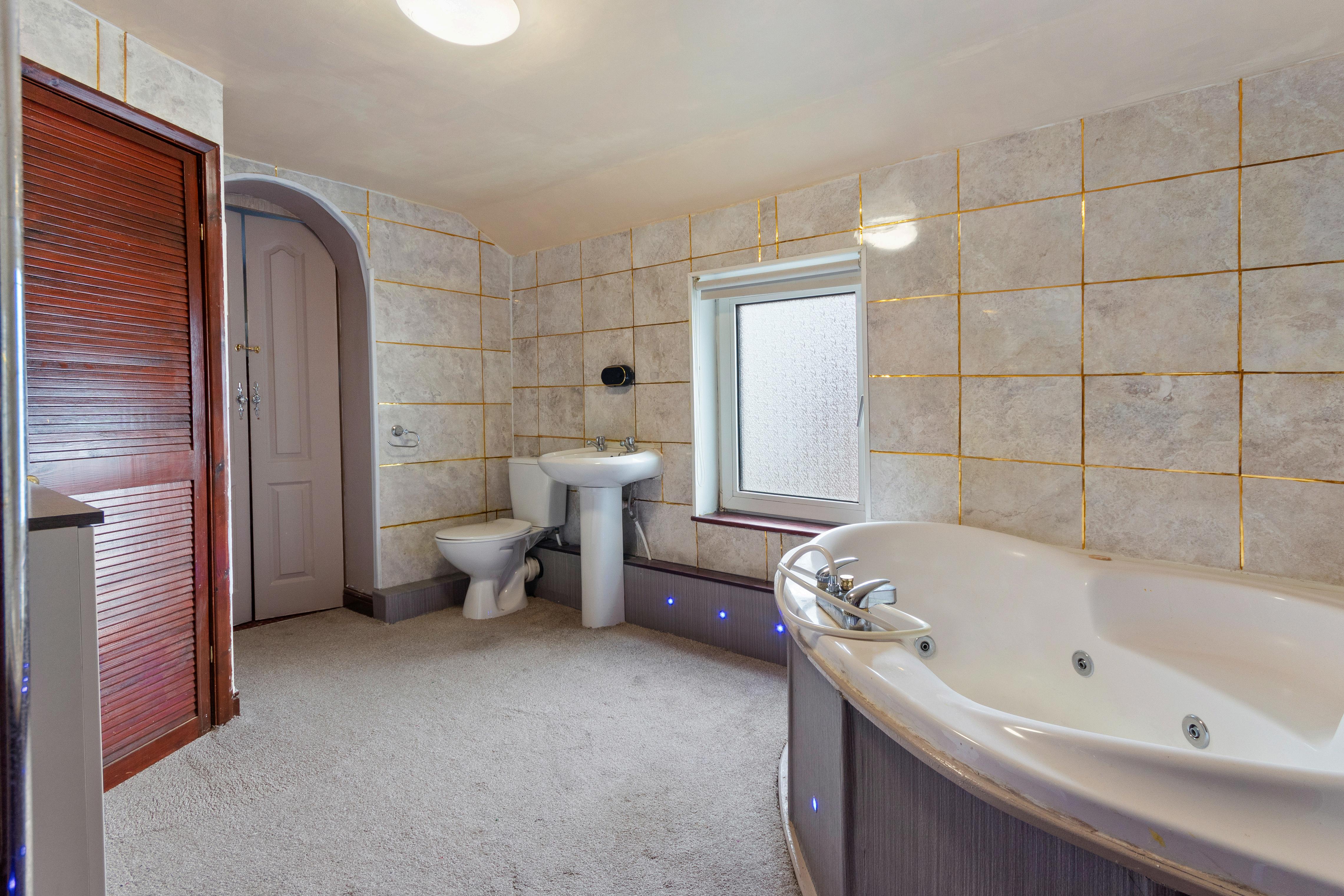 The first floor boasts three double bedrooms, including a particularly spacious principal bedroom at the front. A large family bathroom with jacuzzi bath, sits centrally for convenience, serving all bedrooms.