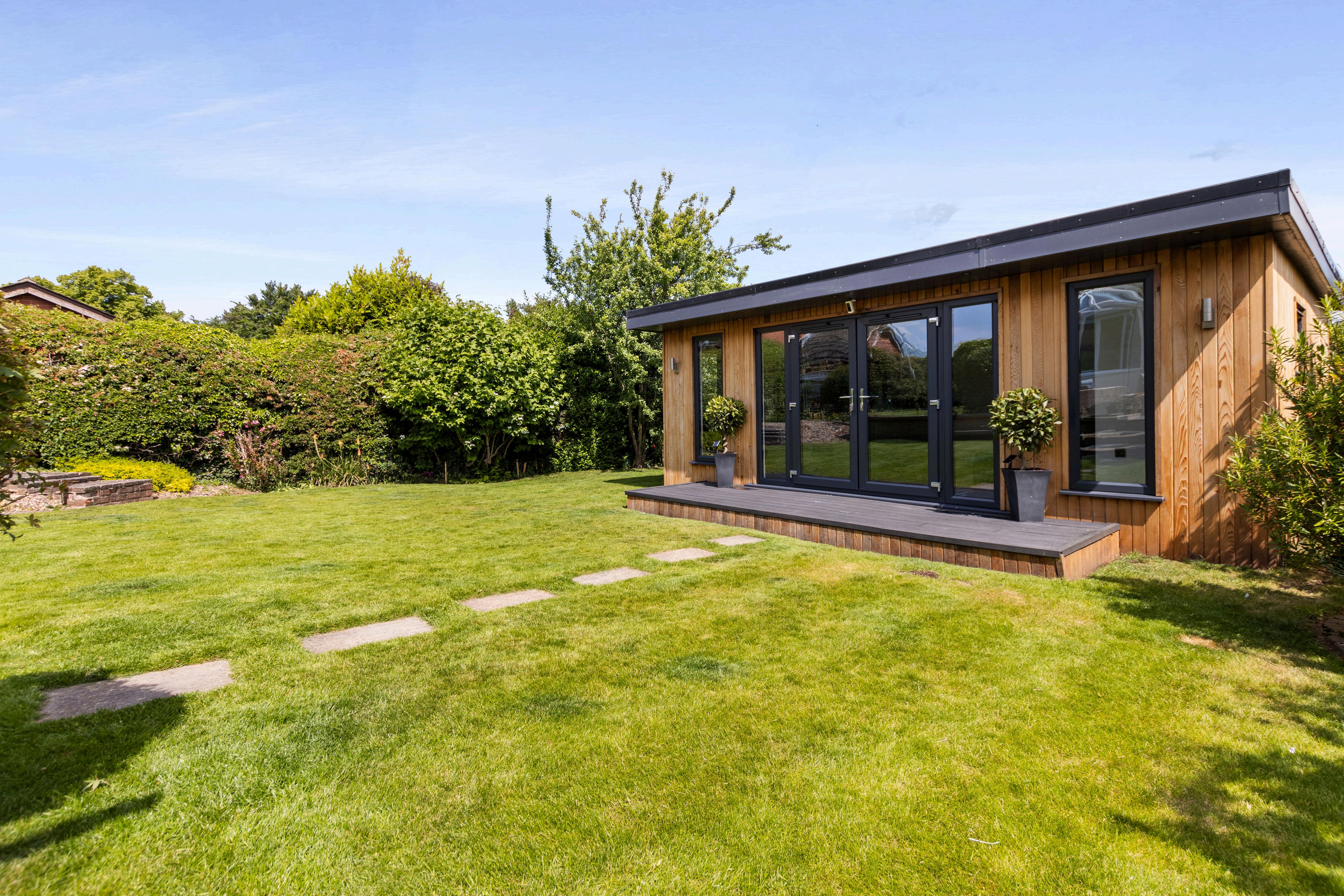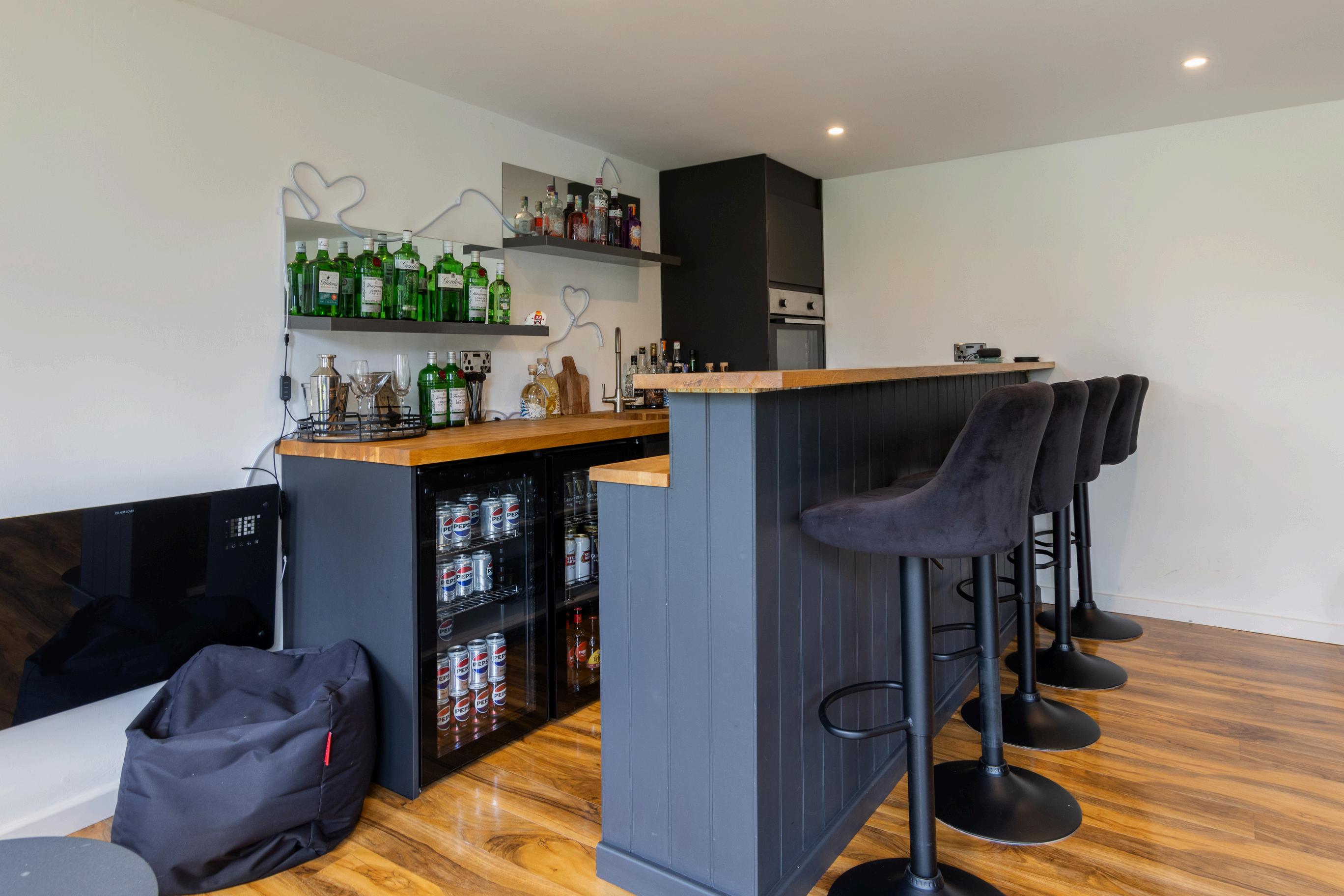Outside, the property continues to impress with a front drive-in/out driveway and side access leading to a meticulously maintained rear garden. Here, a charming patio extends from the kitchen diner, surrounded by lush lawns and bordered by mature shrubs and flowers. A highlight of the garden is the stunning summer house, currently fashioned as a versatile bar complete with its own shower room, ideal for entertaining guests or relaxing in seclusion.