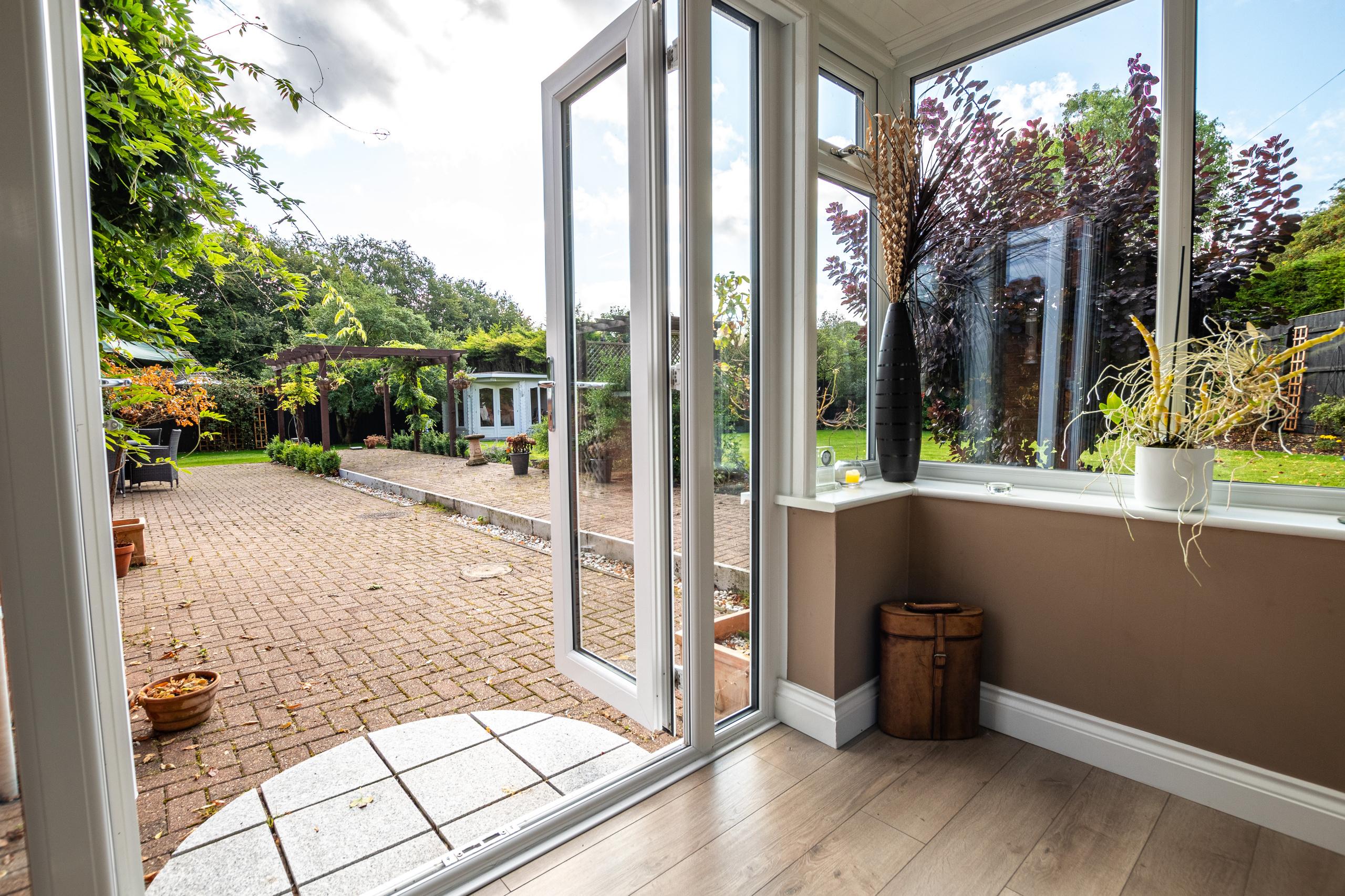 The garden has a prestigous frontage with open plan gardens whilst the rear garden is a gardeners dream with large lawn area, patio areas and mature planting of trees and shrubs to central borders and perimeters. The owners have only recently installed a fabulous summer house with power and light too to take full advantage of this charming garden.