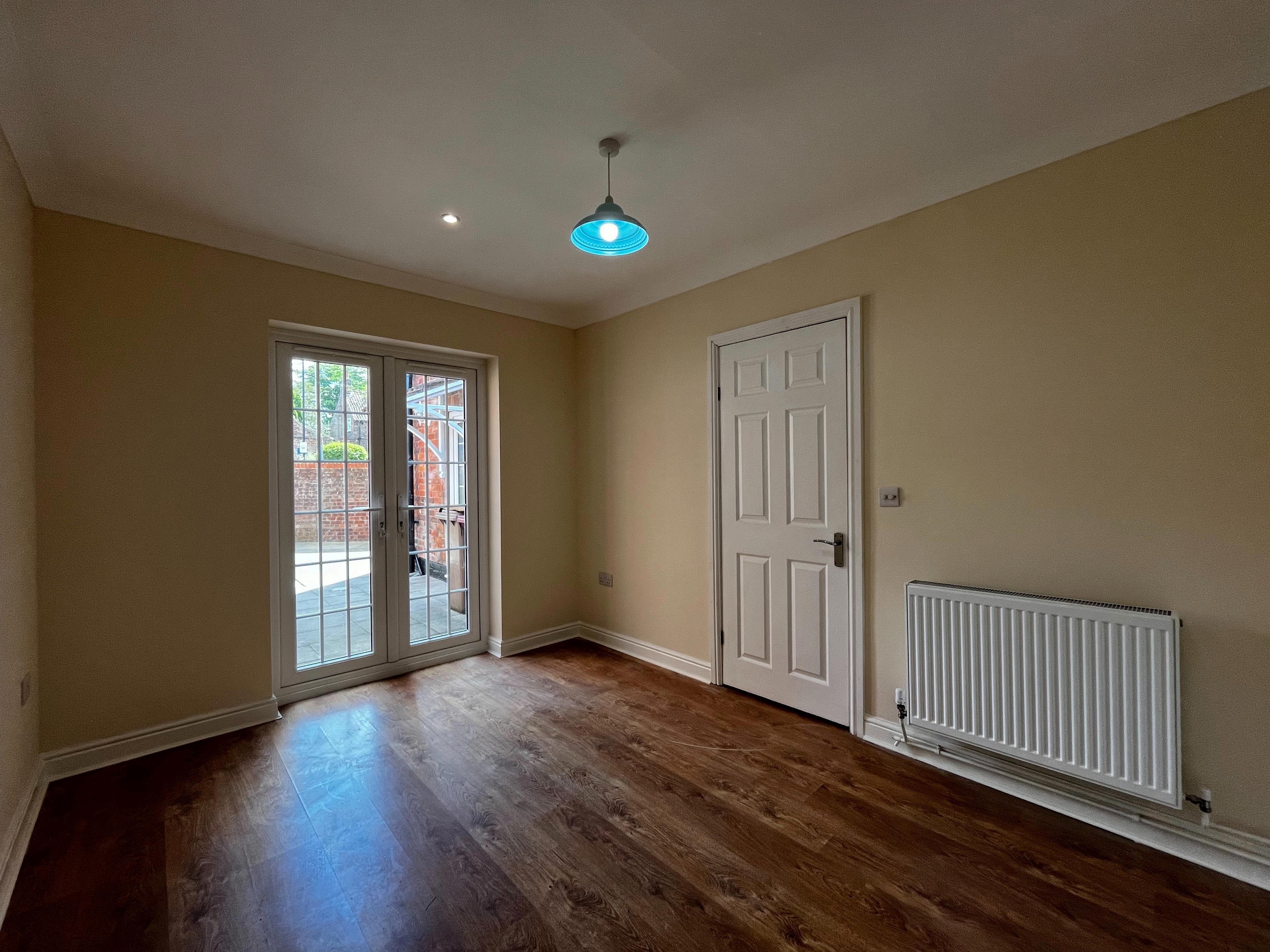 The forward-facing lounge exudes warmth and character, boasting classic sash windows that flood the room with natural light, a cozy electric fire, and a doorway leading into a separate dining room. This dining area also offers access to the rear walled courtyard, creating a seamless flow between indoor and outdoor spaces.