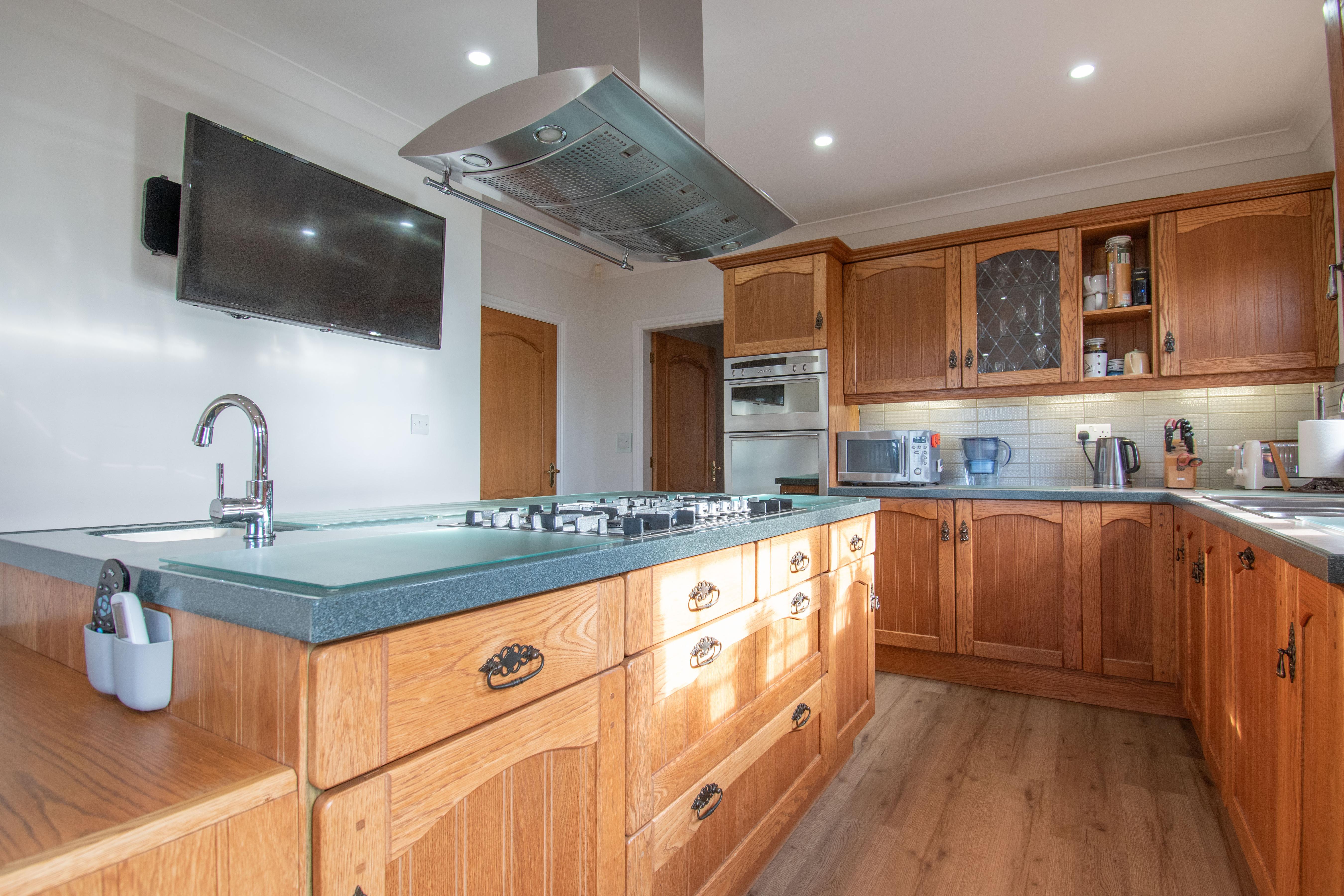 GRAHAM FOULGER, SALES DIRECTORThe front entrance door opens into a welcoming reception/sitting room. A rear facing lounge is referred to as the television room by the current owner and has a stove coal effect gas fire set on a modern raised hearth; glazed double doors open onto the raised terrace maximising the view.