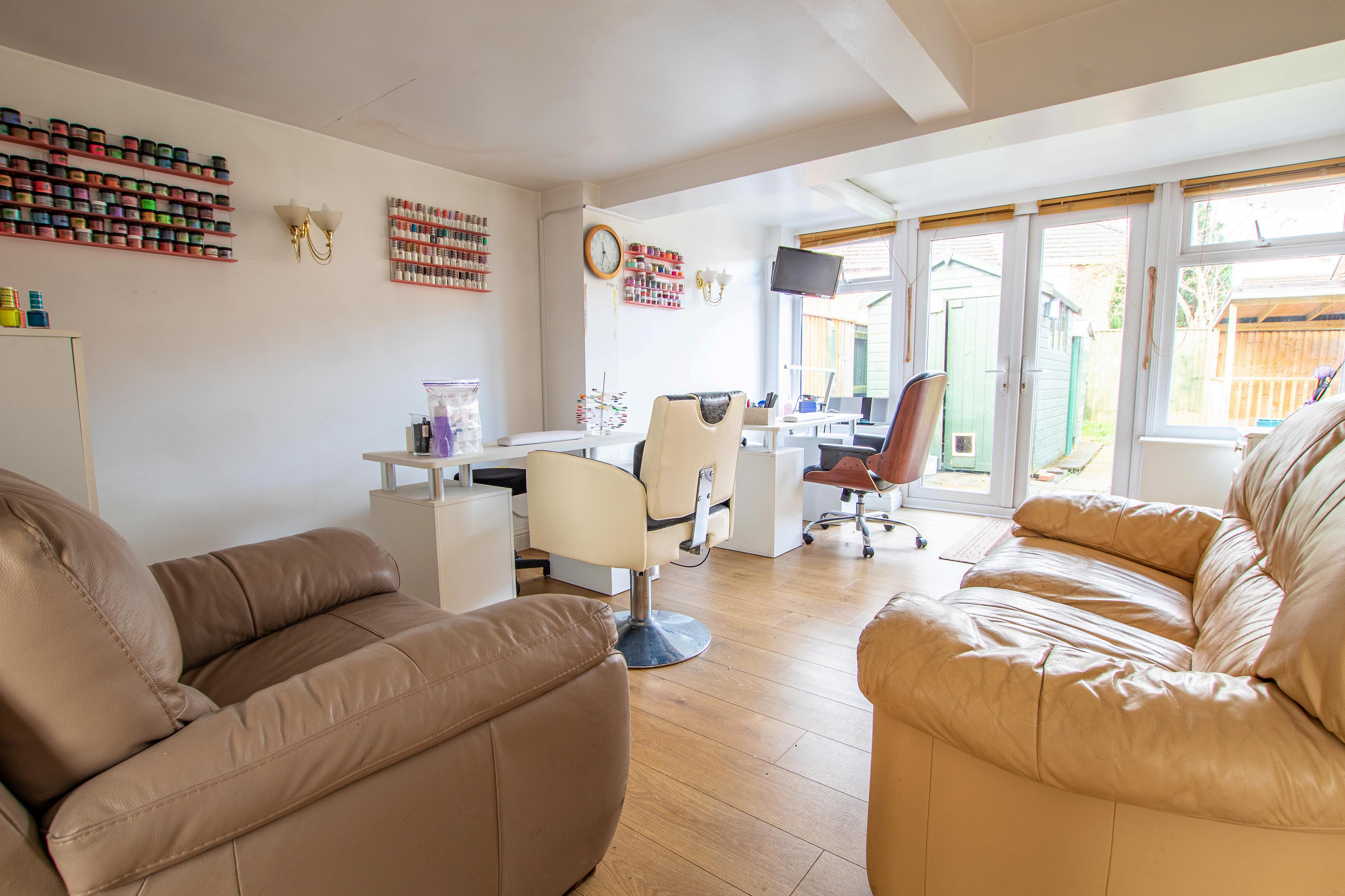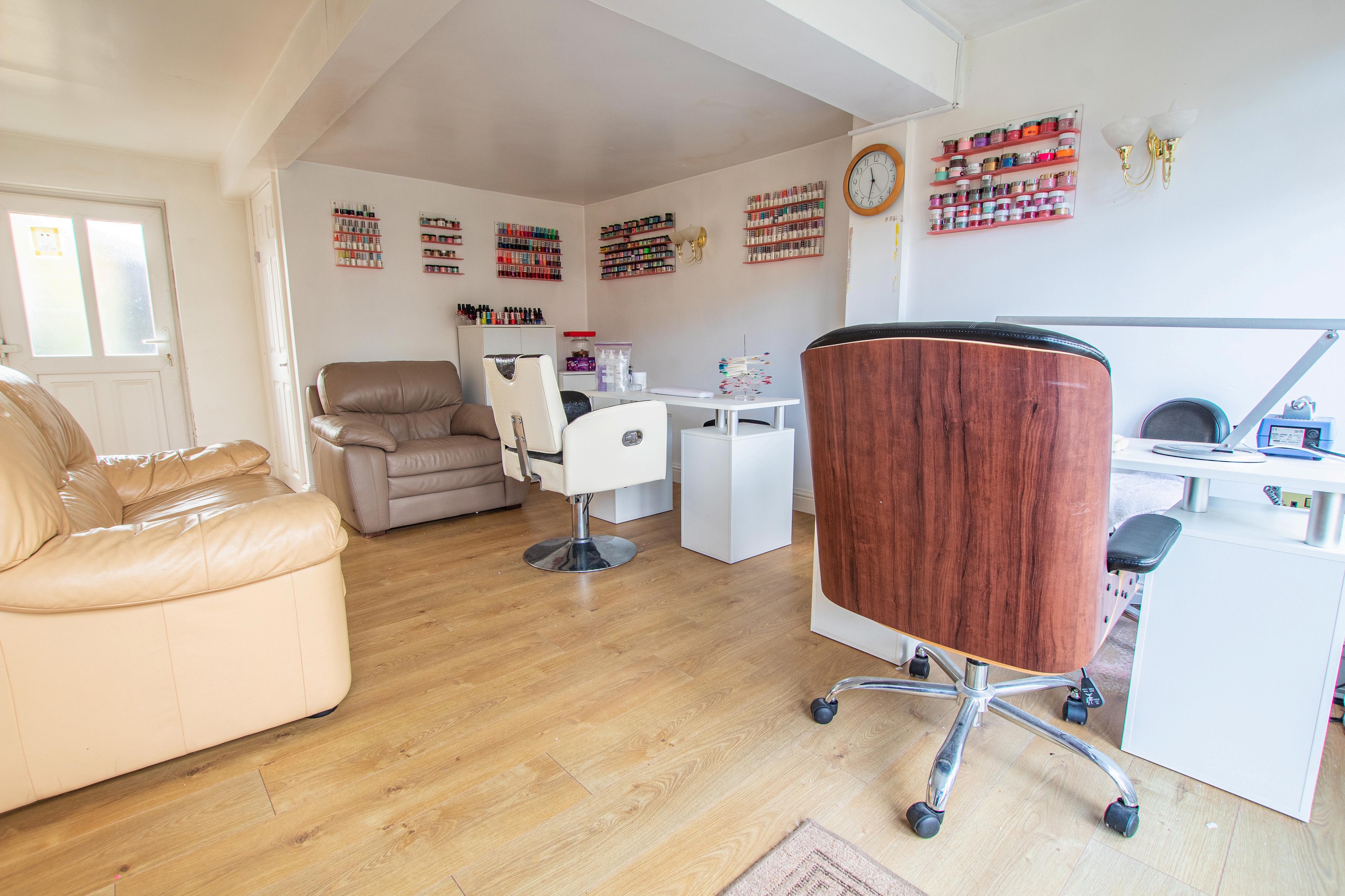 Attached to the house, discover a converted room currently used as a nail salon Benefit from a separate entry, allowing for potential use as a home office or business space.
