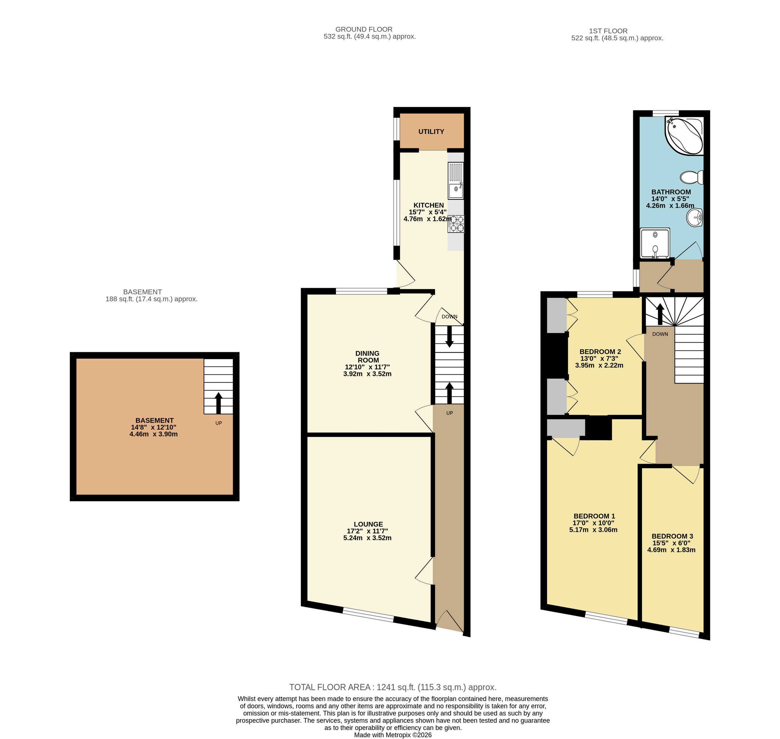 Upstairs, there are three bedrooms, offering flexible accommodation for families, guests or home working. The bathroom has been recently updated with new fittings and includes both a bath and separate shower.