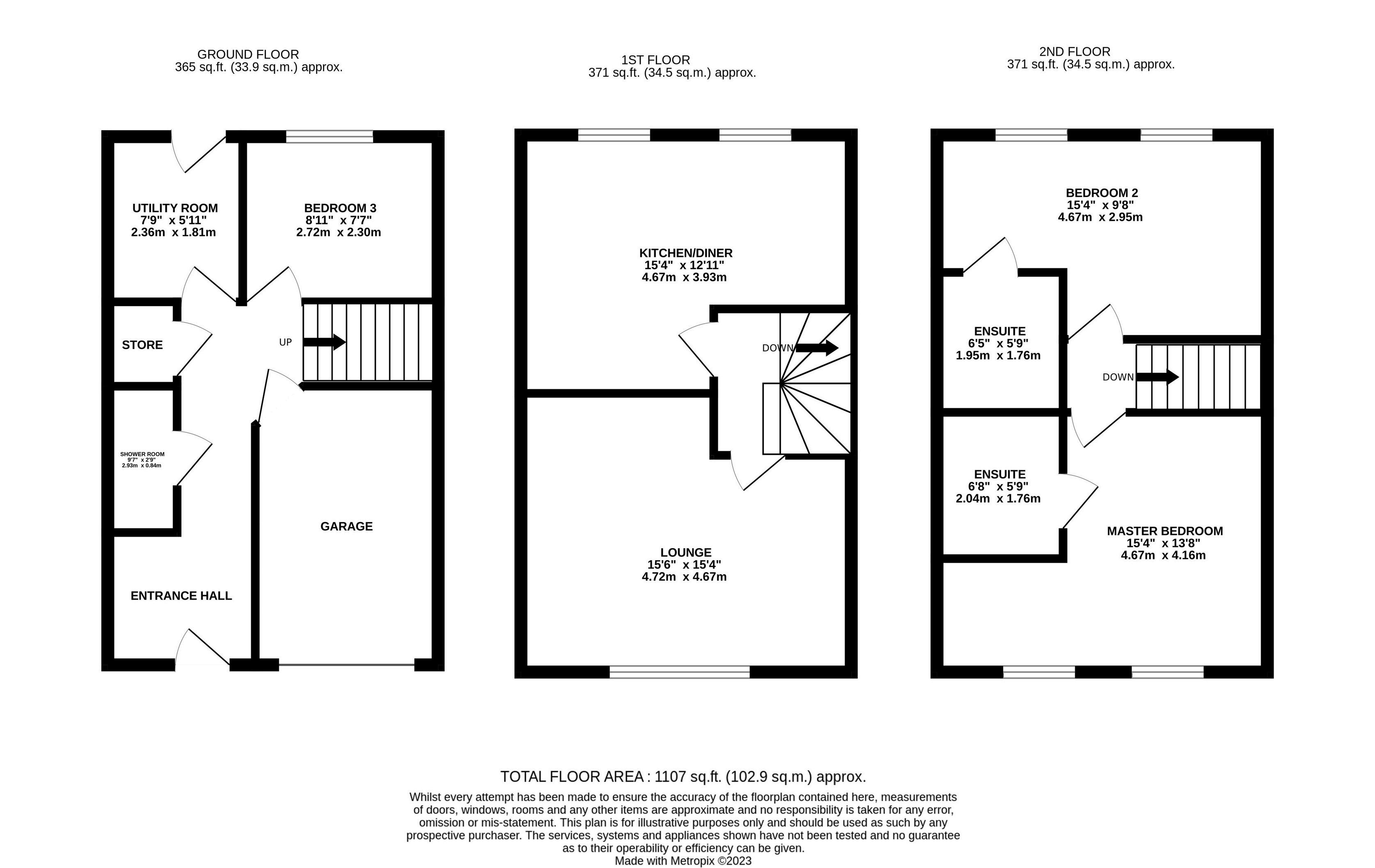 Step into this immaculate property via a stylish composite door and be greeted by a stylish hallway accommodating a WC/Shower Room, a utility room with space for washing machine and tumble dryer providing seamless access to the fully enclosed low maintenance rear garden and the third bedroom which could also be utilised as a study, all perfect for use by a teen or family member that needs to be on the ground floor. As you ascend to the first floor, a spacious lounge invites you to unwind and entertain in comfort. Natural light fills the room, highlighting the elegant design and creating an inviting atmosphere. The modern fitted kitchen diner showcases functionality, ideal for culinary enthusiasts and family gatherings alike with a gas hob, extractor fan and built in oven and microwave. Journeying to the top floor, you'll discover two generously sized double bedrooms, both boasting their own en-suite bathrooms.