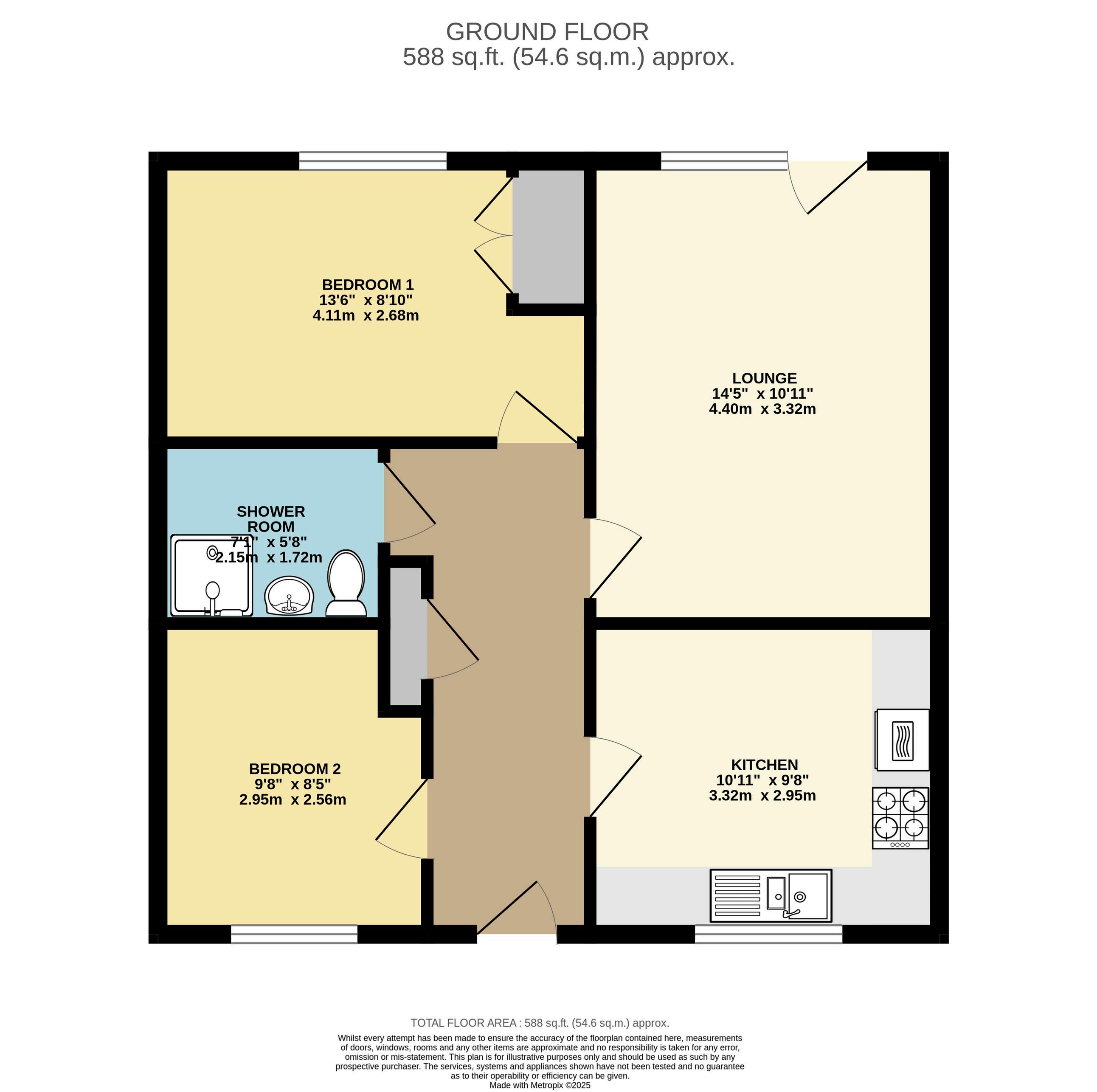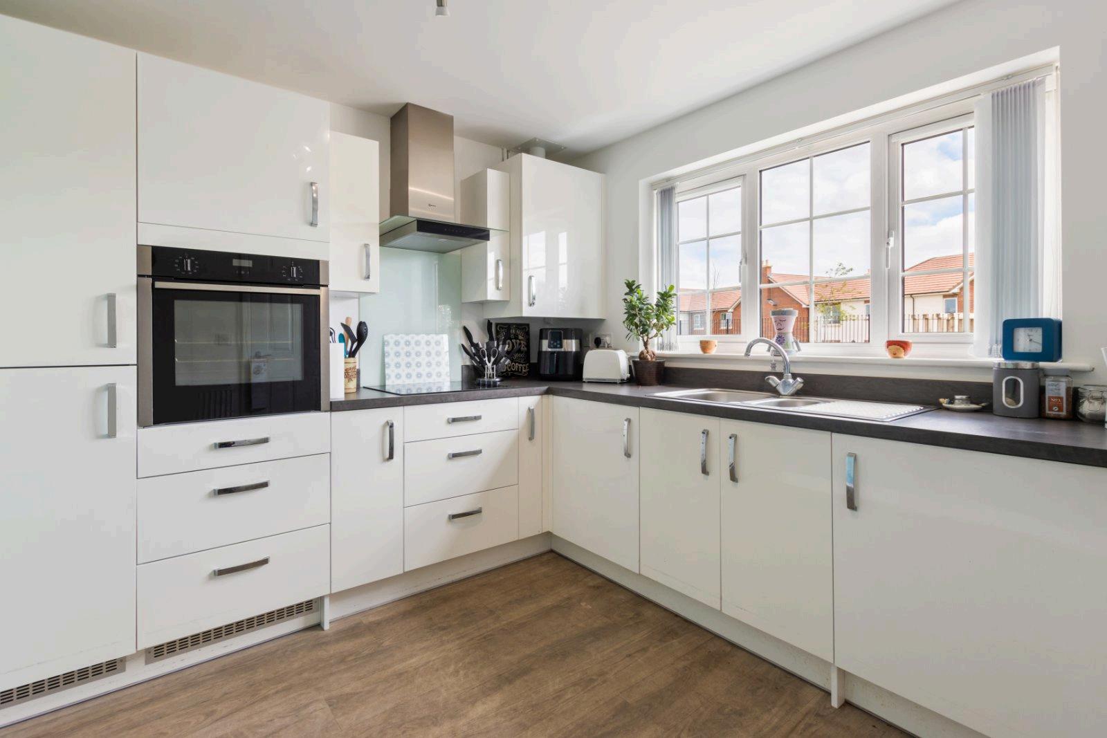 As you step through the stylish black front door, you're welcomed into a light and airy central hallway that leads through this thoughtfully laid-out home. Designed with comfort and ease of living in mind, every room offers a sense of calm and practicality. At the heart of the home is the modern kitchen/diner, finished with sleek white units, high-quality integrated appliances, and plenty of worktop space. A large window to the front floods the room with natural light and provides a pleasant outlook. The lounge is a relaxing space with a soft, neutral palette and patio doors that open onto the rear garden perfect for letting the outside in during warmer months. Whether you're entertaining guests or simply enjoying a quiet afternoon with a book, this is a room that invites you to unwind. There are two wellproportioned bedrooms, the main offering ample room for furniture and the second making an ideal guest room or hobby space. The shower room is finished to a high standard, featuring a walk-in enclosure with glass screen, modern tiling, and easy-access fittings for added peace of mind. Every part of this home is designed with low-maintenance living in mind ideal for those looking to downsize without compromise.