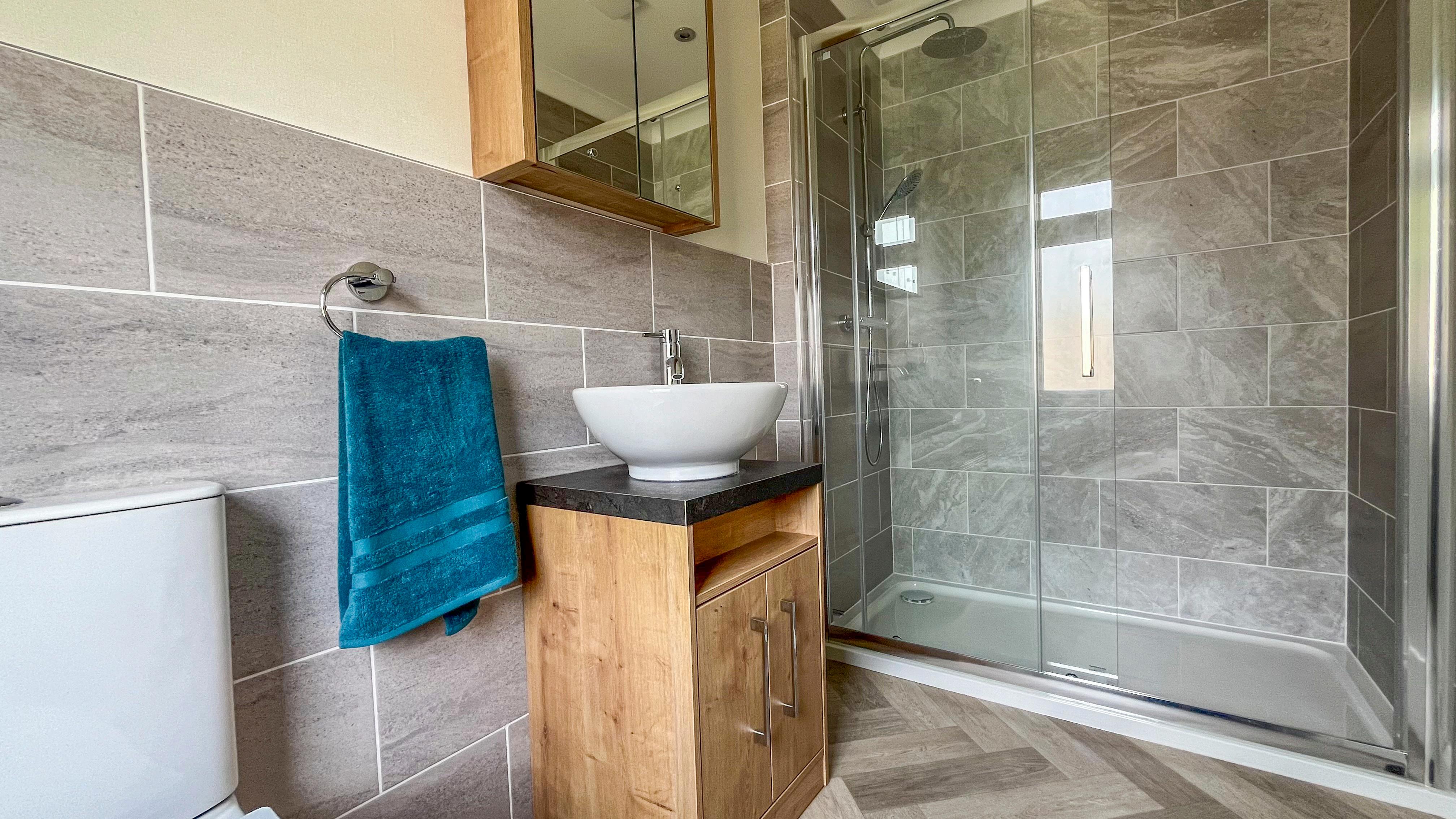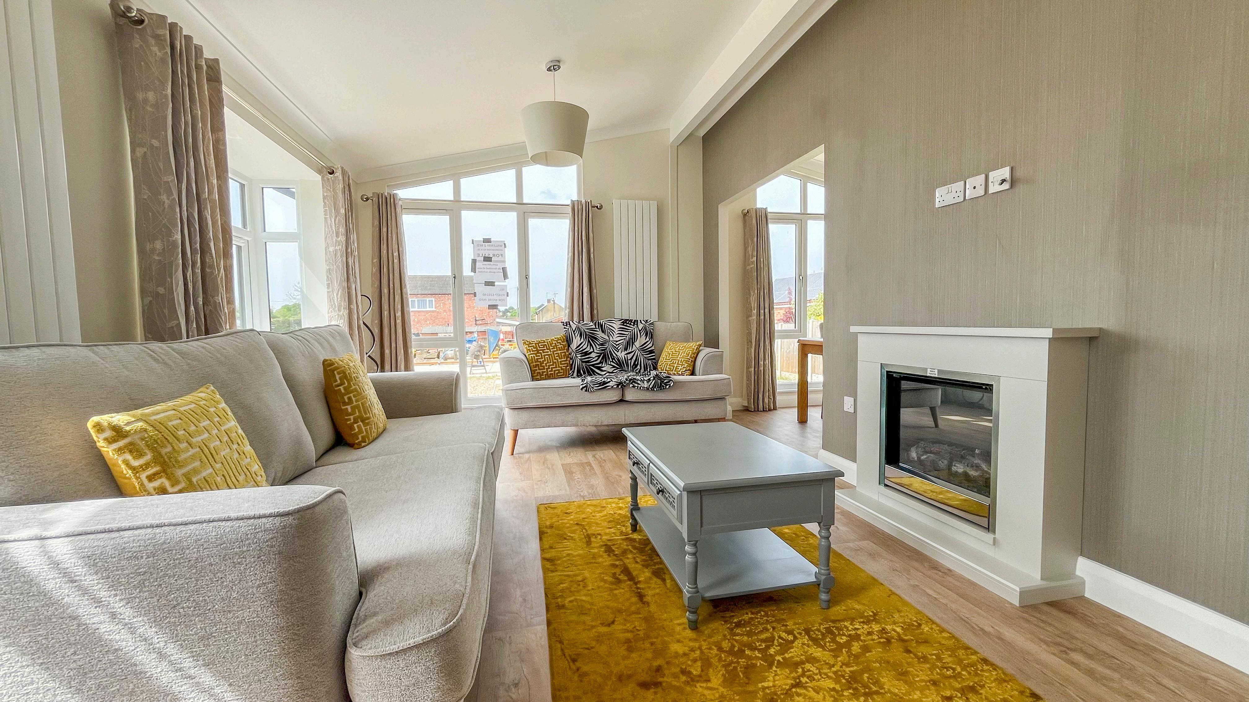 Step into the light-filled sanctuary of your park home and be captivated by the seamless fusion of style and functionality. From the open plan lounge, diner, and kitchen area adorned with full-height picture windows to the chic furnishings and cosy feature fireplace, every detail has been carefully curated to create the perfect space for relaxation and entertainment. The stylish fitted kitchen boasts integrated appliances and ample storage, making cooking a breeze.
