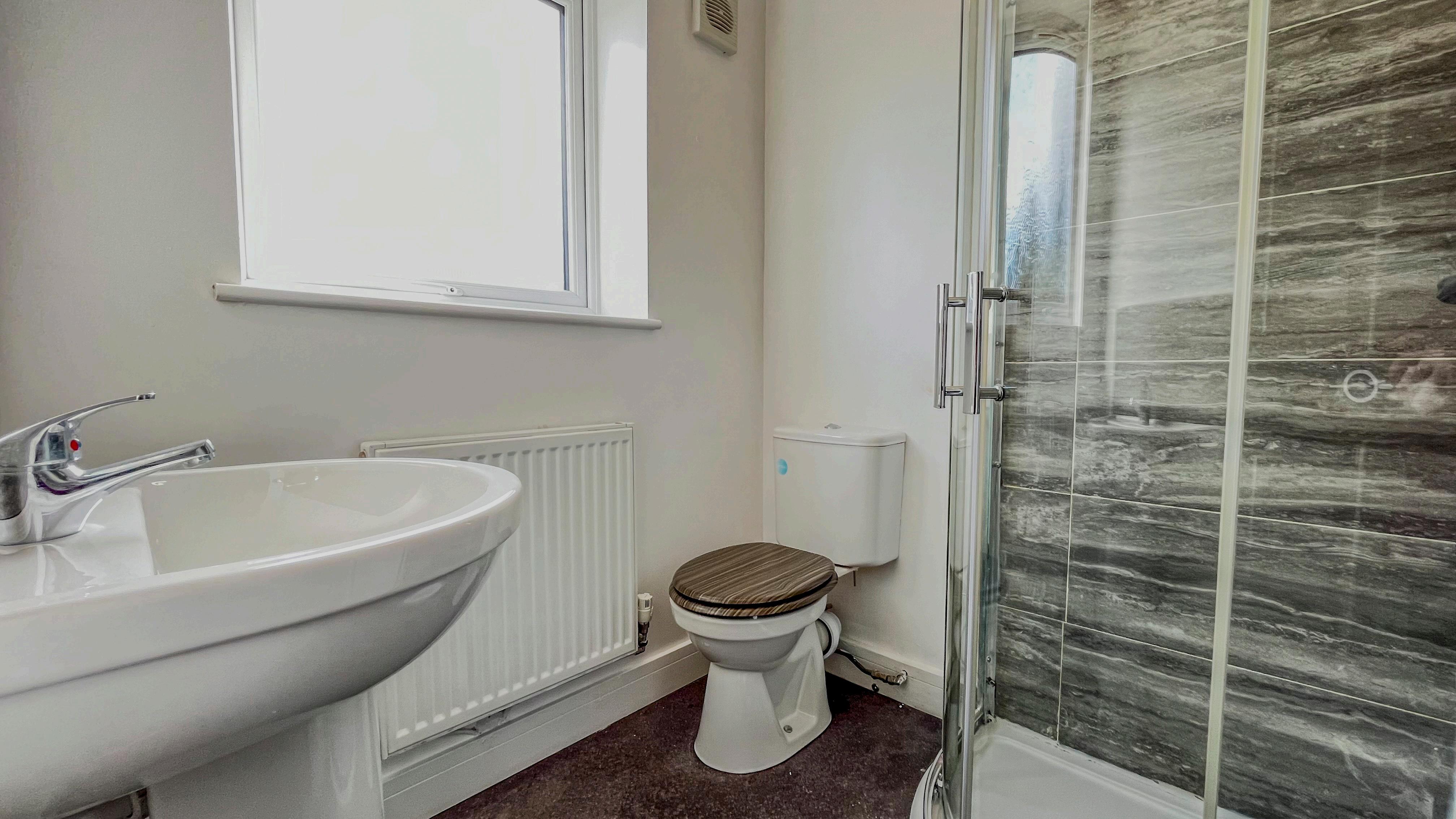 Upstairs, the first floor boasts three well-proportioned bedrooms. The master bedroom benefits from its own ensuite shower facilities, offering a touch of luxury, while the remaining bedrooms are served by a sleek family bathroom featuring a threepiece suite, including a panelled bath.