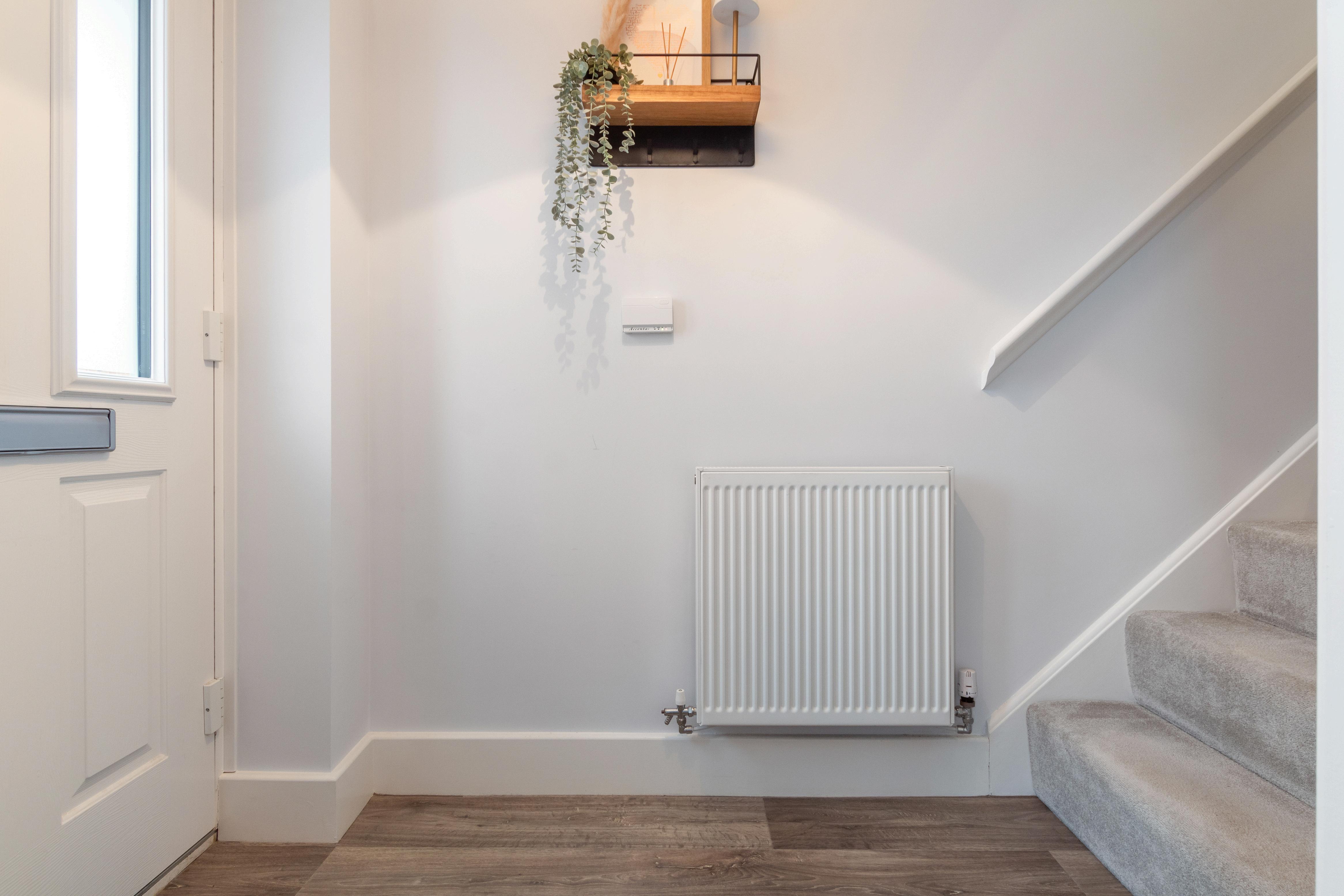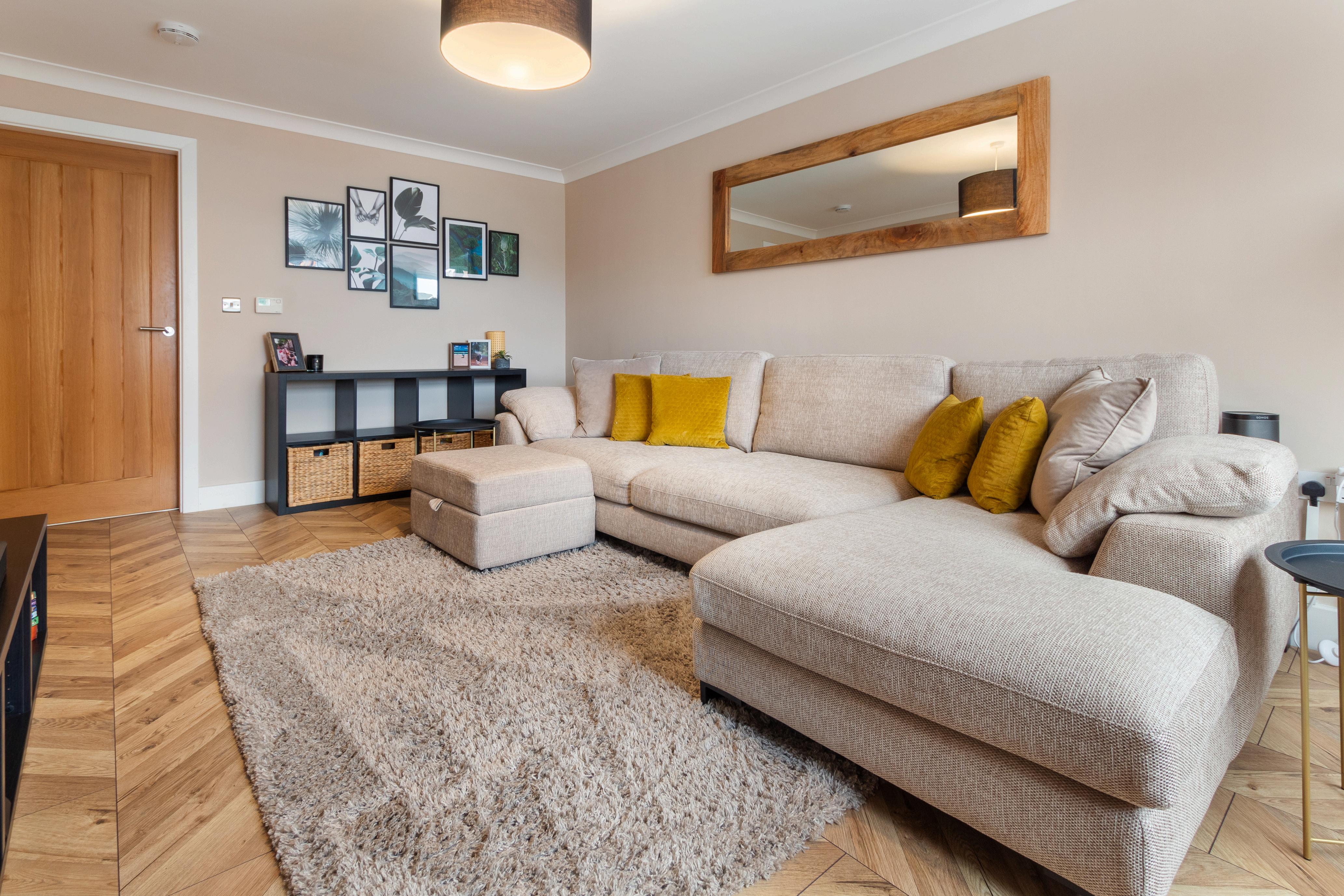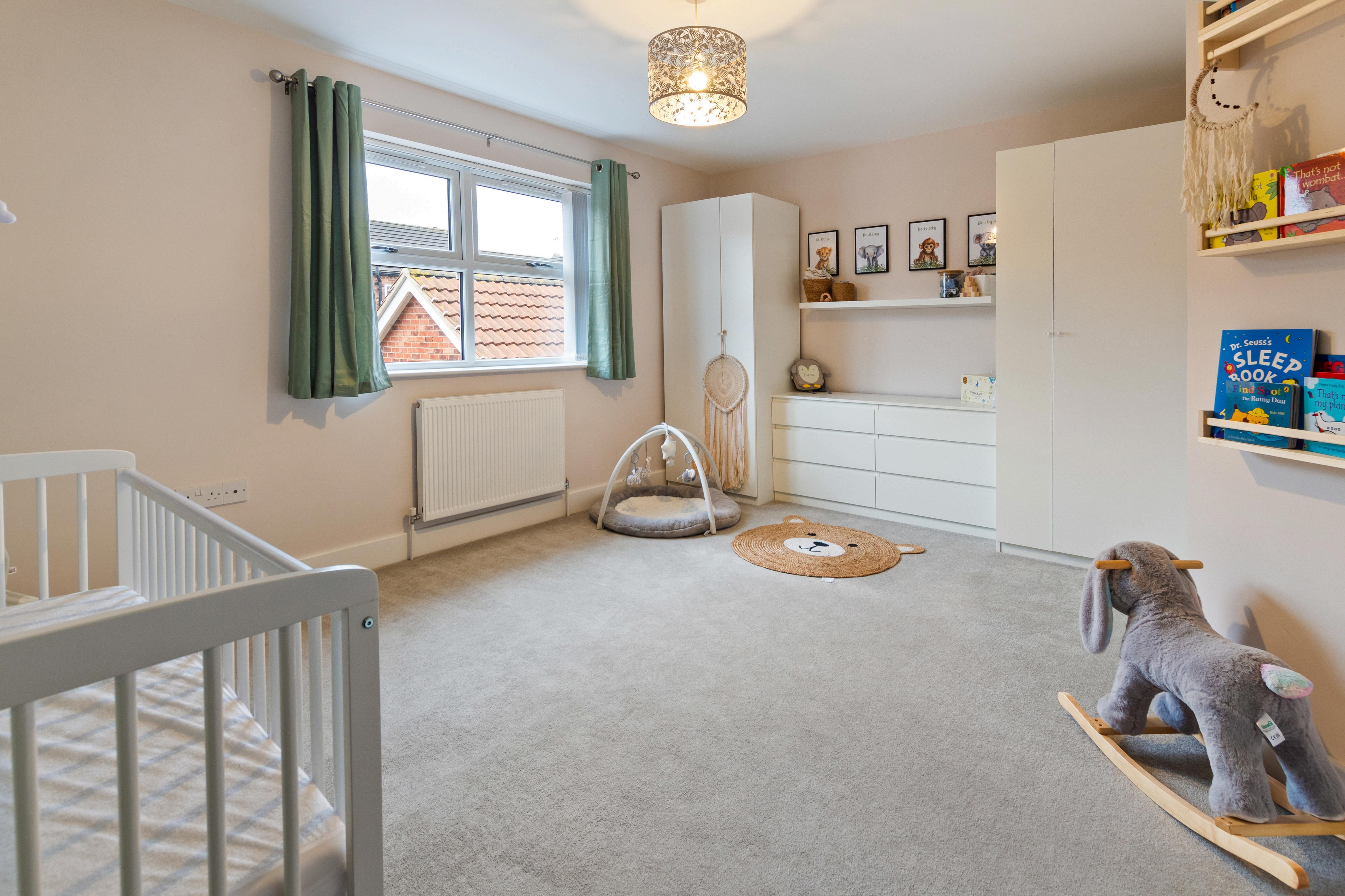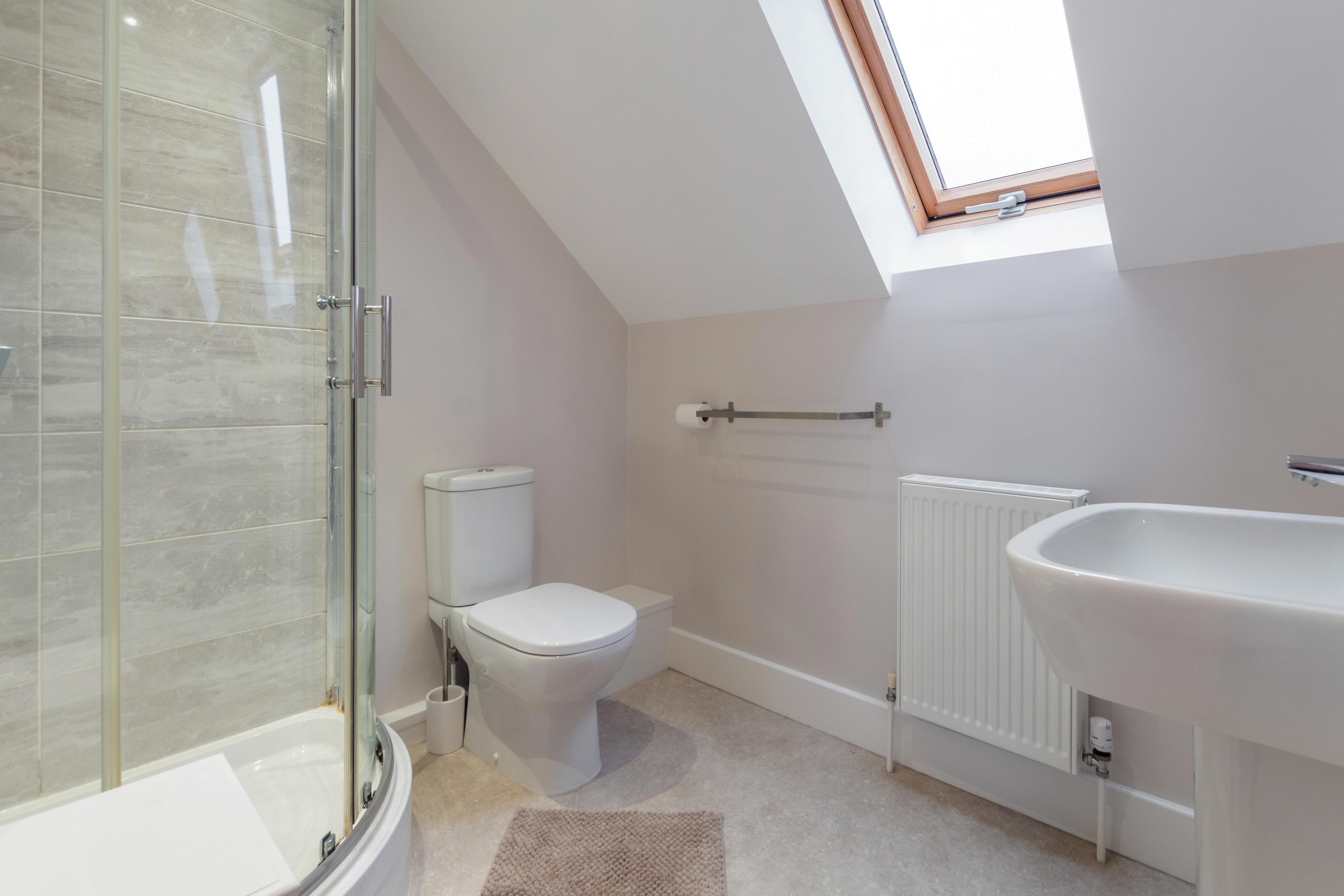 Ascending to the first floor, the landing leads to two well-proportioned bedrooms. Bedroom two is a spacious retreat, and bedroom three is ideal for children, guests, or a home office to suit modern living needs. Serving these rooms is a stylish family bathroom, featuring a bath with an overhead shower, a sleek hand wash basin, and a low-level flush WC, all designed to complement the home's contemporary feel.
