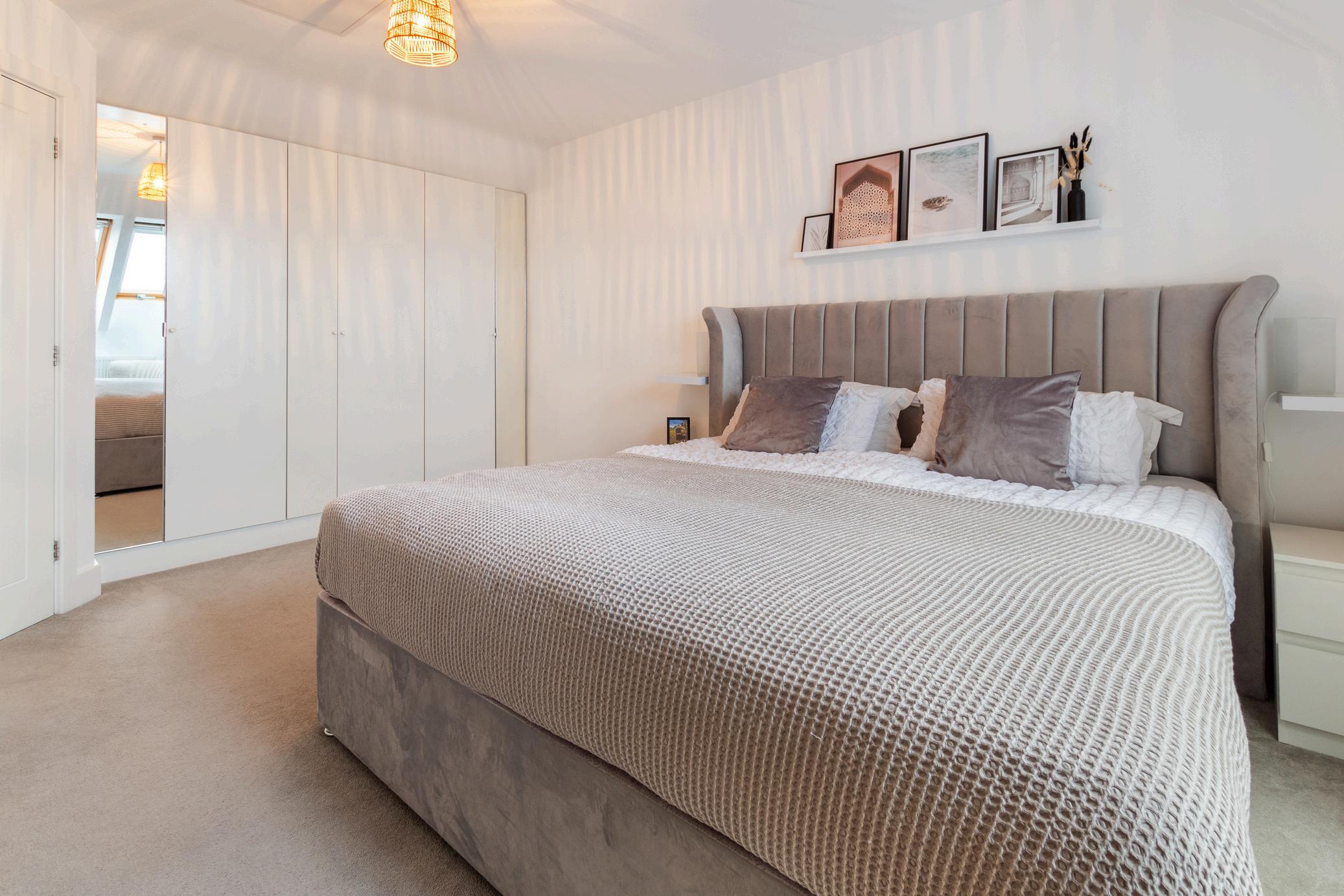 On the top floor, the master bedroom with en-suite, fitted wardrobes and sky lights which deliver a view over the Humber.