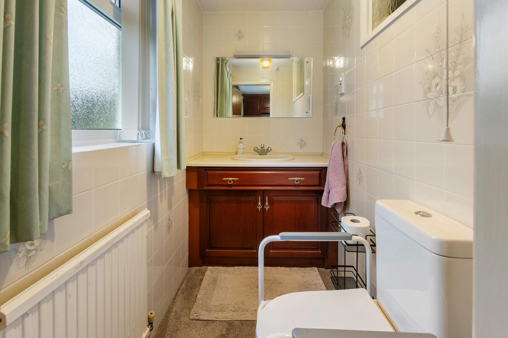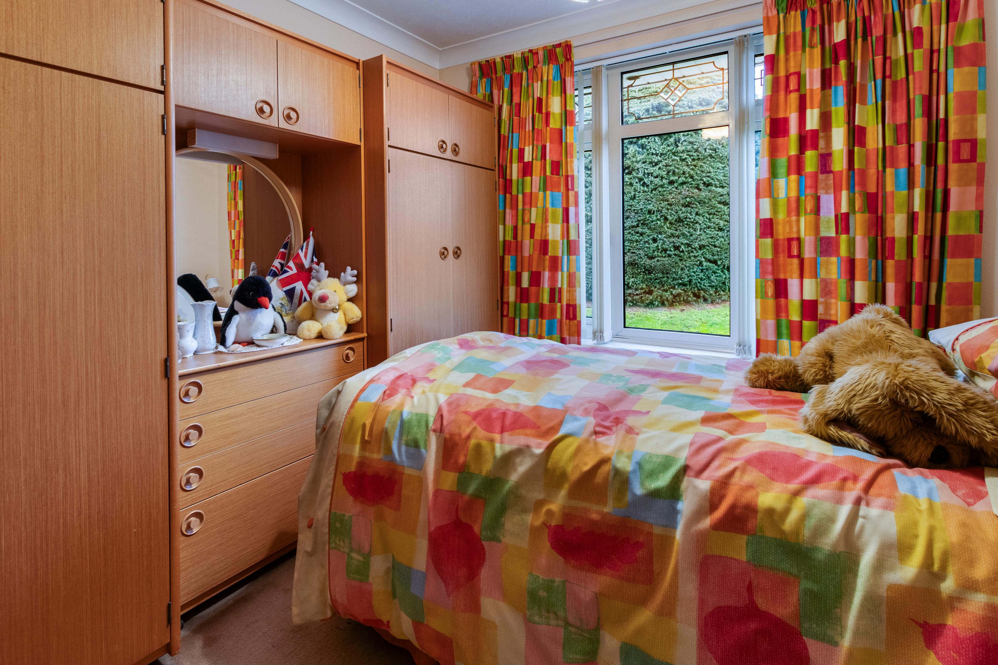 The bungalow offers three bedrooms, each a comfortable size, and notably featuring excellent fitted storage. The principal bedroom includes a full run of fitted wardrobes, complemented by a separate WC with vanity storage. While the second bedroom also benefits from built-in furniture that keeps floor space free and tidy.