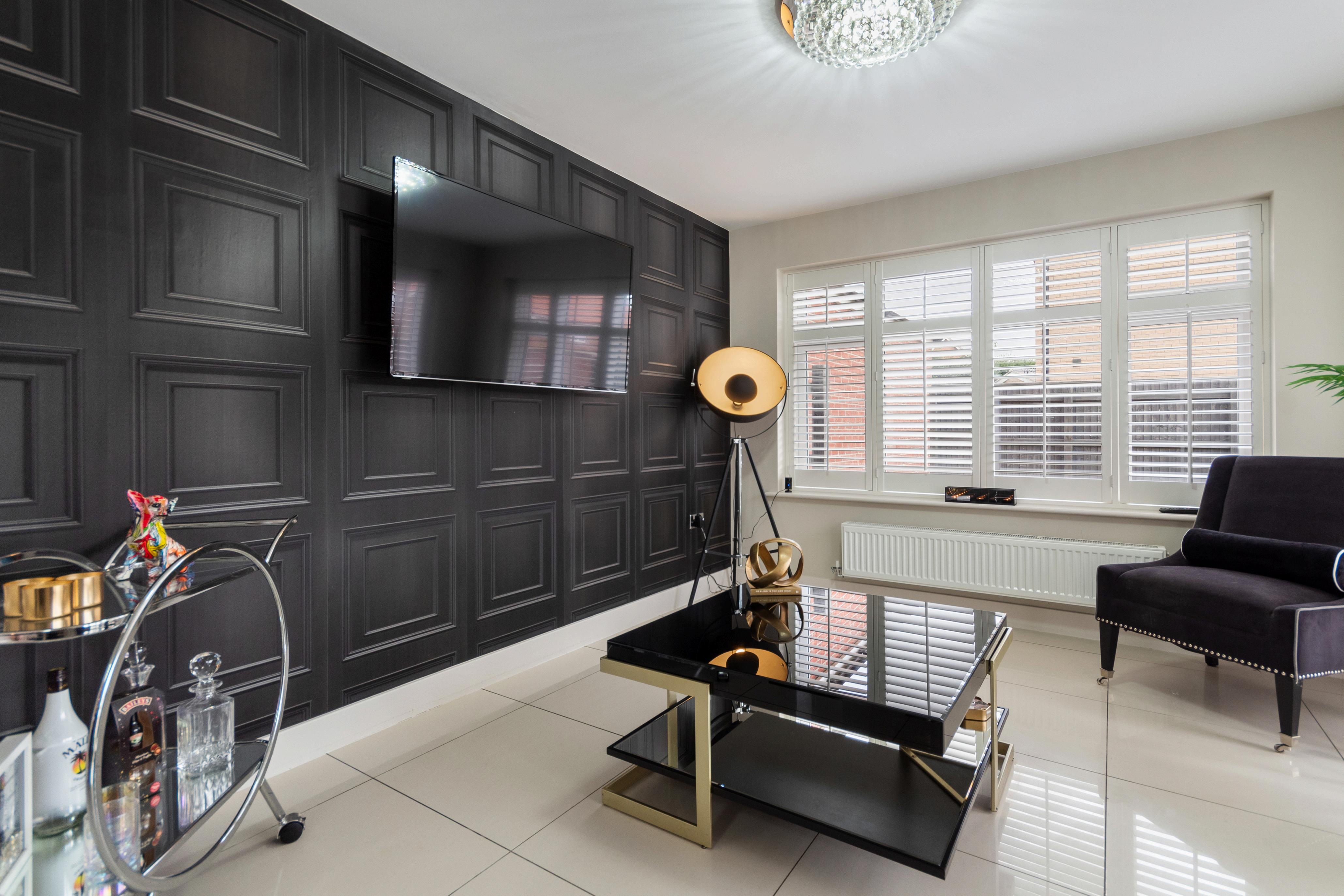 Upon entering, you're welcomed by a bright and inviting hallway, with oak and glazed doors leading into the elegant formal lounge. This beautifully appointed space enjoys triple-aspect natural light, including a side bay window and double doors opening directly onto the rear garden creating a perfect setting for entertaining or relaxing in comfort.