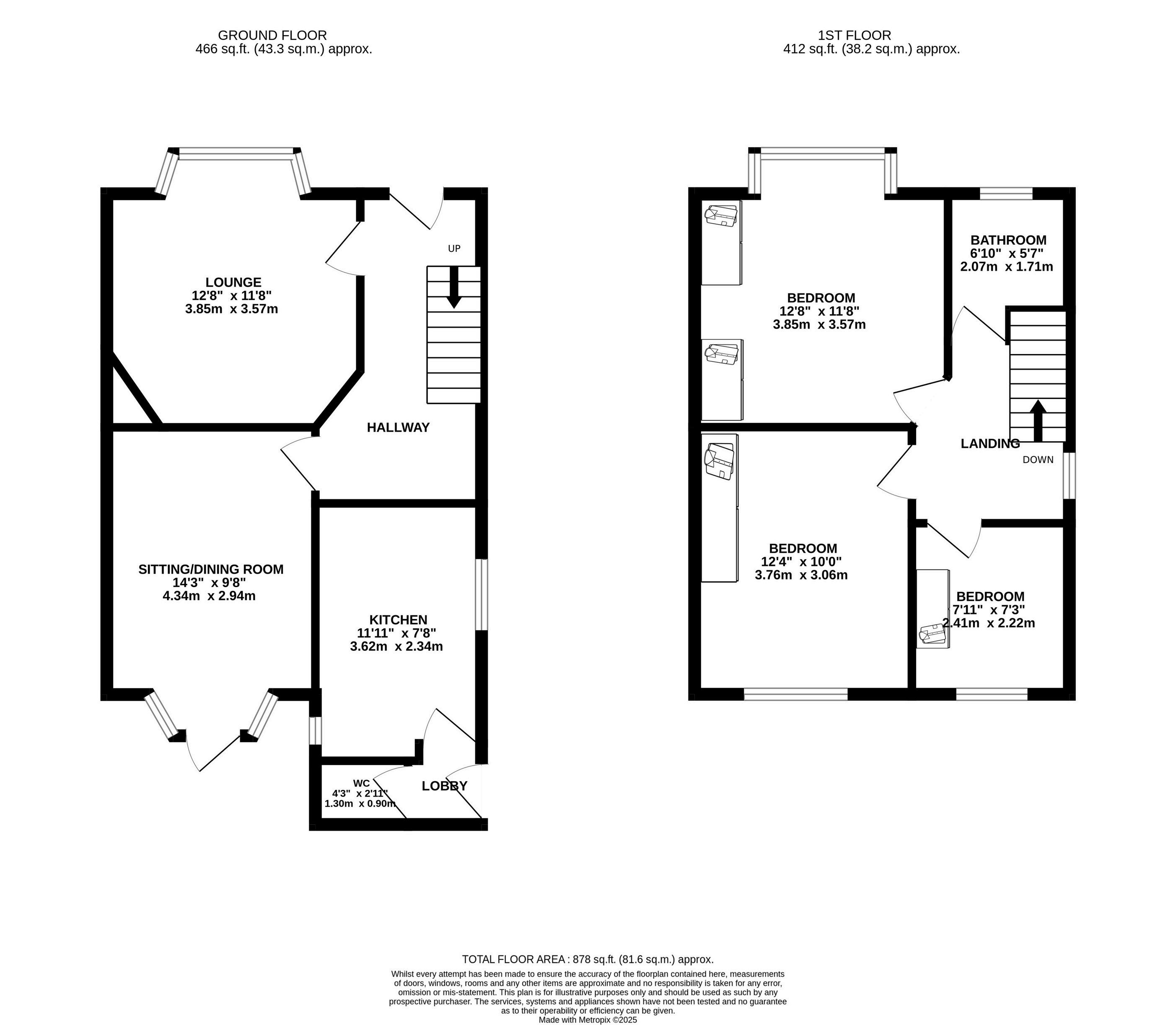 Upstairs, the property boasts two generous double bedrooms, both with built-in storage, plus a wellproportioned single bedroom. The front double bedroom enjoys the added feature of a bay window, filling the space with natural light. Completing the first floor is the family bathroom, fitted with a bath, basin, and W/C.
