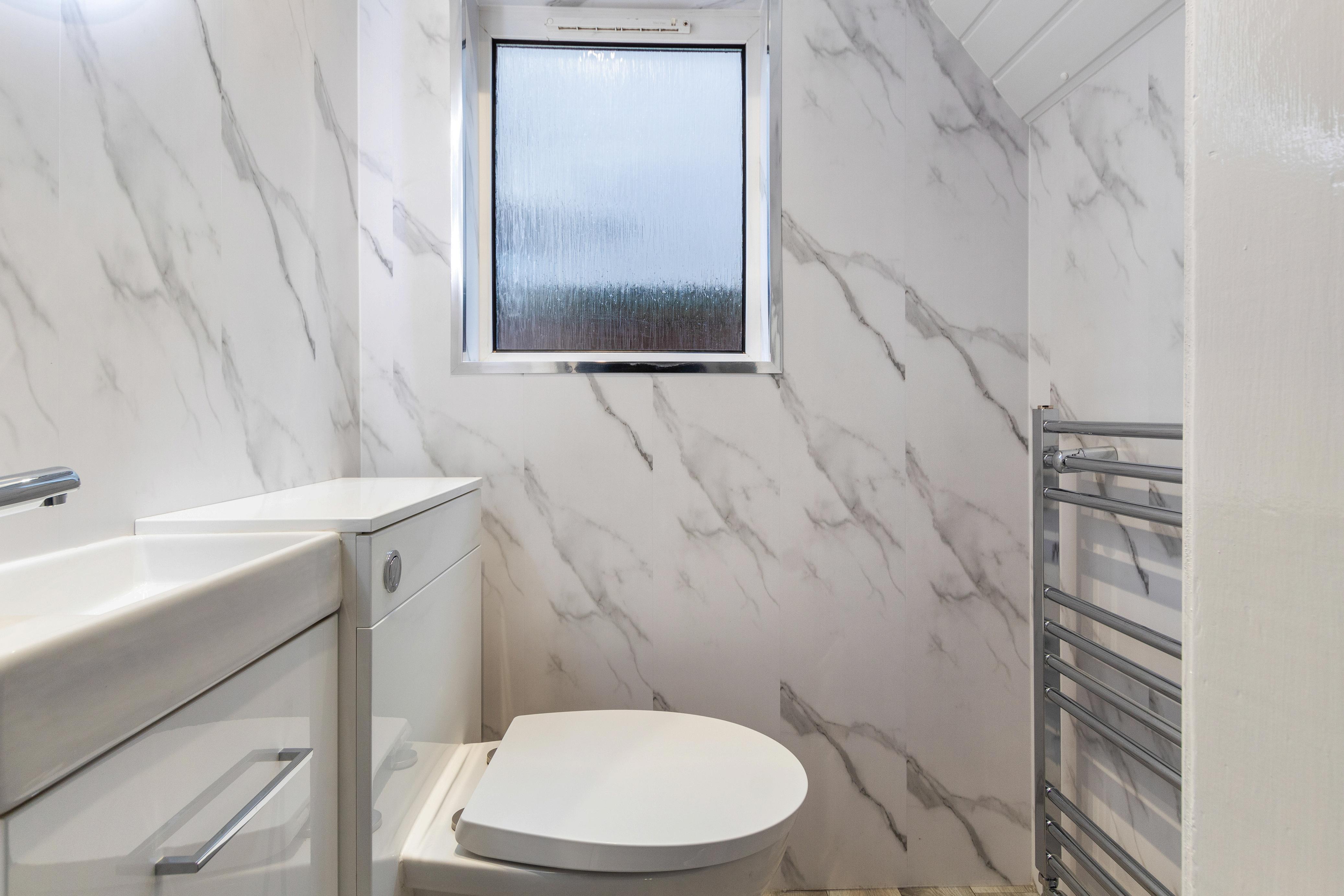 Upstairs, there are two generously sized double bedrooms and a comfortable single bedroom, ideal for a child’s room or a home office. The modern family bathroom is fitted with high-quality fixtures, including a towel-rail radiator and a light-up mirror, adding a touch of luxury.