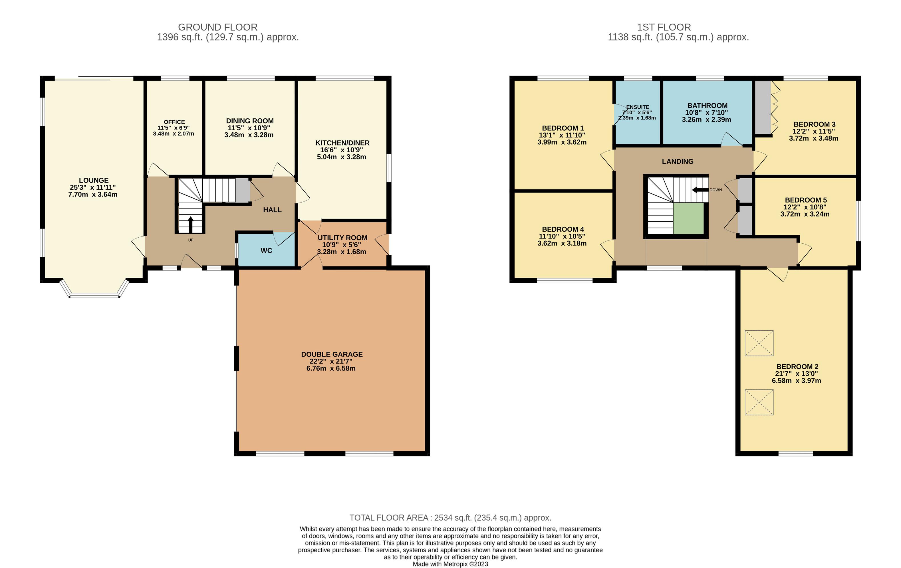 To the First floor is the gallery landing allowing access to the five double bedrooms, the master of which benefits from ensuite shower room along with the four piece family bathroom comprising of shower cubicle, bathtub, hand basin and low level flush w.c.