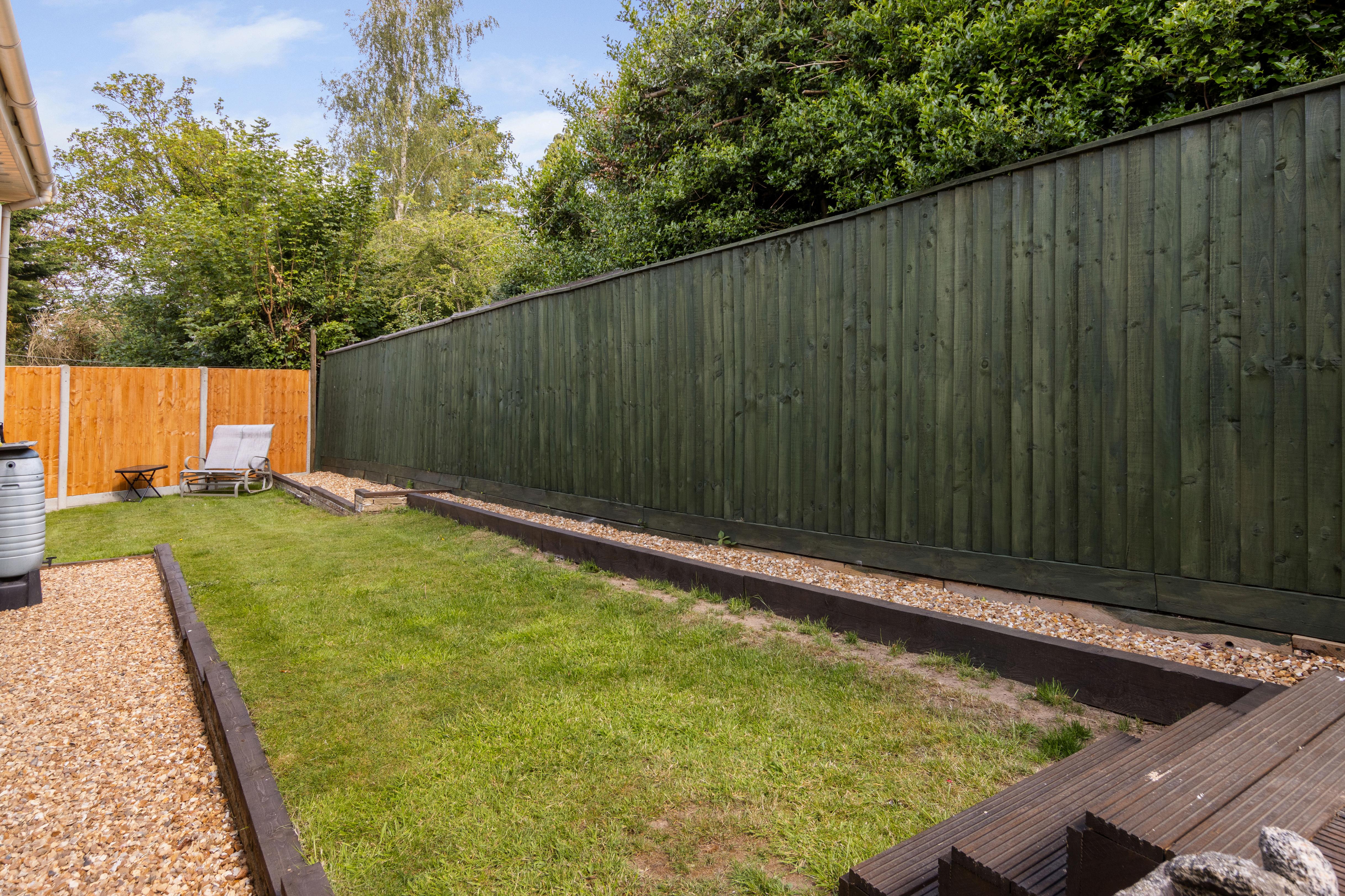 Externally, the property boasts a wraparound garden offering a mix of lawn, raised sleeper borders, and gravel areas designed for low maintenance. A driveway provides ample off-road parking and leads to a generous double garage, offering superb additional storage or workshop space.