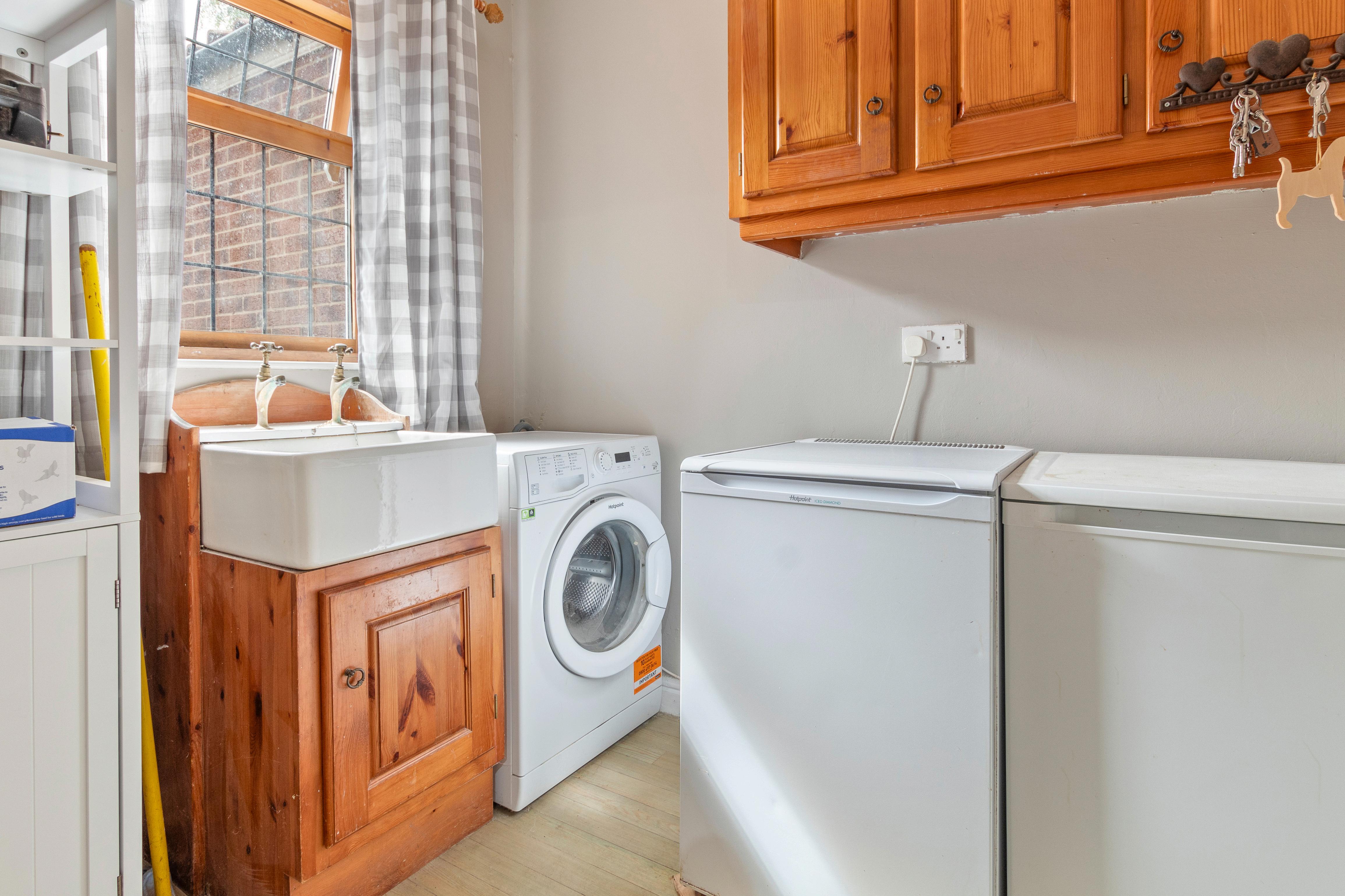 Step inside the welcoming front entrance hallway and be greeted by a cosy lounge, where a multi-fuel stove fire creates a warm and inviting atmosphere. Wooden French doors open onto the rear patio, seamlessly blending indoor and outdoor living. The country-style kitchen is a true highlight, featuring shaker-style units, wood-effect worktops, an integrated double oven, and an induction hob. There’s ample space for a dining table, perfect for family meals or entertaining guests. A separate utility room and a rear exit door leads to a conservatory, offering a tiled floor and stunning views of the garden. The ground floor is completed by a convenient W.C. and a separate office/study, ideal for working from home.