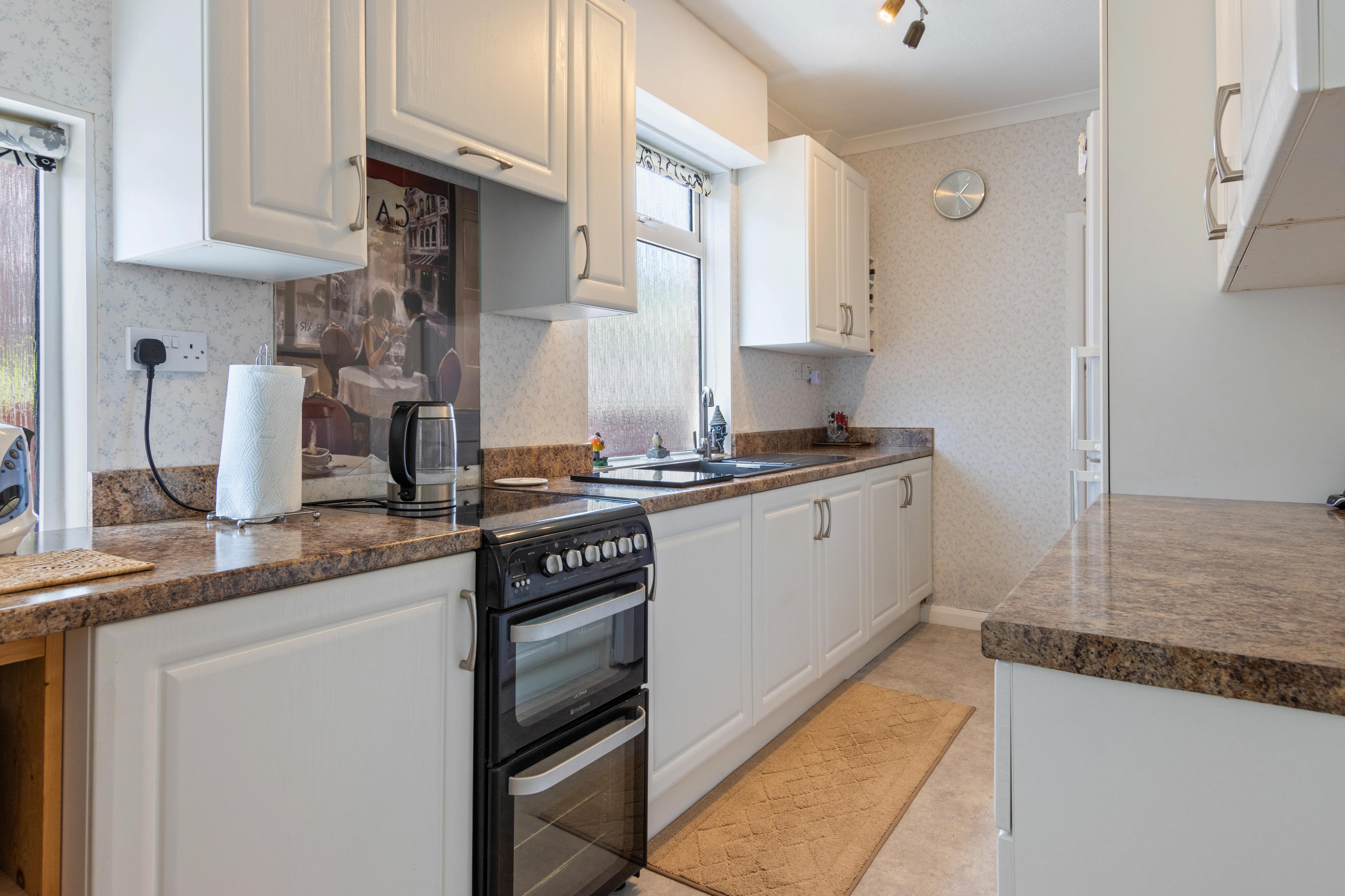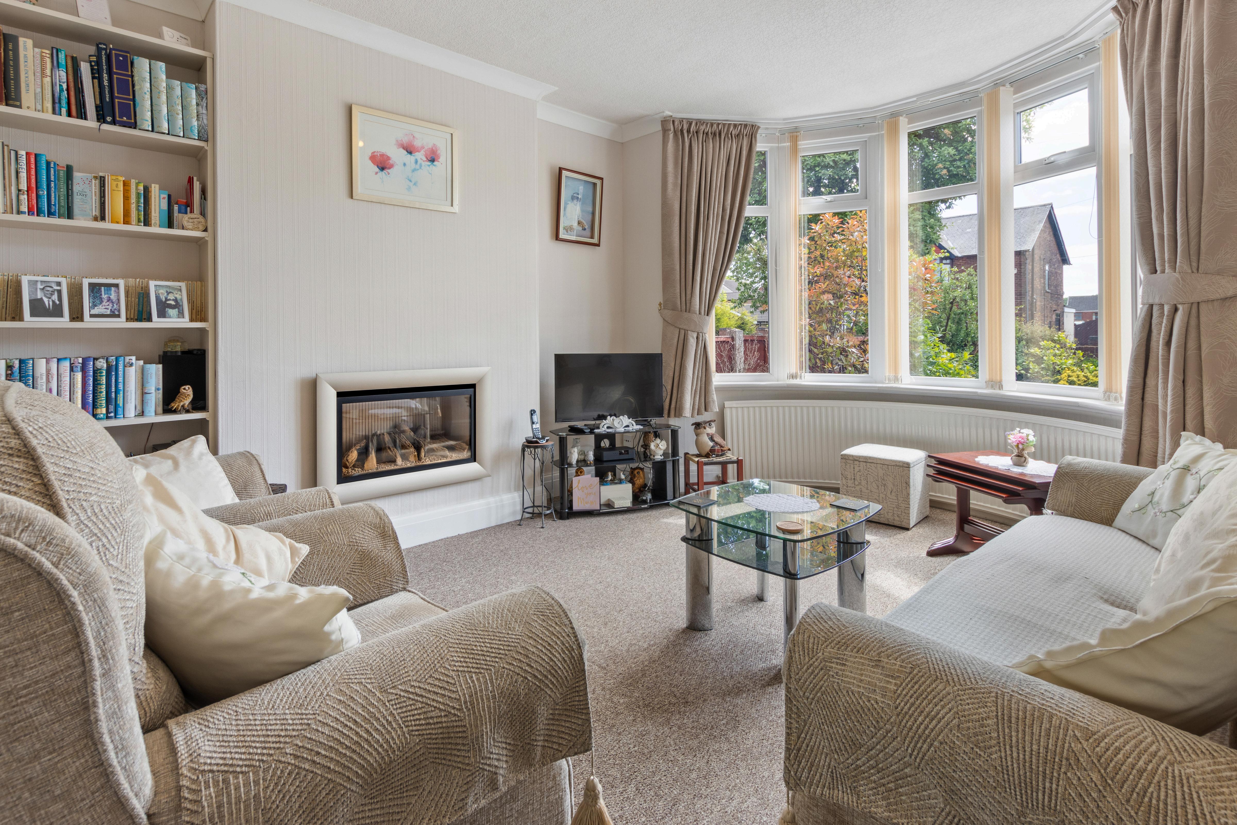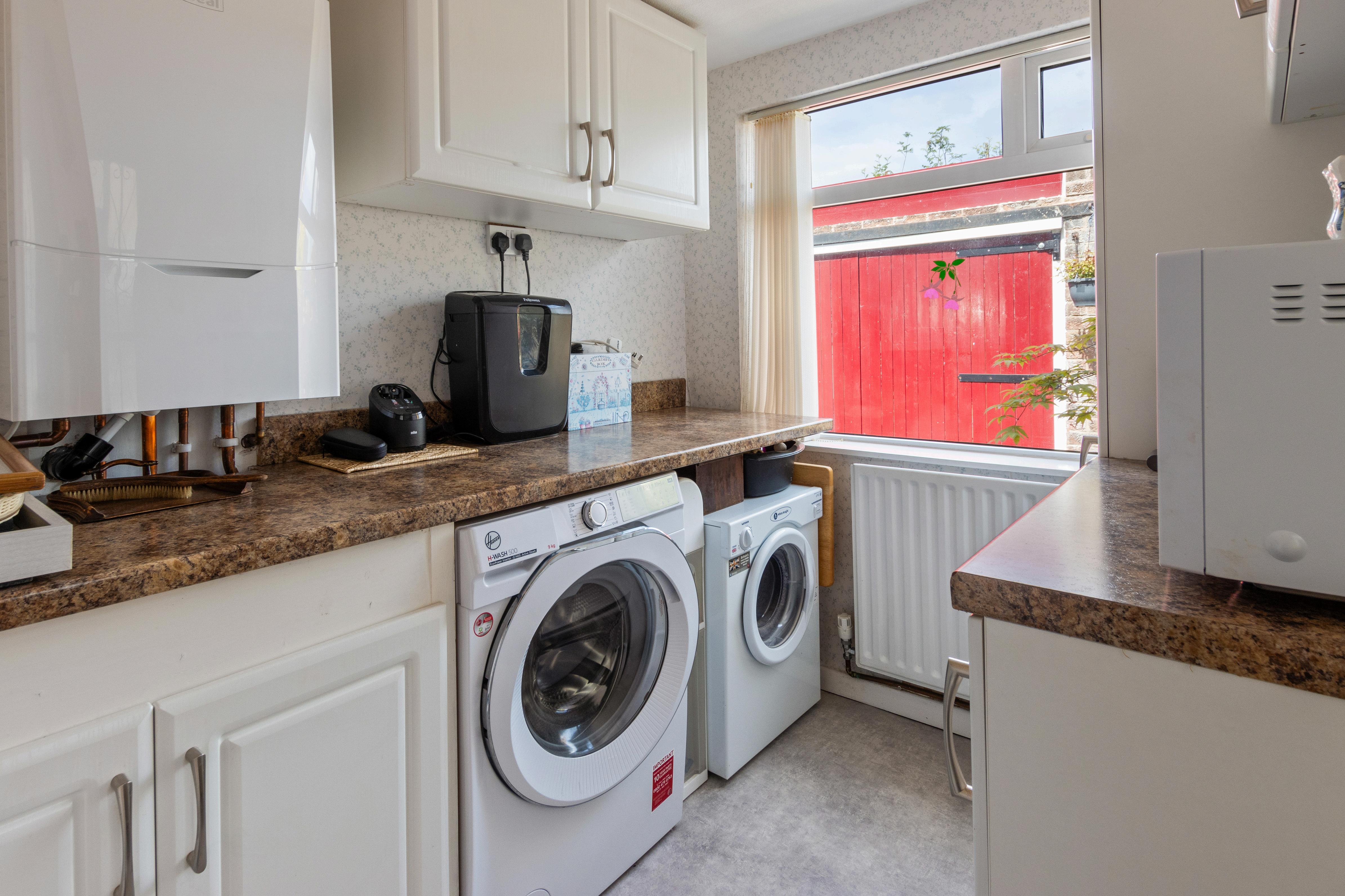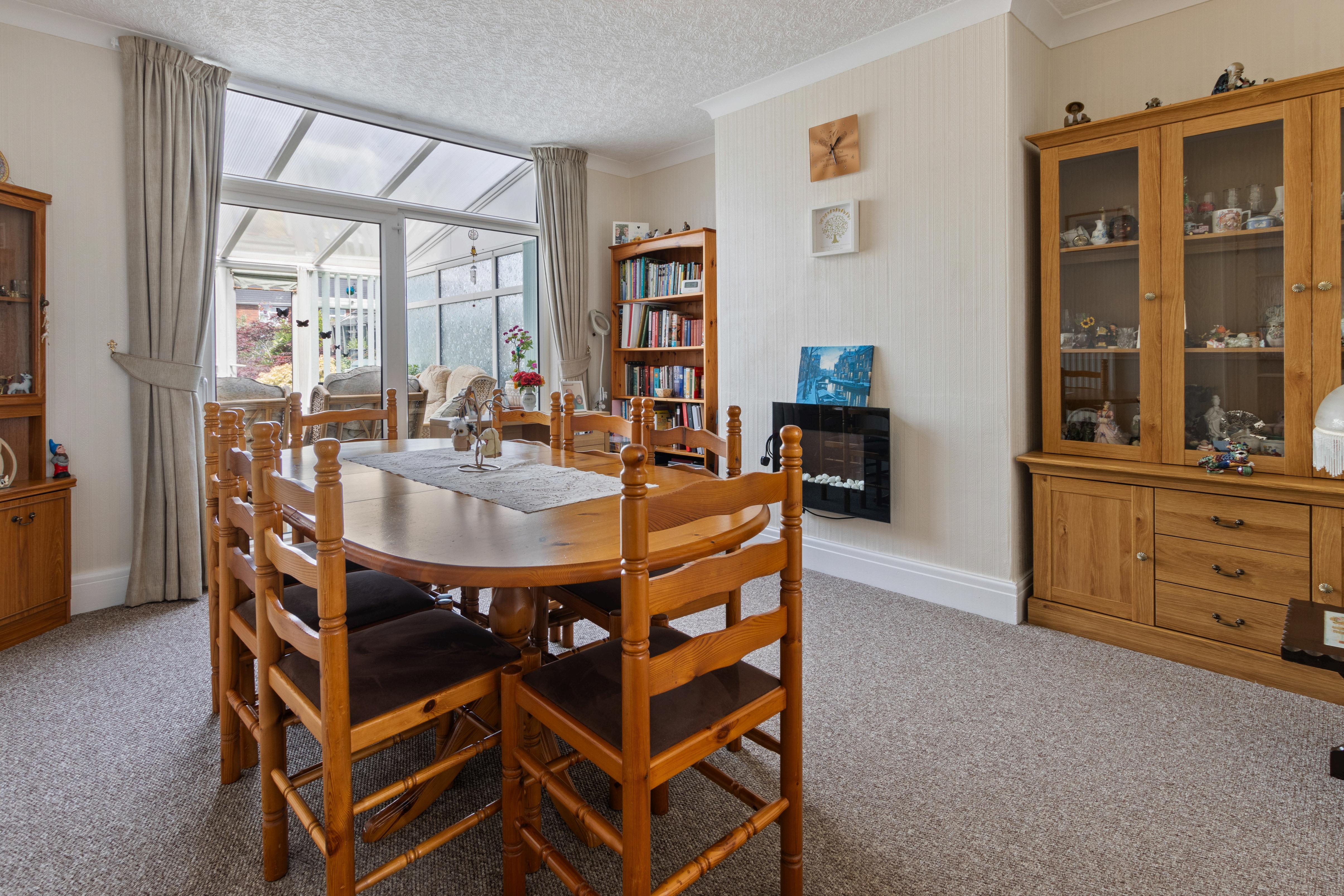 On entering the property, you're greeted by a porch that allows access into the welcoming hallway with stairs leading to the first floor. To the front of the property sits a bright and generously sized lounge, featuring a wall-mounted fire and a large bay-style window that fills the space with natural light. Glazed doors allow access into a separate dining room, perfect for formal meals or family gatherings. The kitchen is well laid out and benefits from a range of base and wall-mounted cabinets and has ample space for white goods and leads to two additional practical spaces – a separate utility room for laundry and storage needs, and a conservatory at the rear, offering a lovely spot to relax with views over the garden.