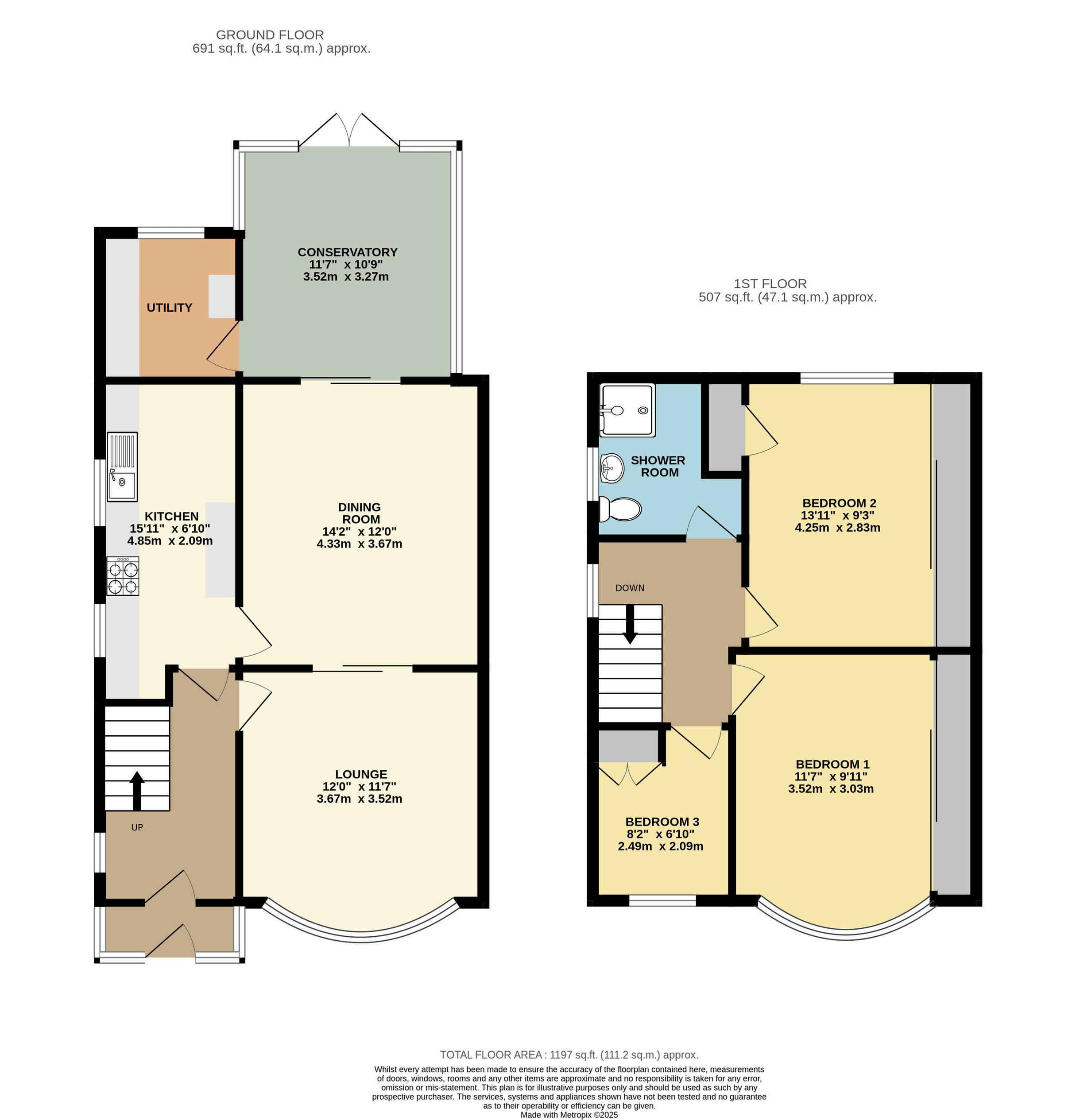 Upstairs, the landing connects three well-proportioned bedrooms. The main bedroom and second bedroom are both spacious doubles with fitted wardrobes, while the third bedroom is a comfortable single or ideal home office. A modern shower room fitted with a three-piece suite to include a walk-in shower cubicle, hand wash basin and a W.C. completes the first floor.
