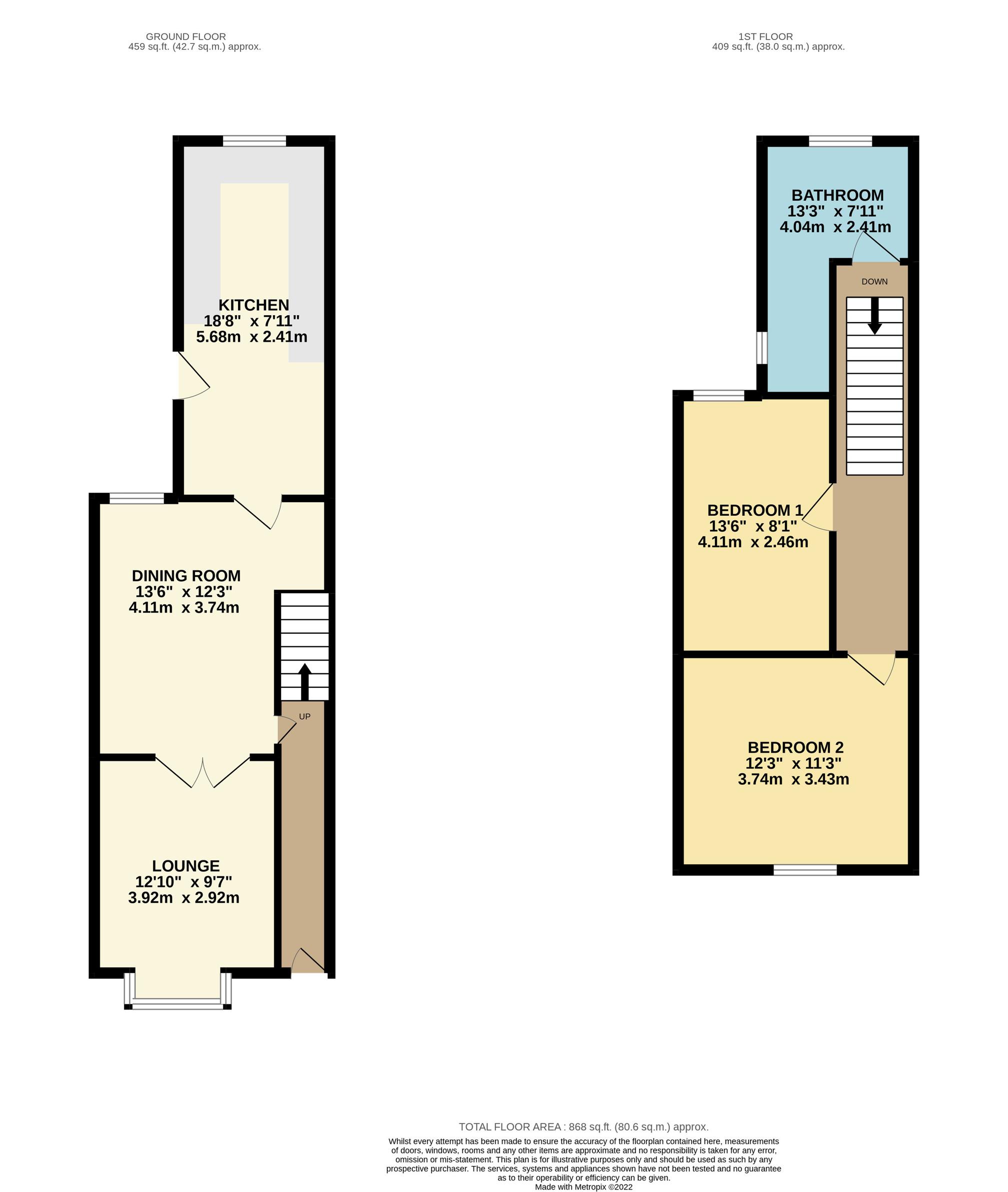 The property briefly comprises; entran with staircase to the first floor, loung traditional bay fronted window and opening doors to, dining room, kitche external door to the rear garden. To t floor are two good sized bedrooms served by a family bathroom.