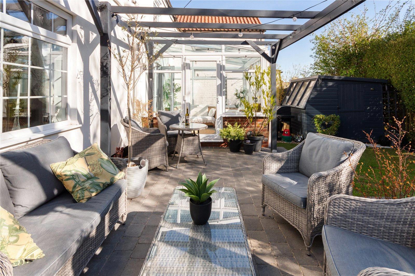 A charming pergola stands as a focal point within the garden, offering a shaded retreat that makes this space equally enjoyable during warmer days. Whether hosting friends for a summer barbecue or enjoying a quiet moment with a cup of tea, the garden’s south-facing aspect ensures an abundance of natural light and warmth. The careful attention to detail and impeccable presentation of the space reinforces the overall appeal of Courtyard Cottage, making it an inviting haven both inside and out.