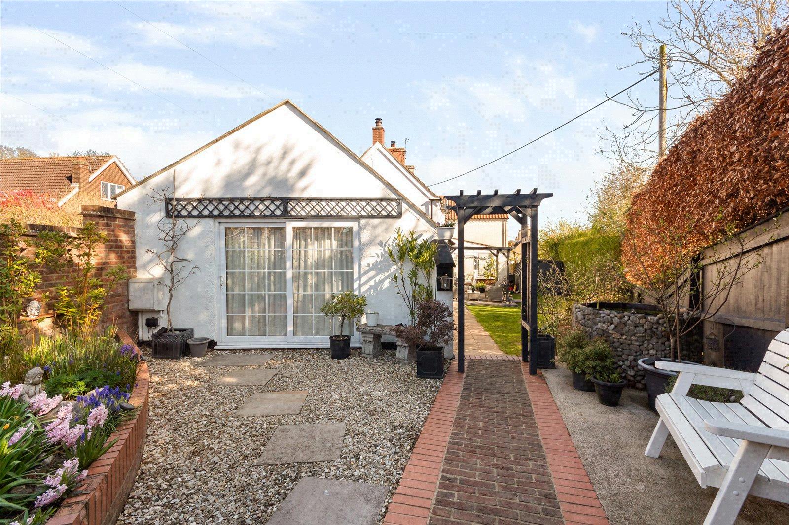 Outside, the property continues to impress with secure off-road parking and a side gate that opens onto a delightful side patio and garden path leading to the rear entrance.