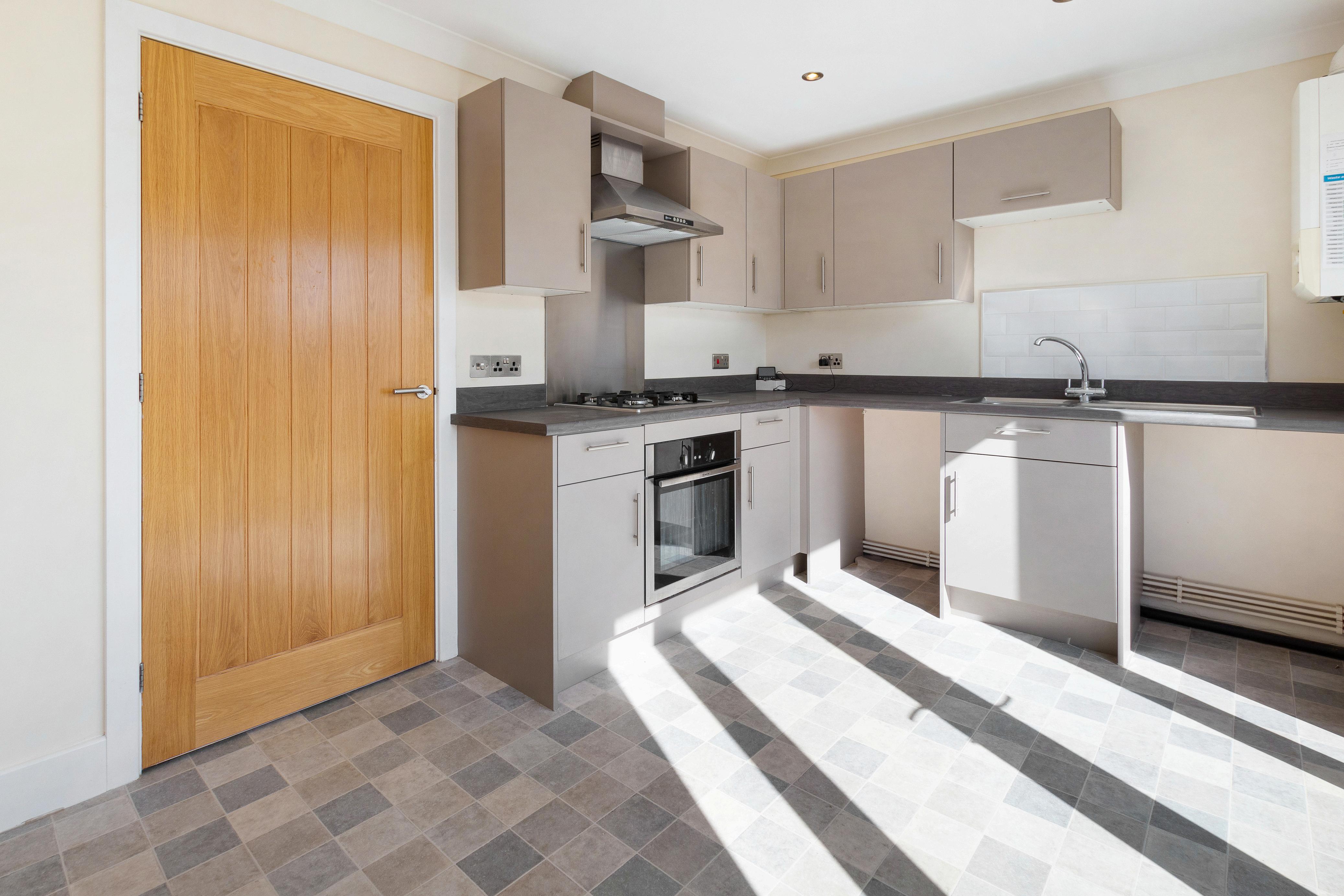 This charming two-bedroom home offers a well-designed layout perfect for modern living. Upon entering, you are welcomed into a central hallway that provides access to the main living areas. The spacious lounge, located at the front of the property, is bright and inviting and features stairs leading to the first floor, making it an ideal space for relaxation and entertaining. Moving through the hallway, you will find a convenient downstairs W.C. that benefits from a hand wash basin and a low-level flush toilet and leads into the adjoining kitchen/diner at the rear. This well-appointed space features modern fittings to include a built-in oven and hob that is complimented with an extractor fan above, and ample room for dining, with double doors opening onto the garden, creating a seamless indoor-outdoor flow.