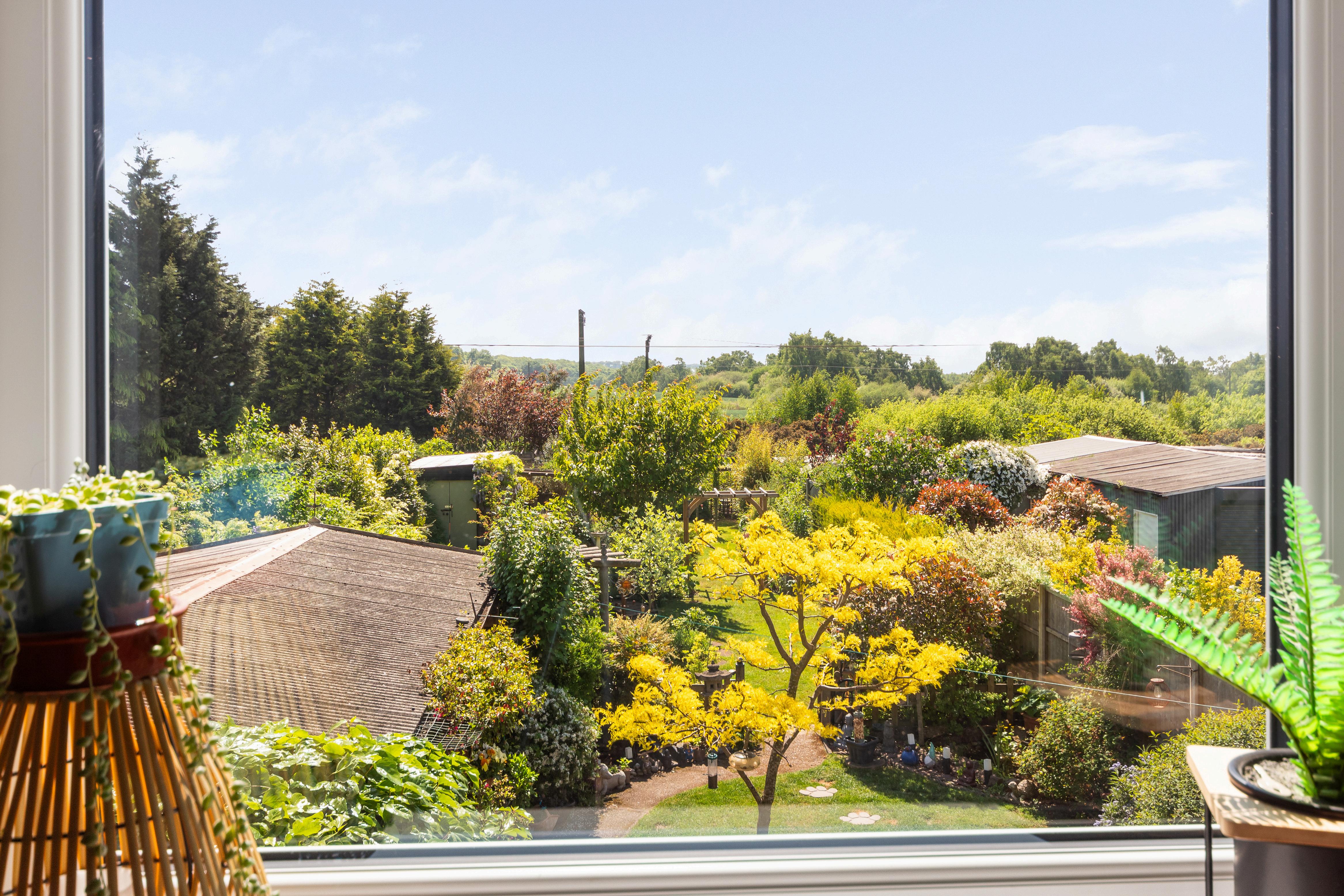 To the rear boundary, the garden enjoys open views across rolling fields, offering a picturesque backdrop and a strong sense of countryside tranquillity There also comes the benefit of a large garden shed