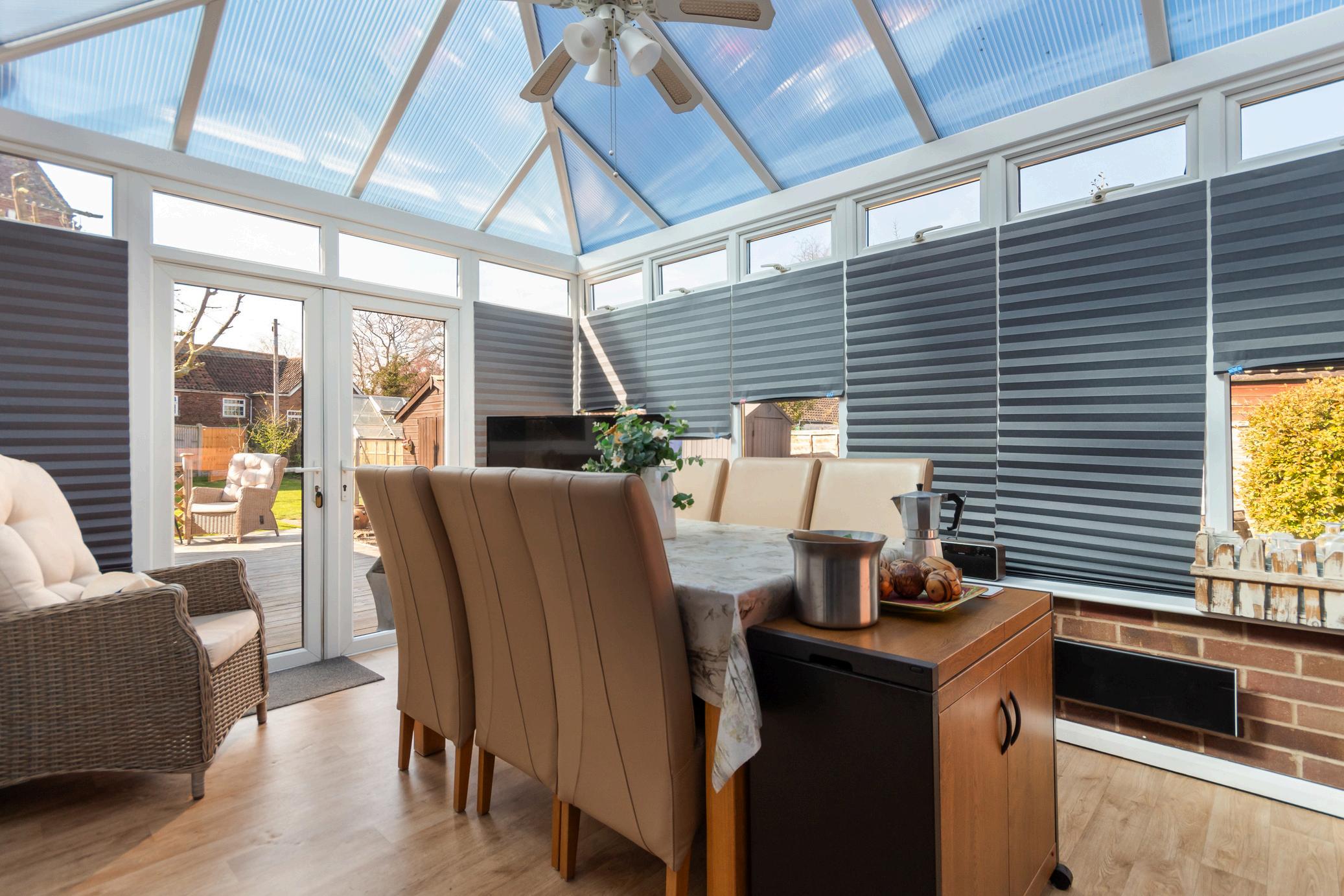 Just off the kitchen, a bright and airy conservatory provides the perfect spot to enjoy views of the garden year-round. Fitted with blinds and French doors leading directly outside, it’s an ideal space for dining, entertaining, or simply enjoying a quiet moment. A practical side porch, also serving as a utility area, offers an additional entrance and extra storage options.