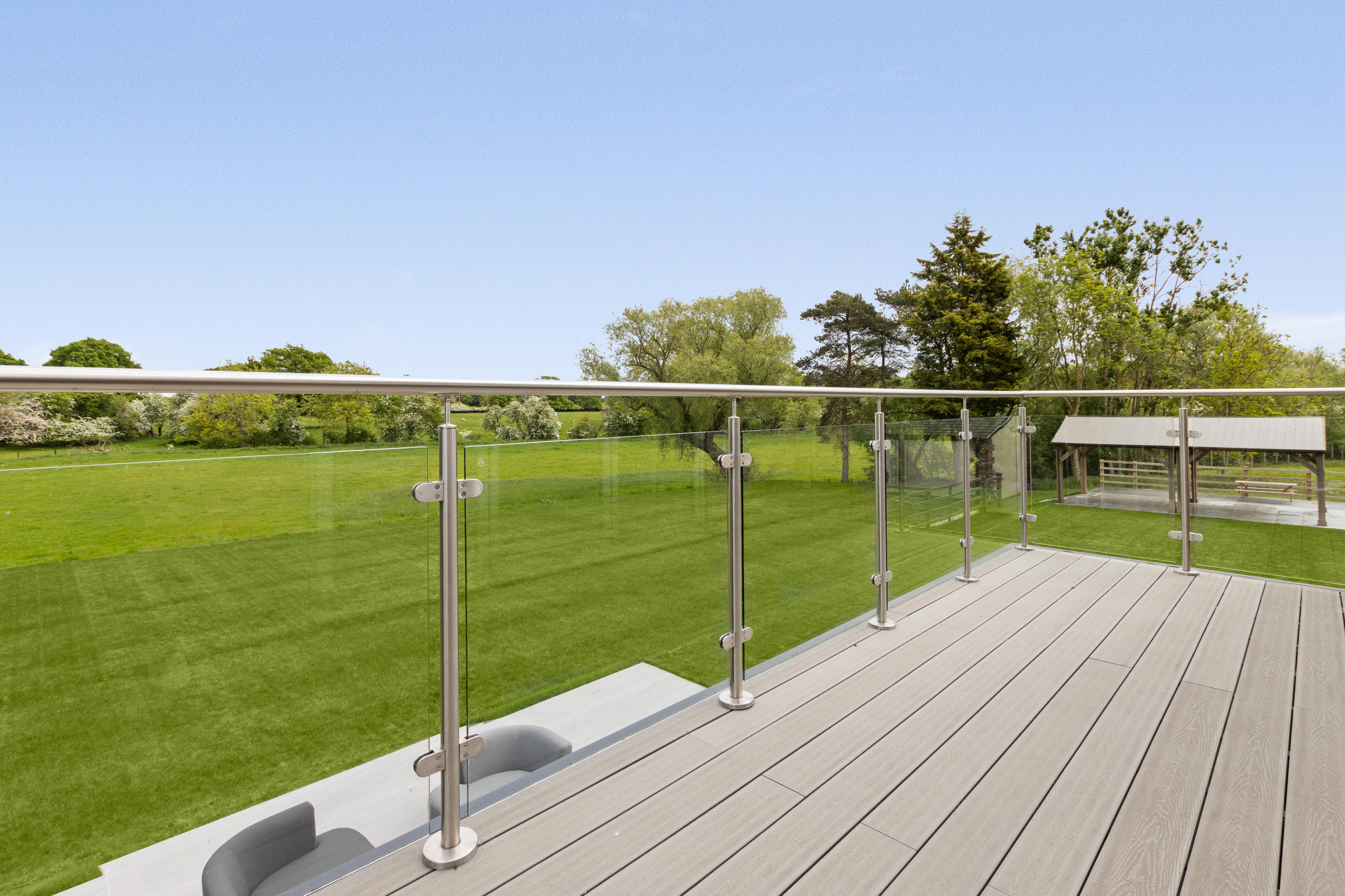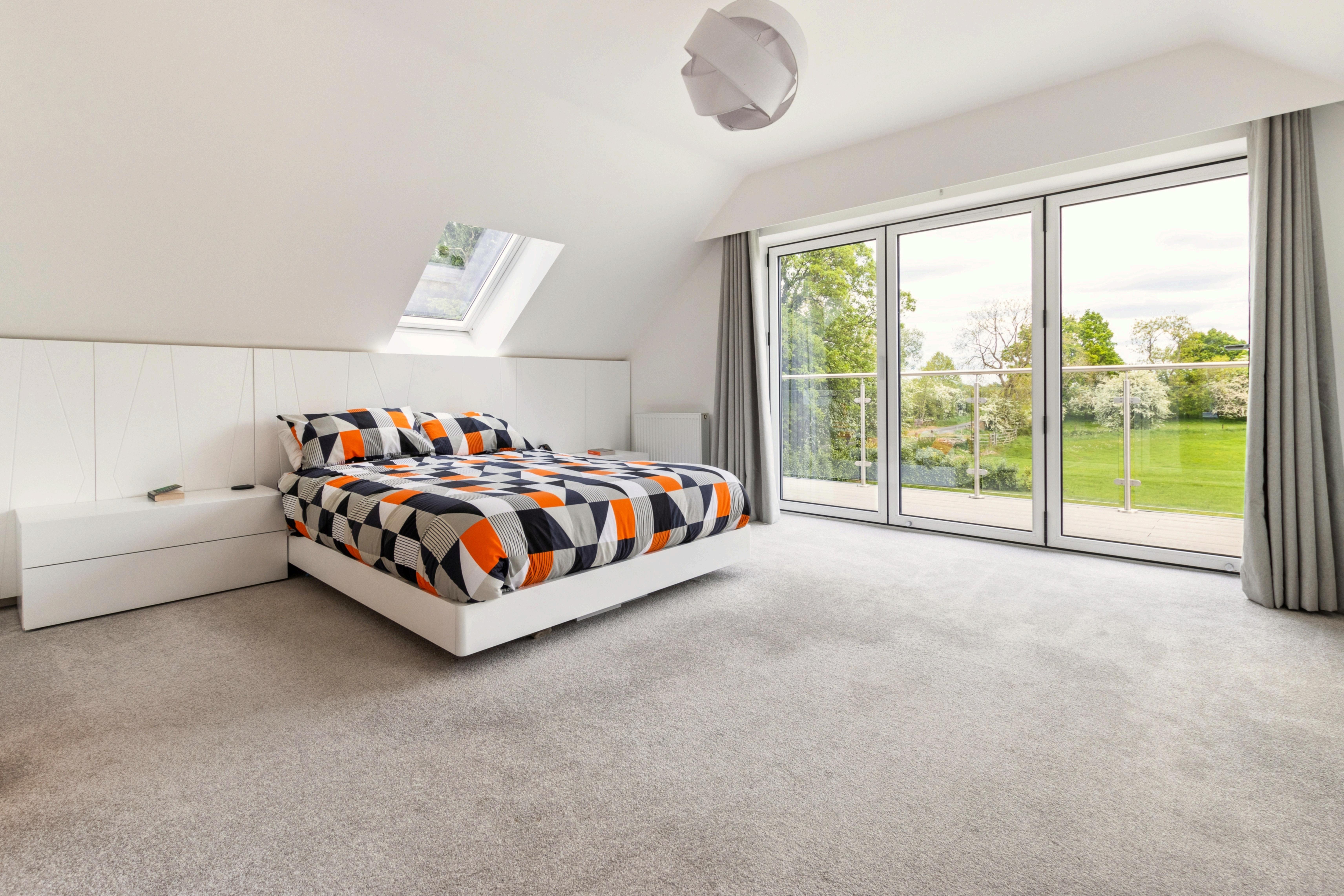 Upstairs, a feature window on the landing creates a quiet reading nook — a perfect place to pause and take in the countryside views. Four double bedrooms radiate from here, including a superb principal suite with bespoke fitted wardrobes and a contemporary en-suite shower room with walk-in enclosure. Bi-folding doors lead from the bedroom onto a spacious private balcony the best view in the house where morning coffee can be savoured to a soundtrack of birdsong. Two further bedrooms mirror each other in both layout and quality, each with bespoke storage, and the fourth bedroom is currently arranged as a home office, complete with a technology cabinet that serves as the home’s central hub, providing high speed smart home functionality throughout the property.