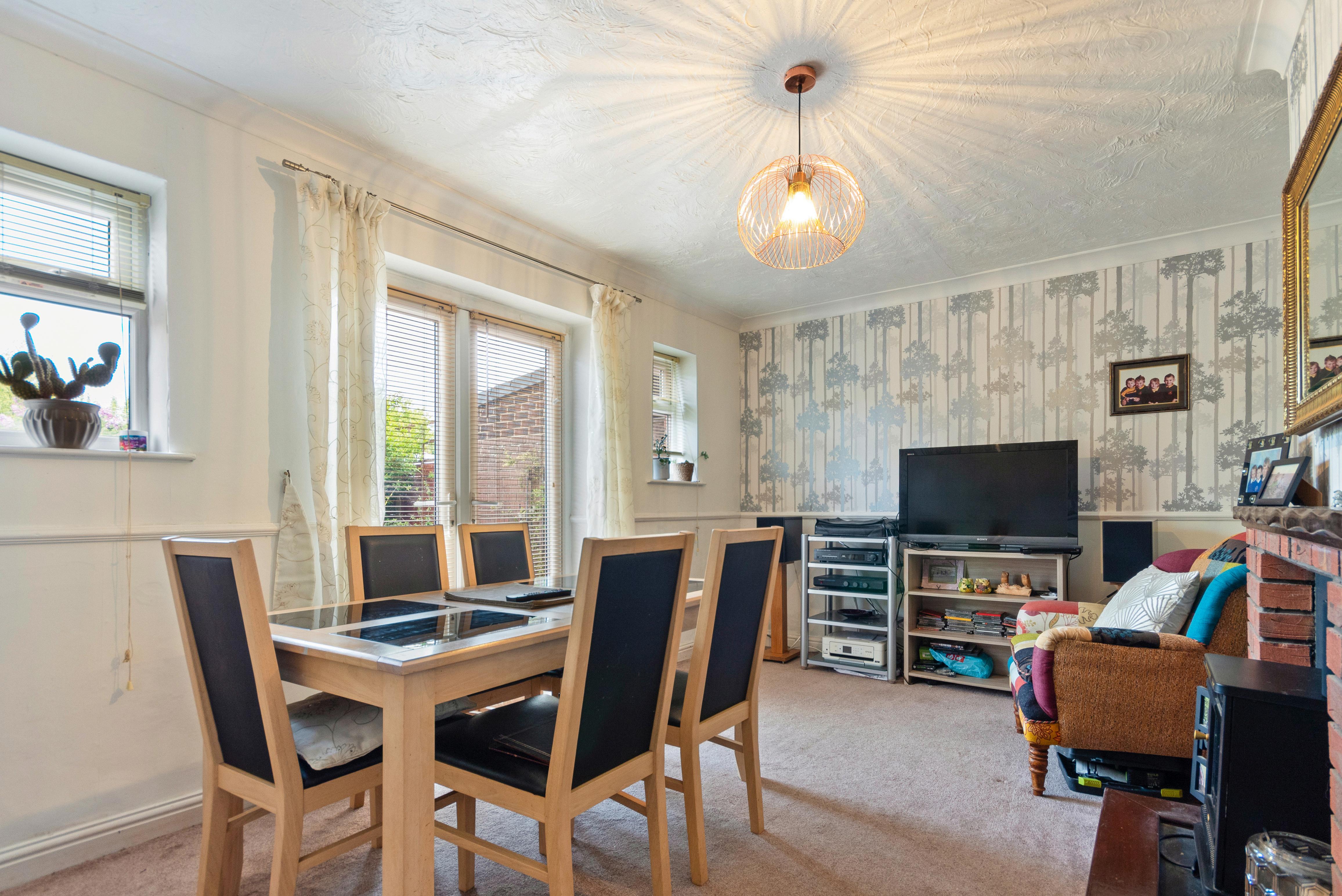 Step inside and you're greeted by a welcoming entrance hall that sets the tone for the rest of the property, featuring warm wood-toned flooring and classic decorative finishes. The lounge to the front offers a cosy retreat with a feature bay window and traditional gas fire with marble surround, while the separate dining room to the rear creates a perfect setting for entertaining, enhanced by garden views and patio access. The breakfast kitchen is both functional and bright, well-equipped with a range of fitted units and integrated appliances, enjoying views to both the front and rear and direct access to the garden.