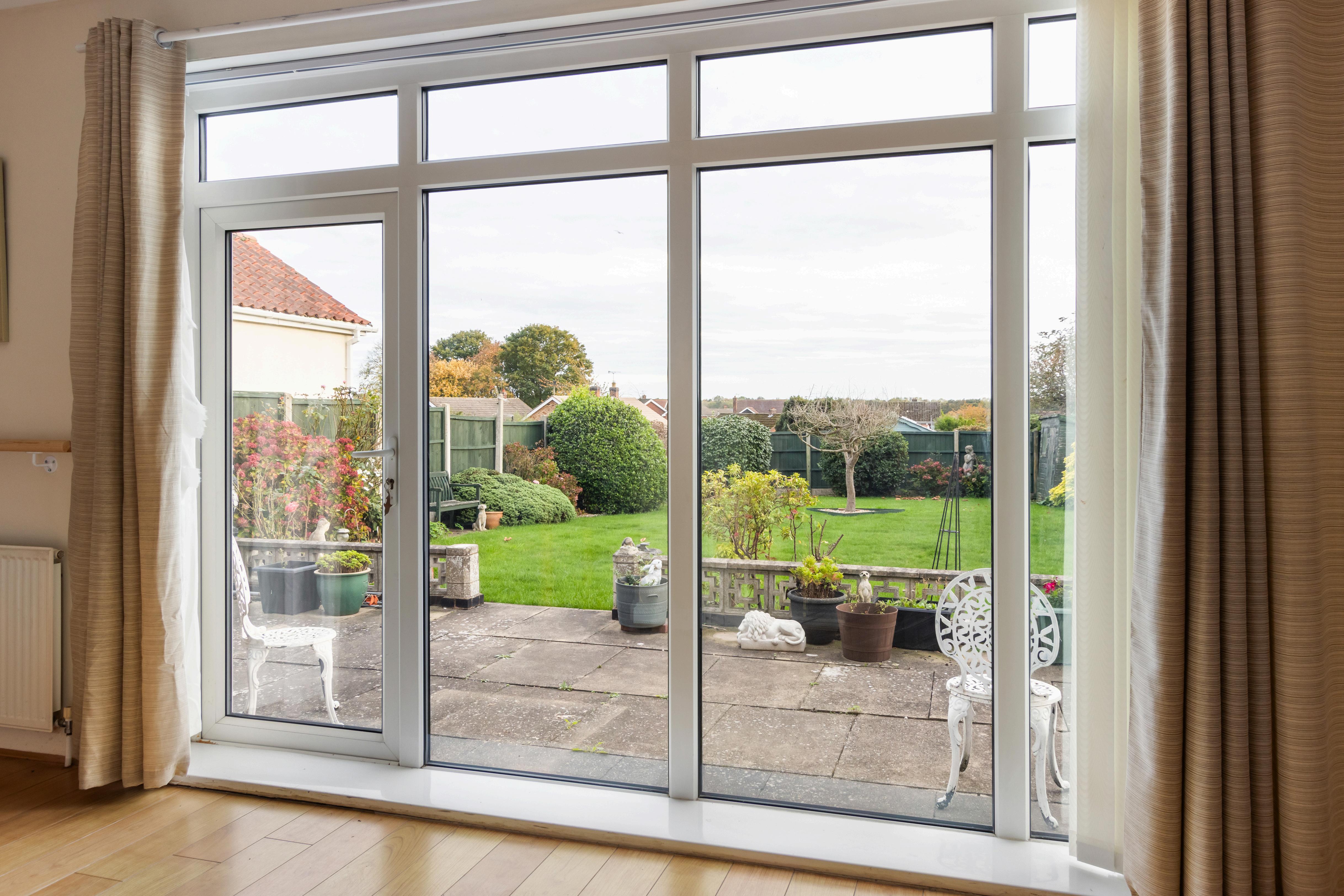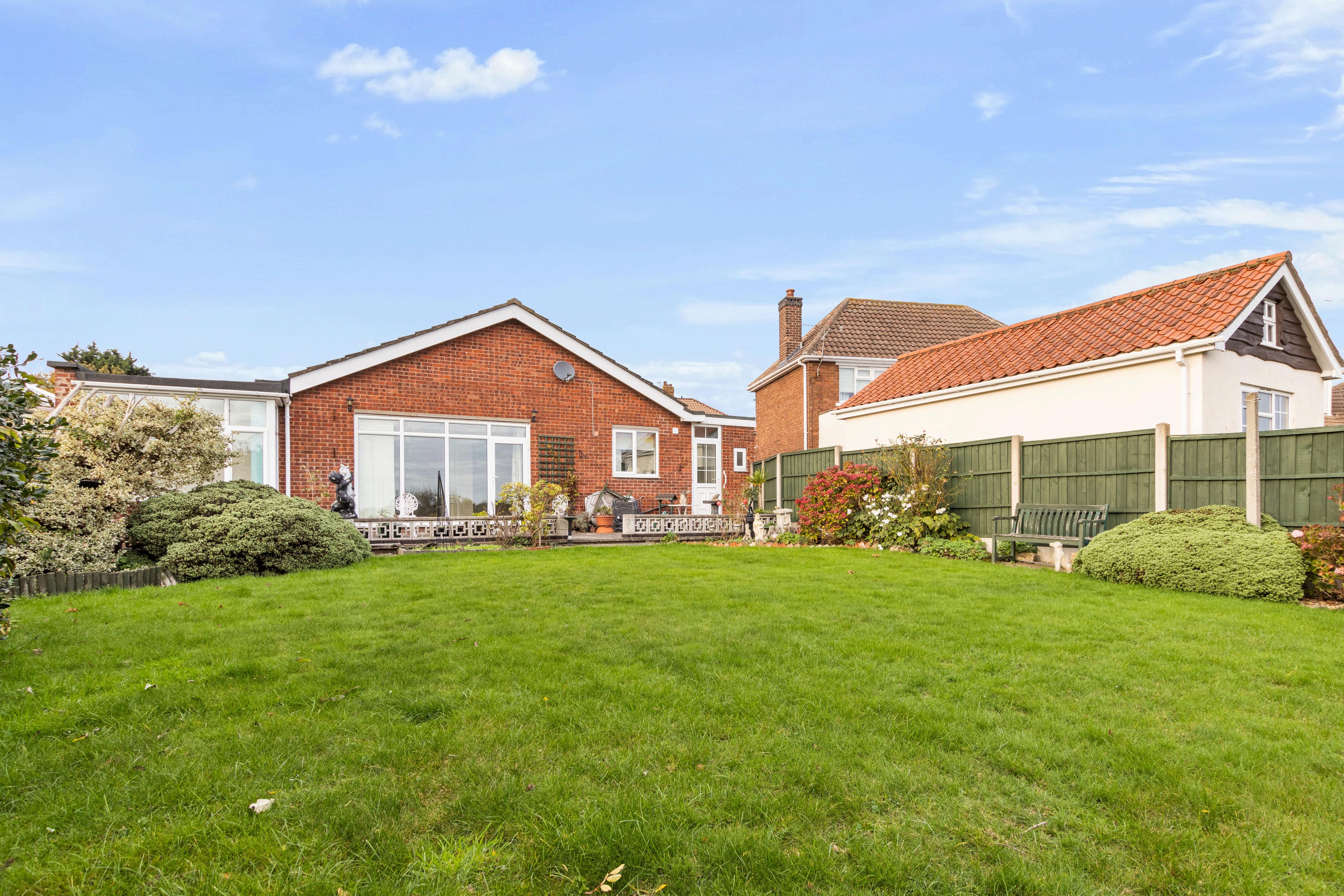 Set on a generous plot, this well-proportioned detached bungalow offers comfortable and versatile living throughout. From the welcoming entrance lobby, you are led into a bright and airy lounge/diner, featuring a central fireplace and large sliding doors that open onto the rear garden flooding the space with natural light and providing a lovely outlook.