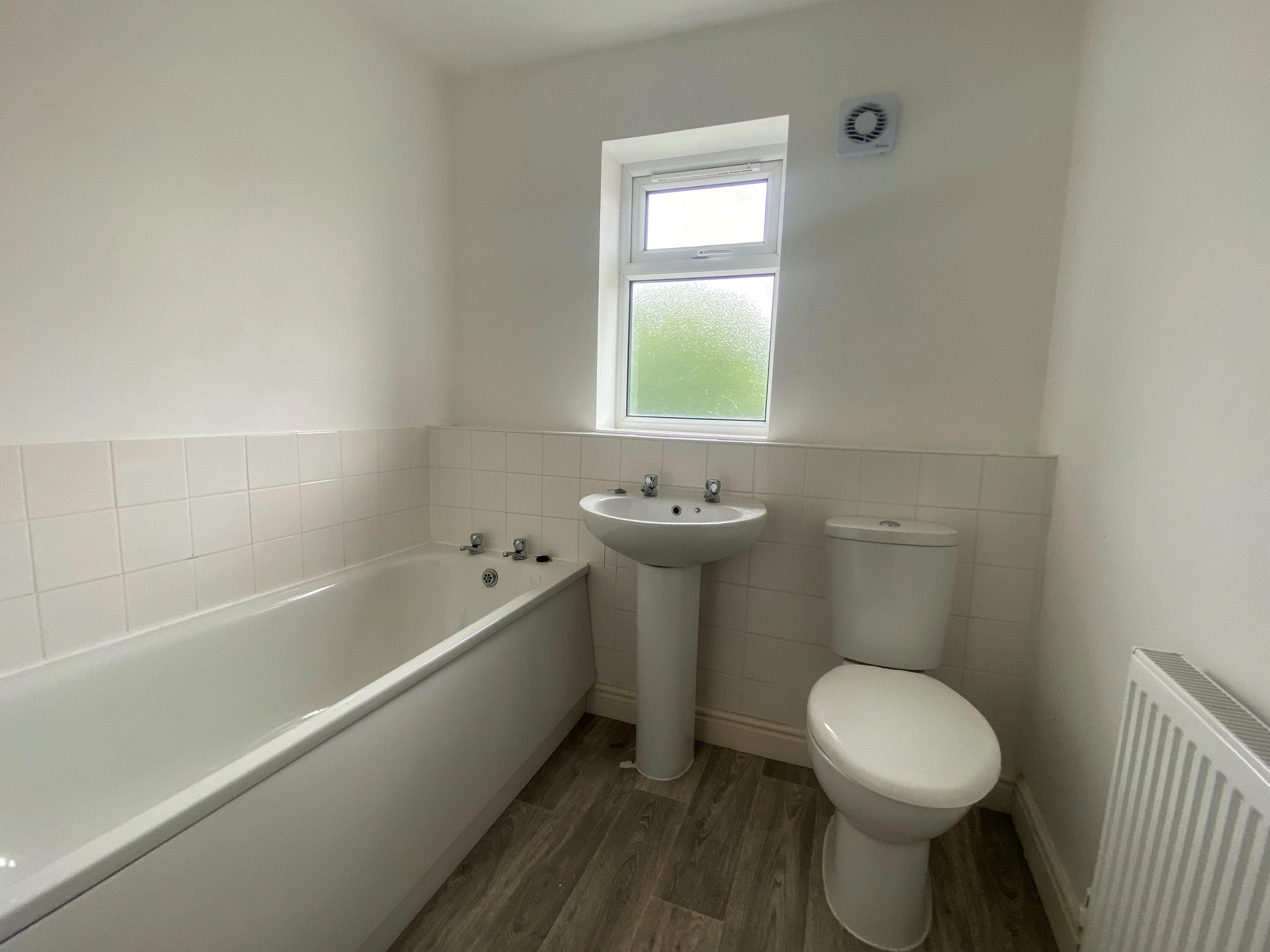 Upstairs, there are three good-sized bedrooms. At the rear of the property, you'll find a single bedroom and a double bedroom, while the front hosts the master bedroom with an ensuite. The ensuite features a shower cubicle with a mains-fed shower, a wash hand basin, and a WC, with tiling and mermaid board in water-sensitive areas. The family bathroom, also located at the front of the property, is fitted with a white three-piece suite comprising a side panel bath, a pedestal wash hand basin, and a dual flush WC. Additionally, the landing offers a handy storage cupboard.