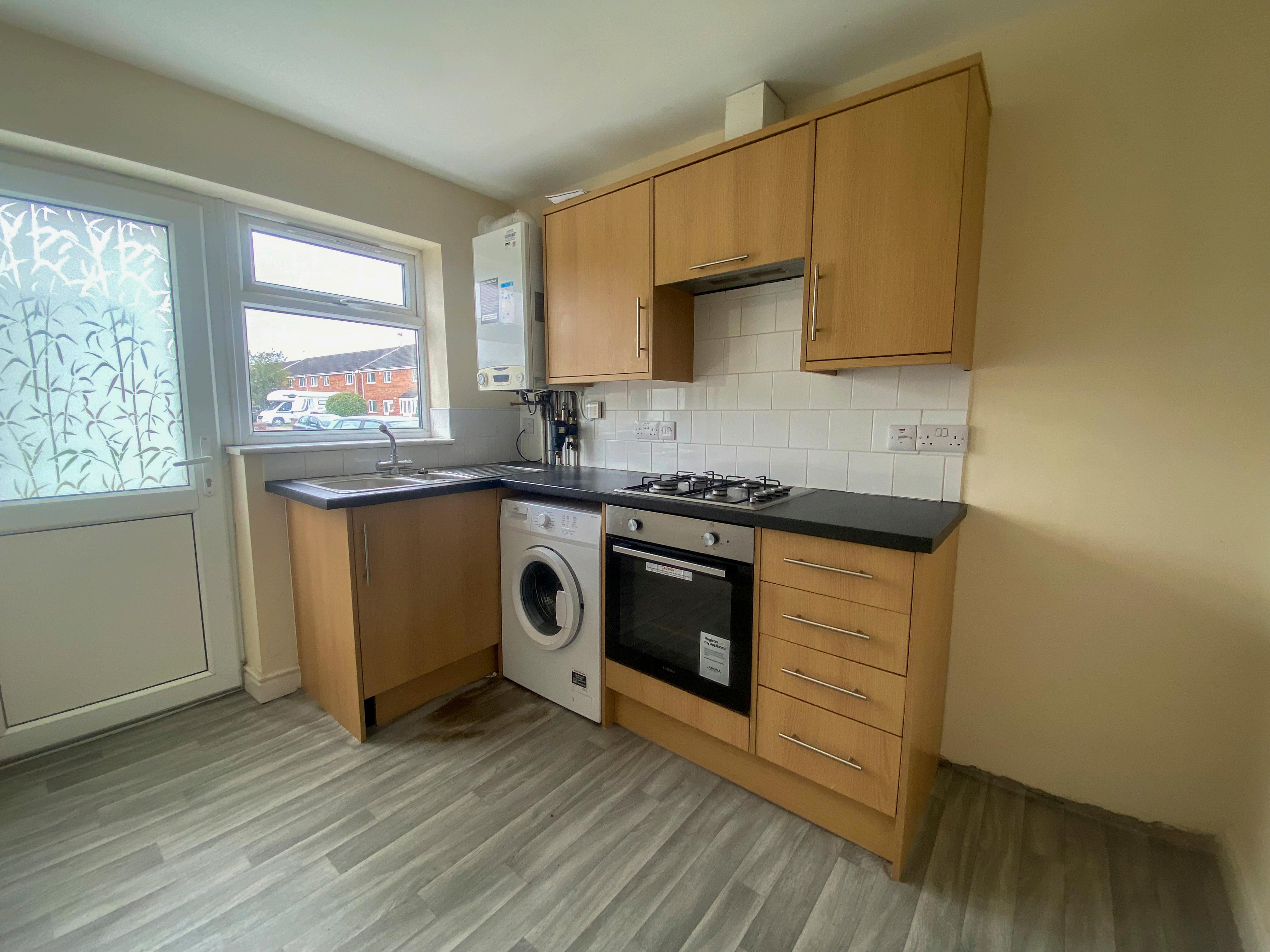 The kitchen is well-equipped with a range of wall and base units, space, and plumbing for a washing machine, and room for a fridge freezer. It is fitted with a four-ring gas hob, an integrated electric oven, and a one and a quarter bowl stainless steel sink with a mixer tap, conveniently positioned under the window. The kitchen also houses the boiler.