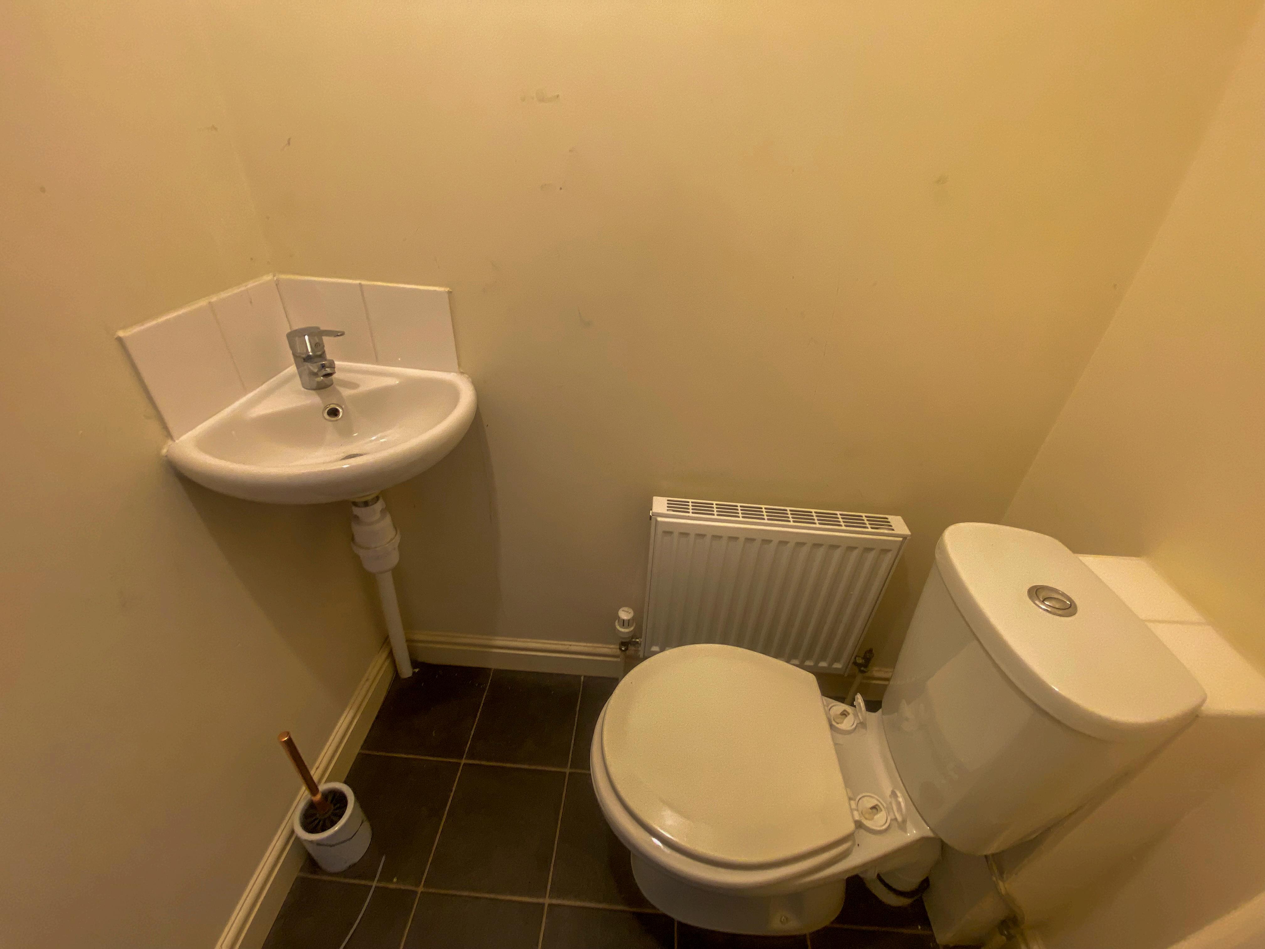 Beneath the stairs, there is a practical cloakroom, fitted with a dual flush WC and a corner wash hand basin.