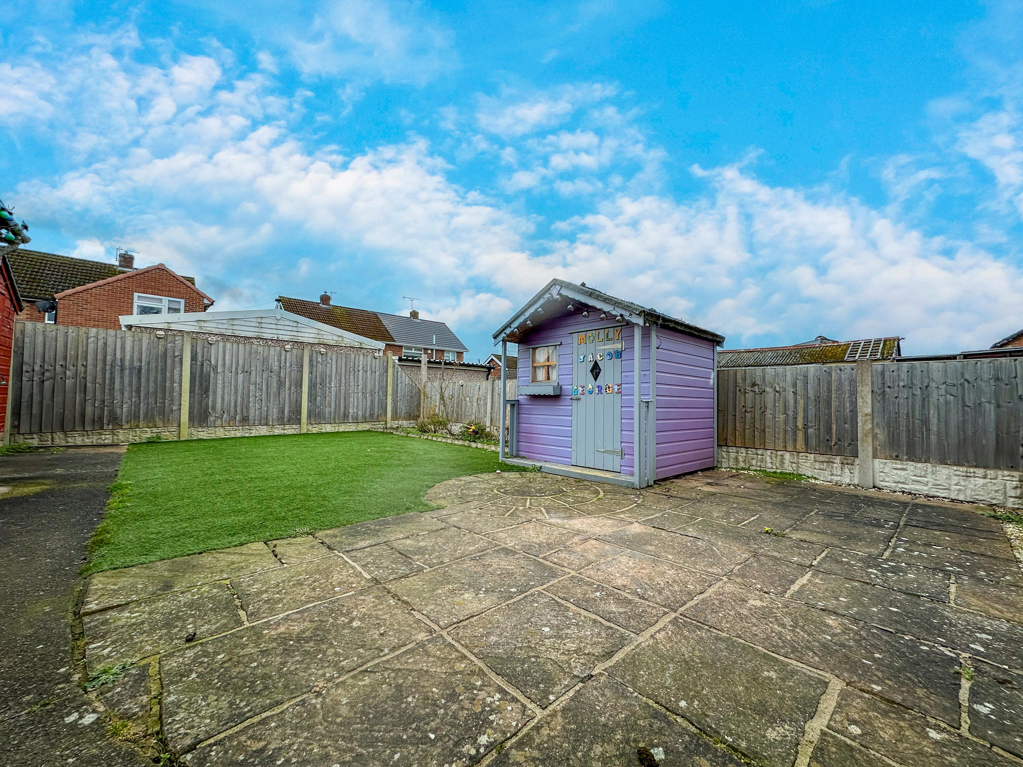 Externally the property boasts extended off-road parking for multiple vehicles to the front and has timber gates leading down the side of the property to the detached single garage that boasts both power and lighting. To the rear is a lowmaintenance garden that is predominantly laid to artificial grass, a paved patio seating area for entertaining, a summer house, a timber shed for additional storage, all encompassed with timber fencing for privacy