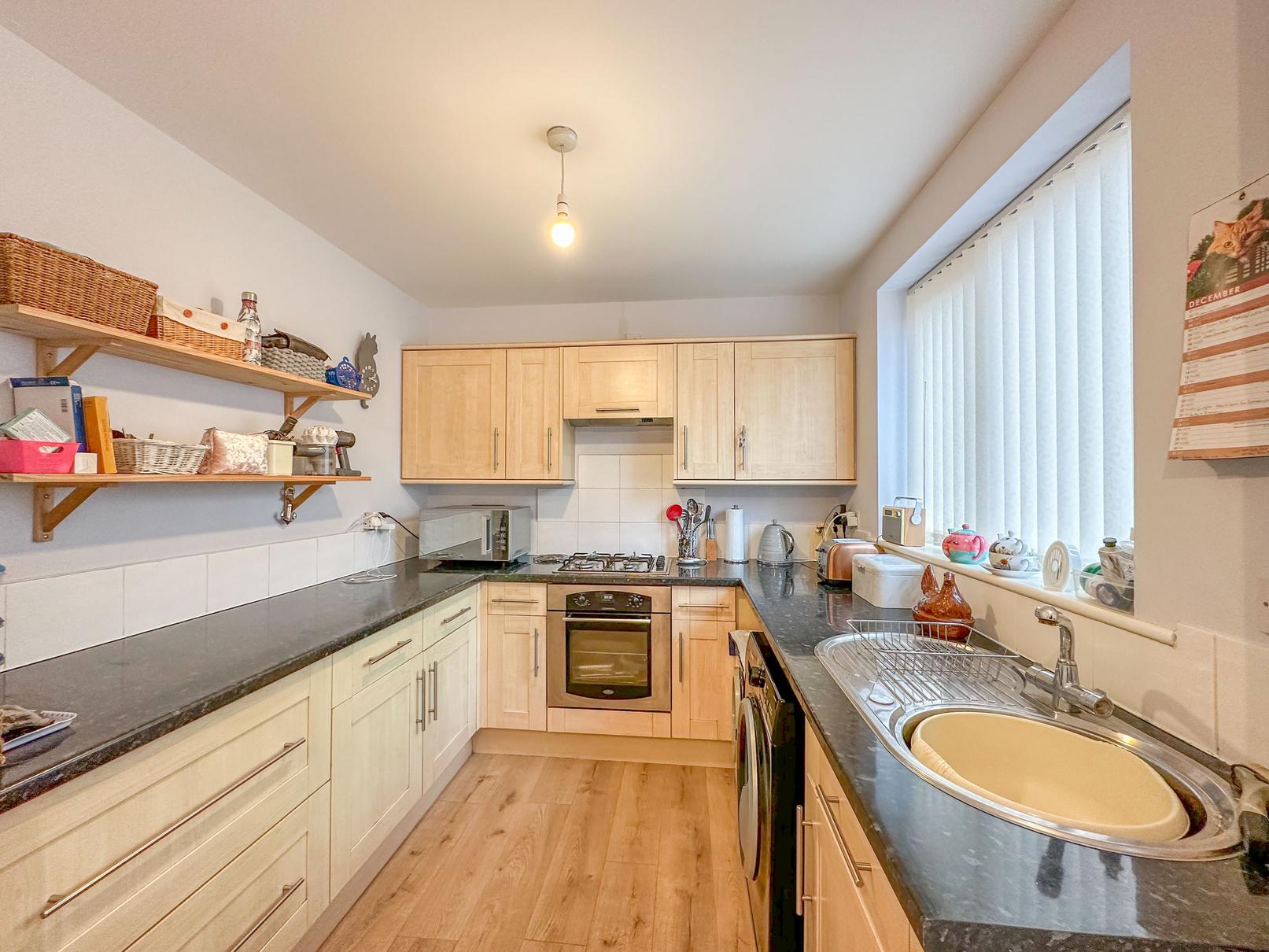 A ground floor entrance door opens into the welcoming hallway with staircase to the first floor, leading to the lounge with a bay window and a feature fireplace with living flame gas fire. A door opens from the lounge into the kitchen fitted with a range of shaker style cabinets integrated stainless steel oven and sink open plan from the kitchen area is a dining area with French doors opening to the rear garden.