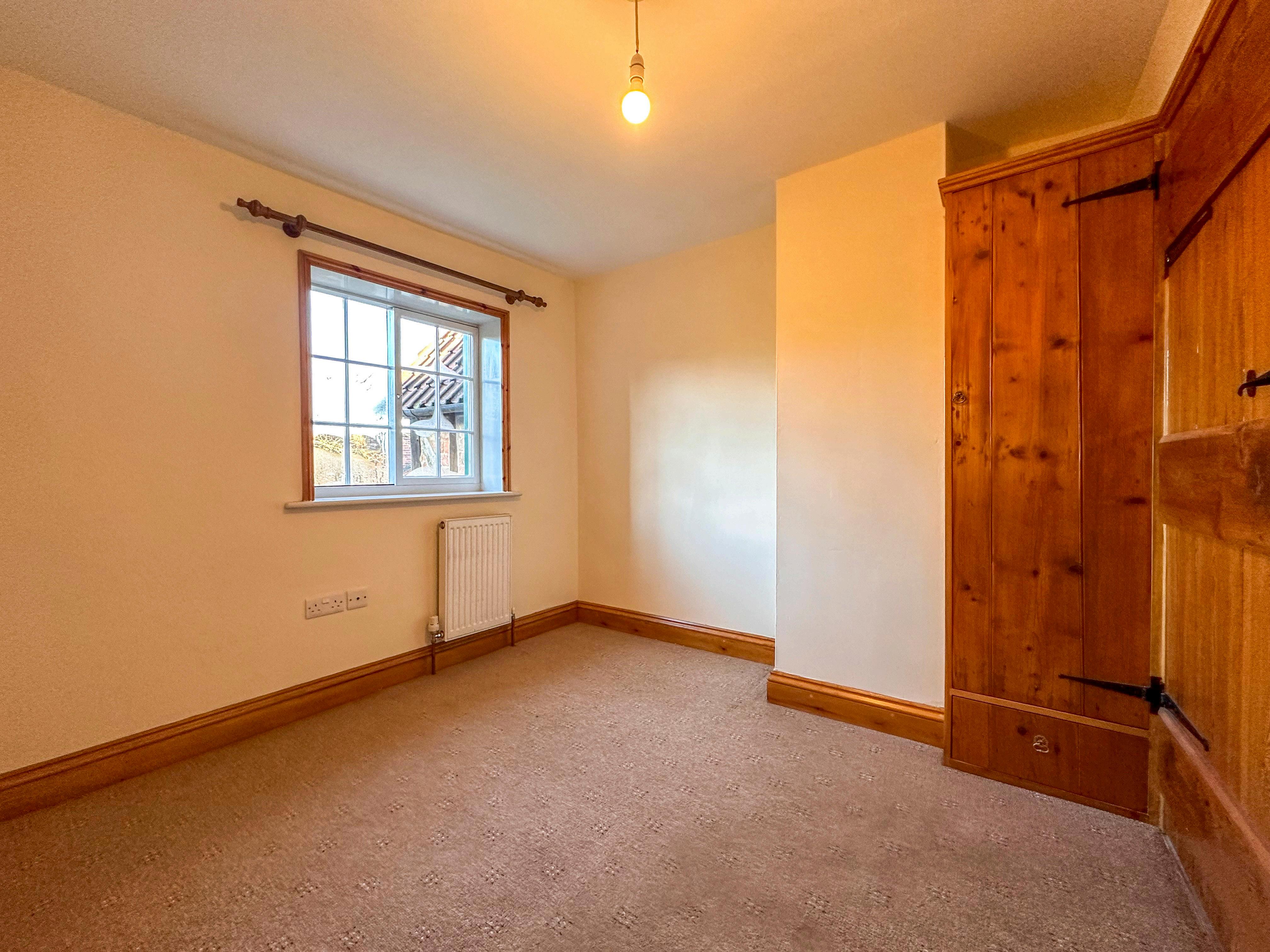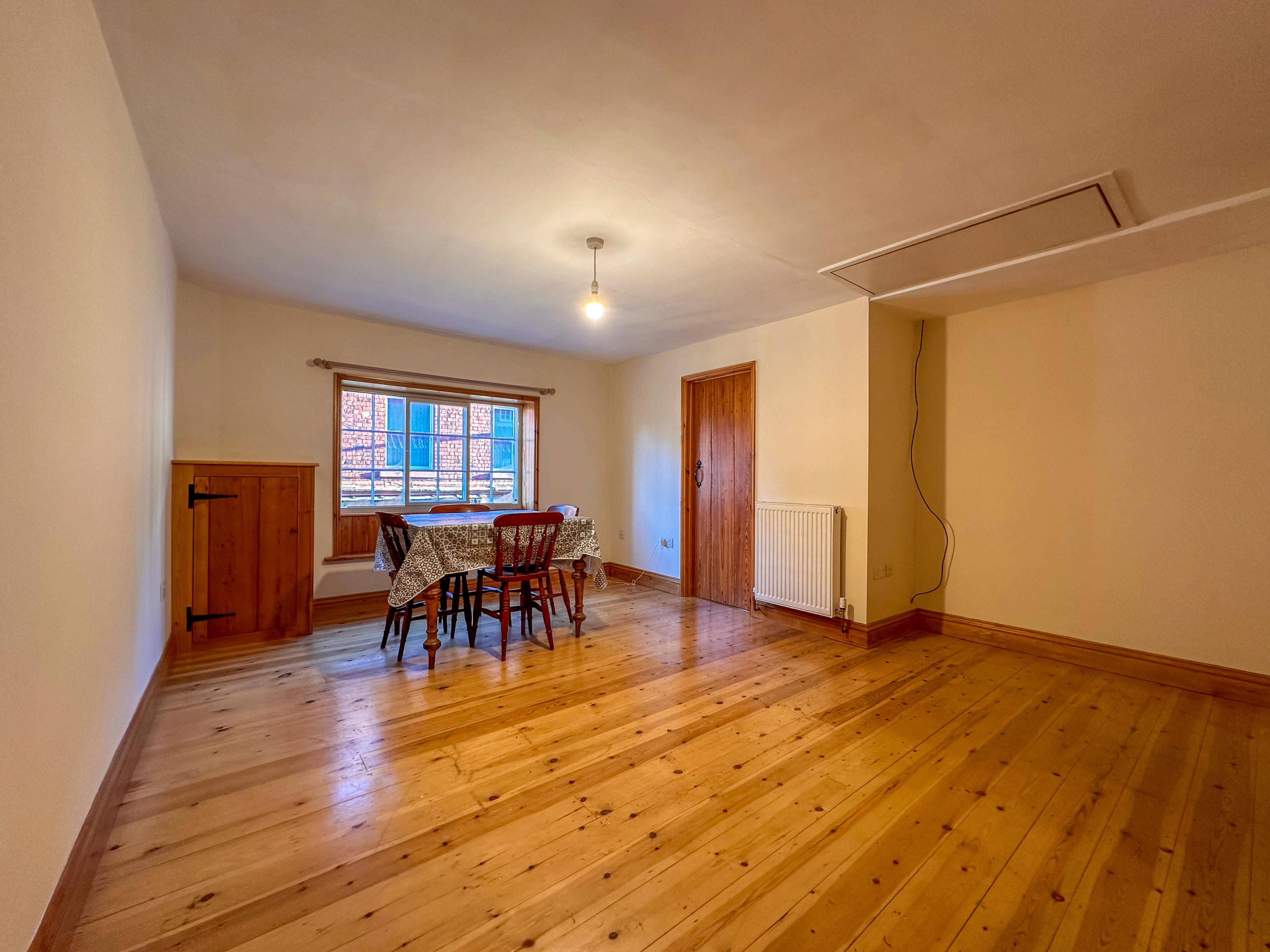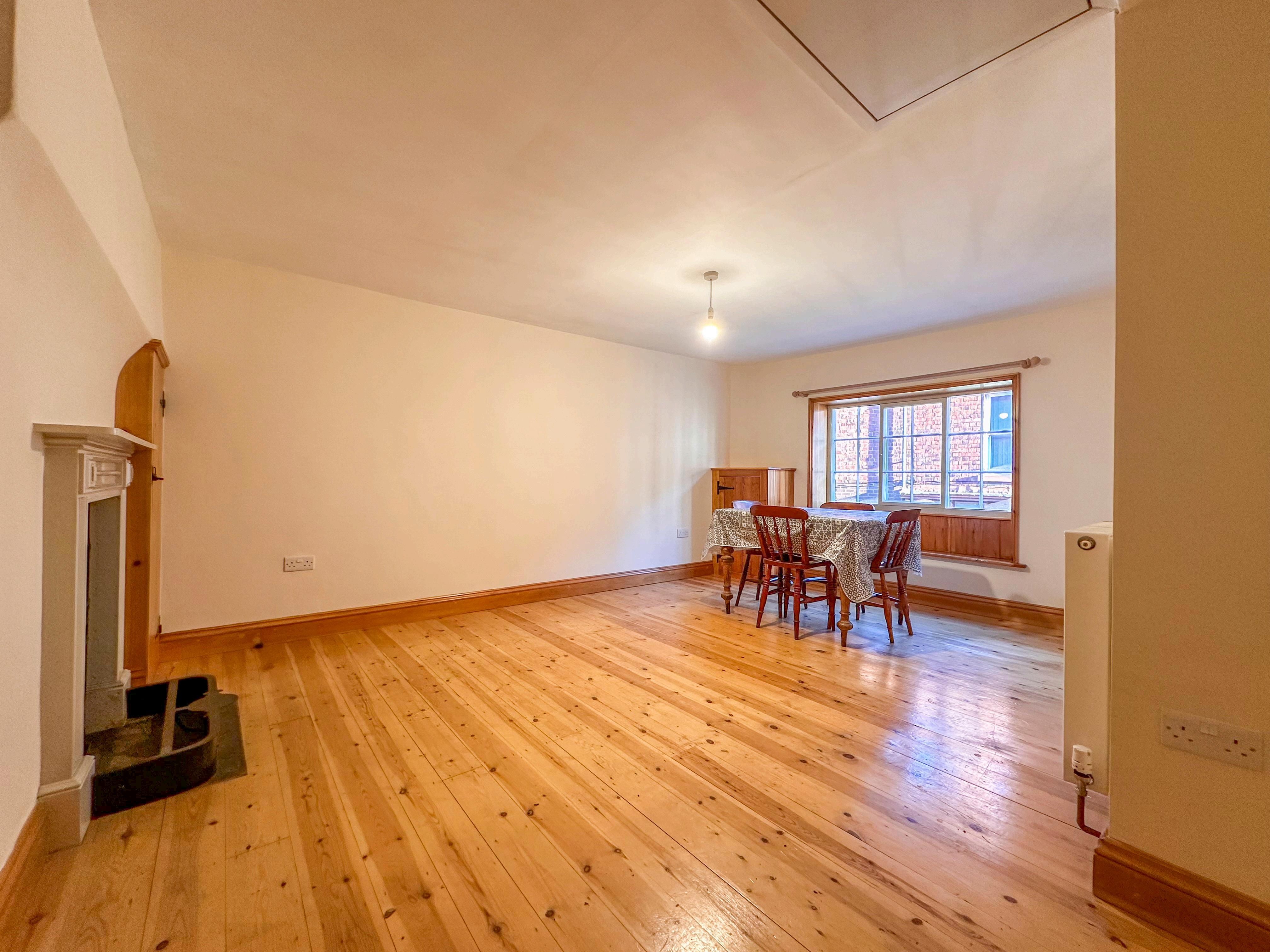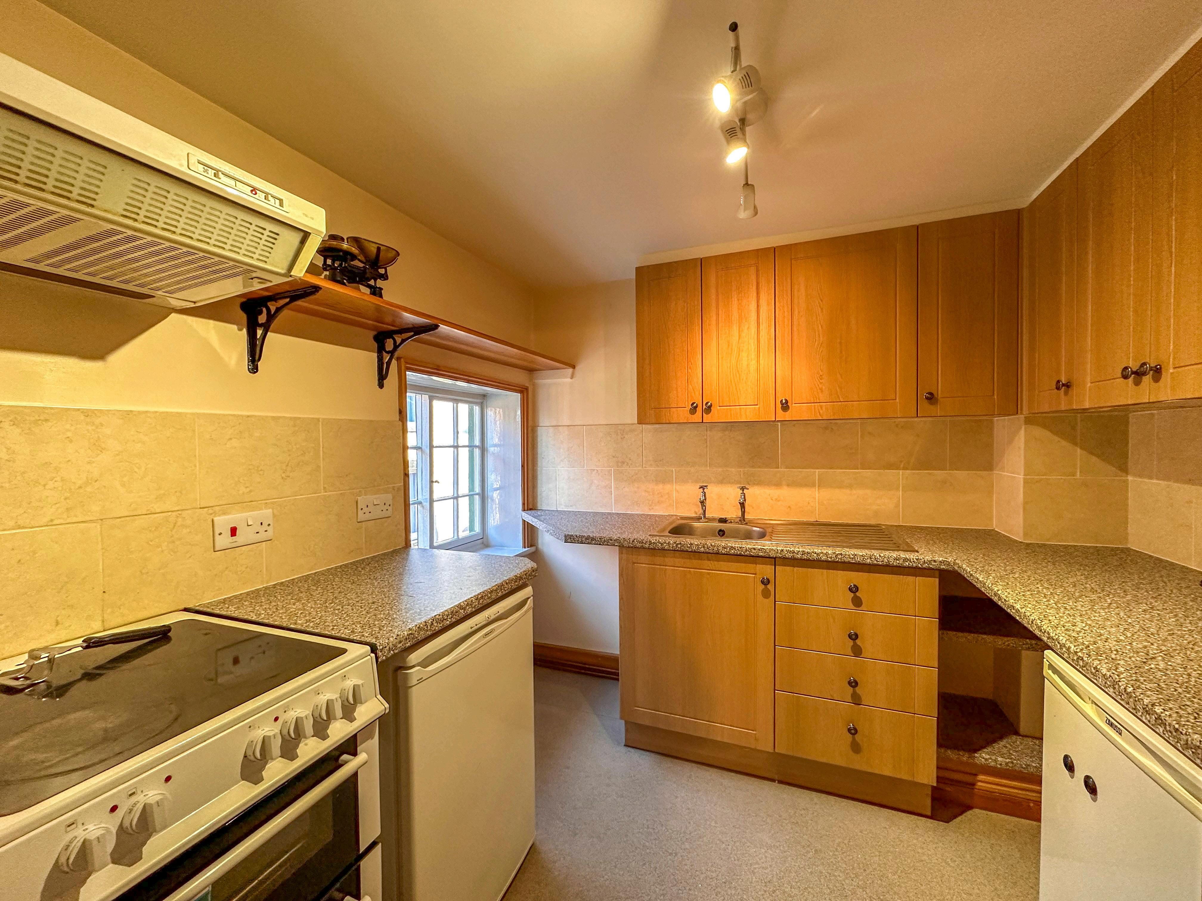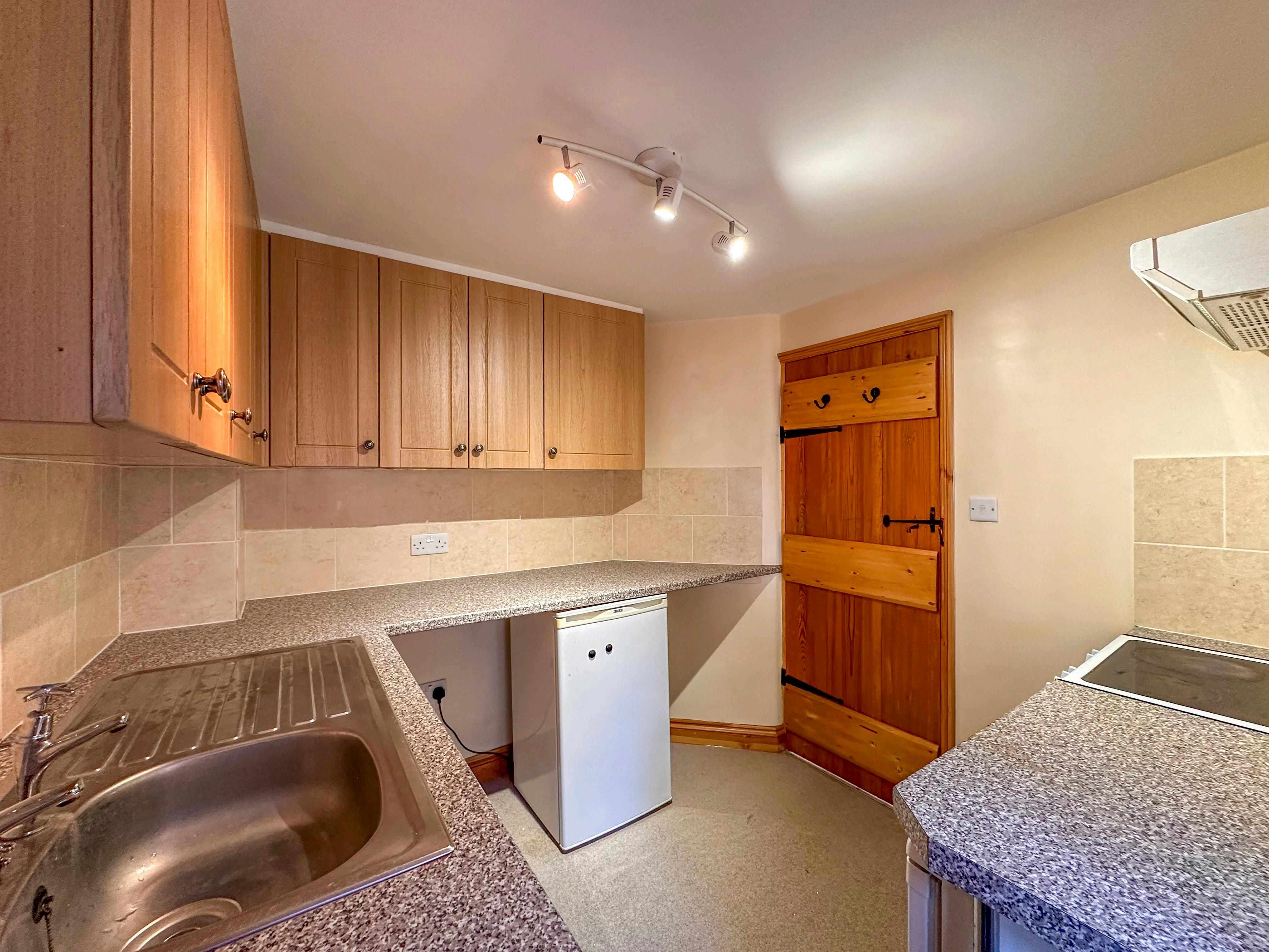 Upon entering this delightful home, you are welcomed by a staircase leading to the first floor, where the living accommodation is situated. The front of the property features a modern fitted kitchen, complete with base and wall-mounted cabinets, a stainless-steel sink, and ample space for white goods. Adjacent to the kitchen, the spacious living room showcases a stylish wrought-iron feature fireplace and includes a convenient storage cupboard. At the rear, the bedroom offers tranquil views over the courtyard garden and benefits from a built-in wardrobe. Completing the first floor is a three-piece bathroom, which includes a bath with a shower above, a hand wash basin, and a W.C.
