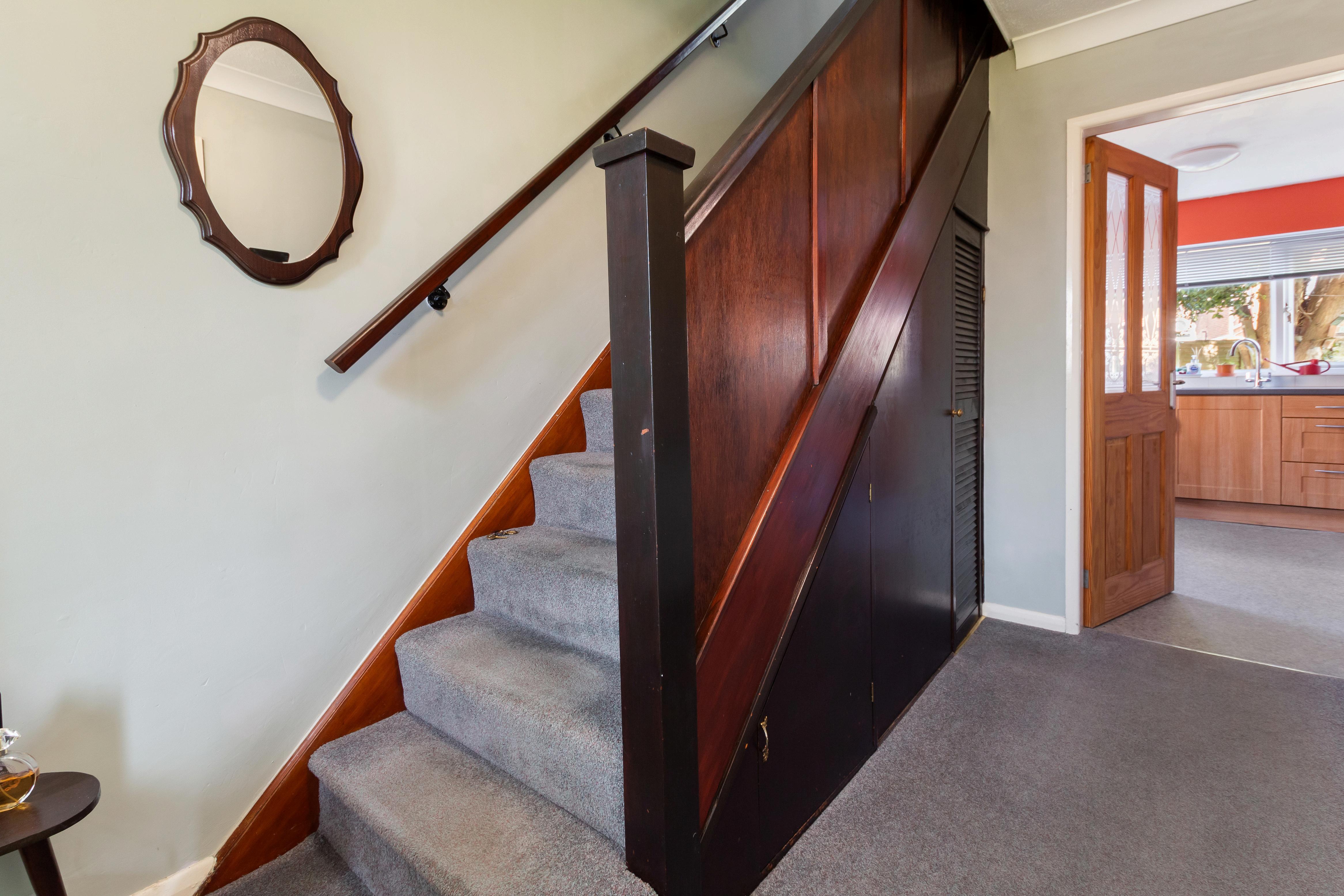 The ground floor features a bright and welcoming hallway leading to a spacious lounge, highlighted by a charming bay window that floods the room with natural light. The lounge seamlessly opens into the dining room, creating a versatile space ideal for family meals or entertaining, with direct access to the rear garden. The modern kitchen is thoughtfully designed, offering ample storage, generous workspace, and a convenient breakfast bar.