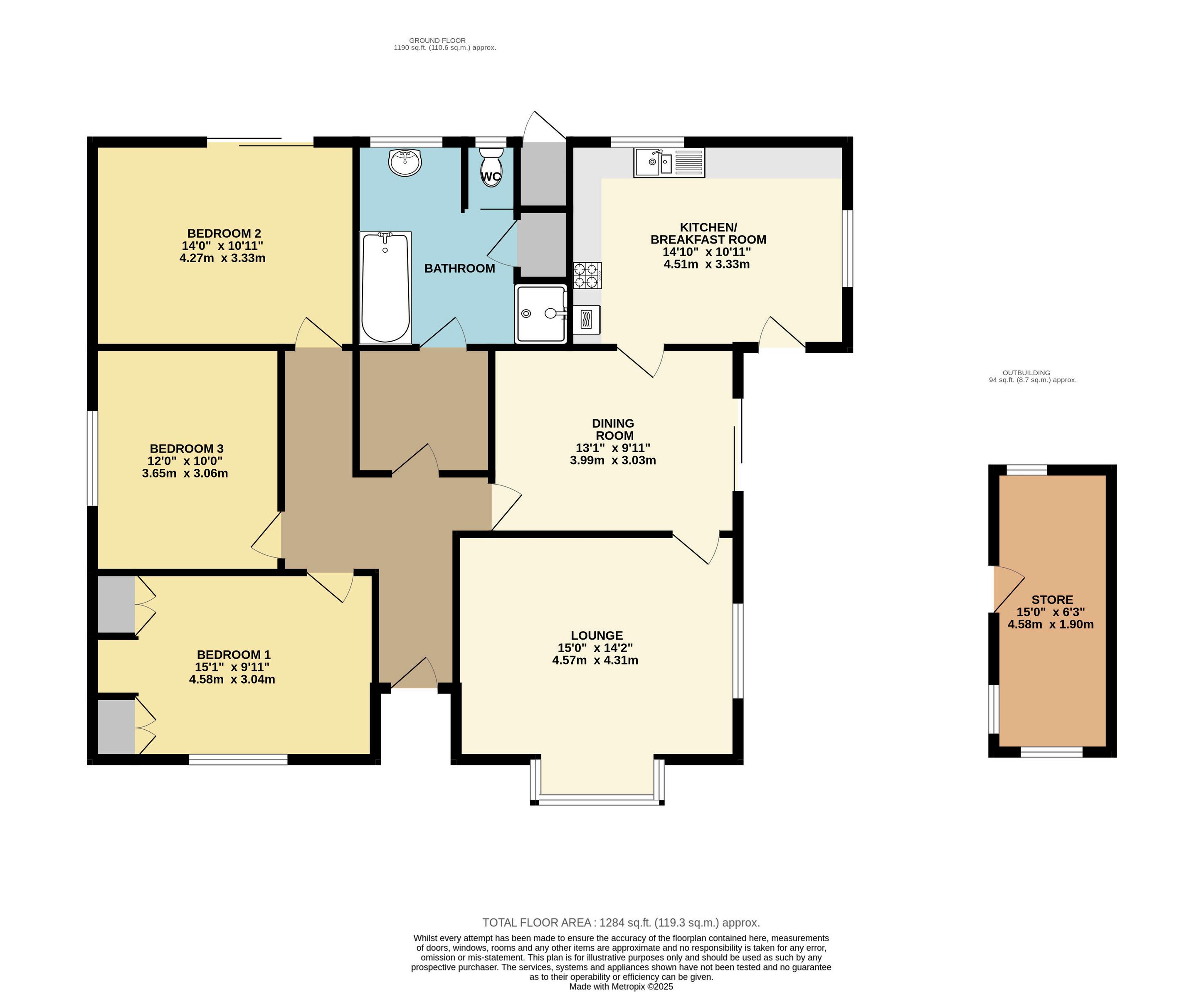 The kitchen diner enjoys views over the garden, offering ample space for both cooking and casual dining. An inner hallway leads to a useful storage area which could also be utilised for multiple purposes, and a well-appointed bathroom.
