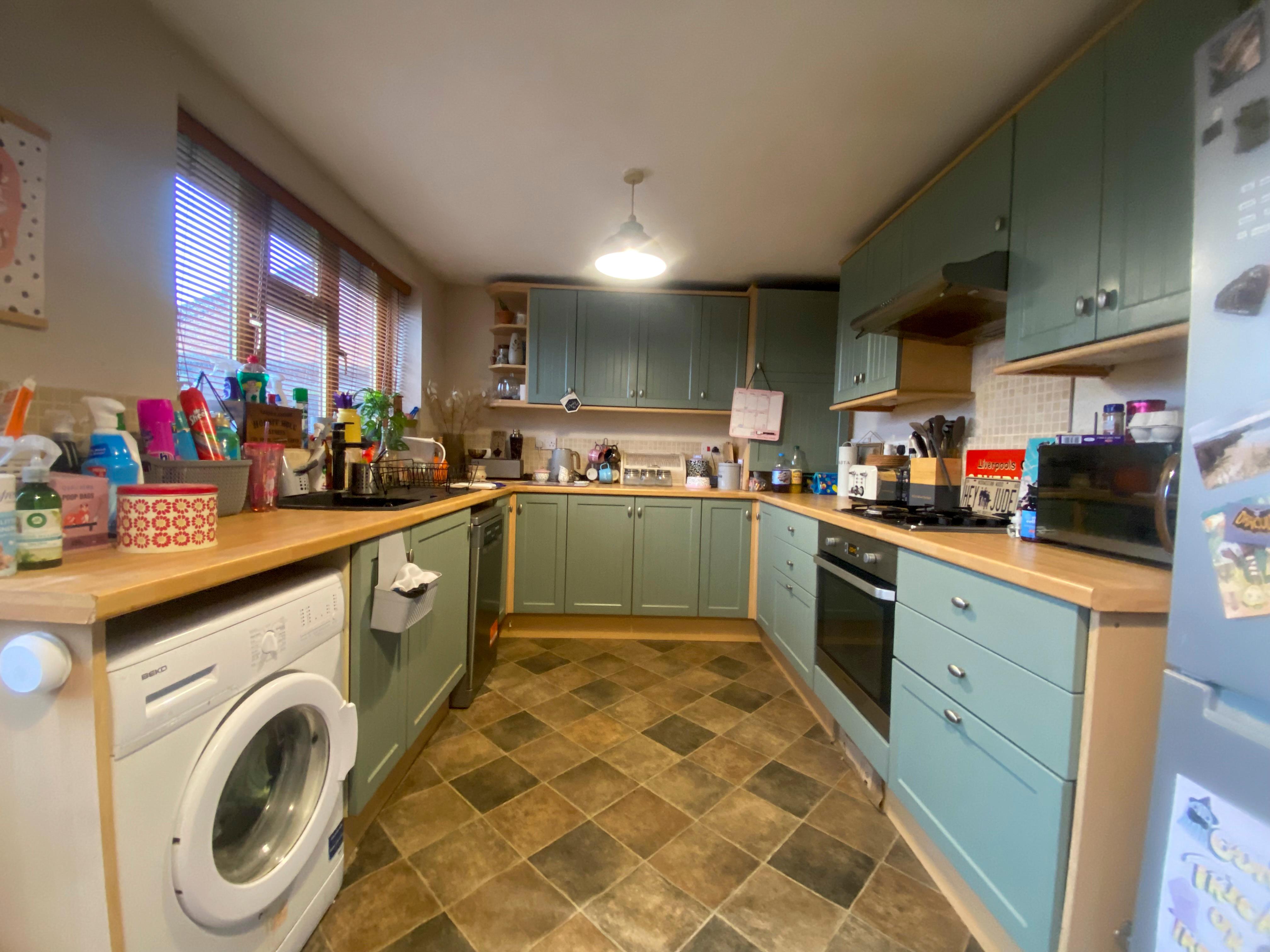 The kitchen diner has a rear aspect with double doo the garden from the dining area. The kitchen is fitted range of wall and base units with spaces for a dishw washing machine and fridge freezer. There is a fitted oven, with gas hob and extractor hood over and the drainer sink is positioned under the window.