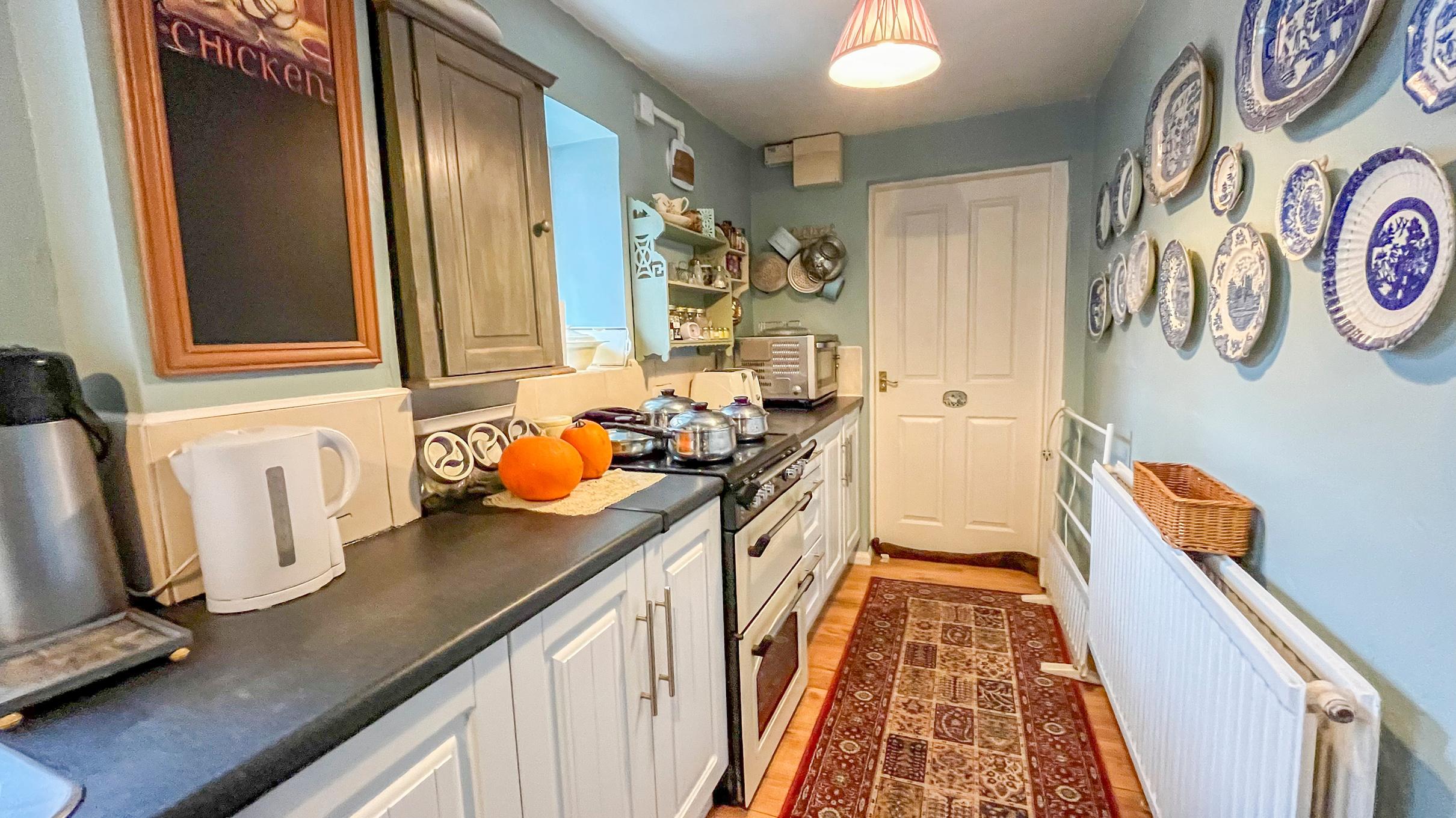 As you step through the front entrance, you're greeted by the inviting ambiance of the traditional lounge featuring a charming fireplace. The staircase to the first floor and access to the family room await, complete with a brick chimney breast, a Multi Fuel Stove Fire, and convenient understairs storage. The galley kitchen boasts stylish white shaker-style units, leading seamlessly to the family bathroom with a freestanding bath with shower over, WC, and wash hand basin. A rear aspect conservatory provides access to the peaceful courtyard garden.