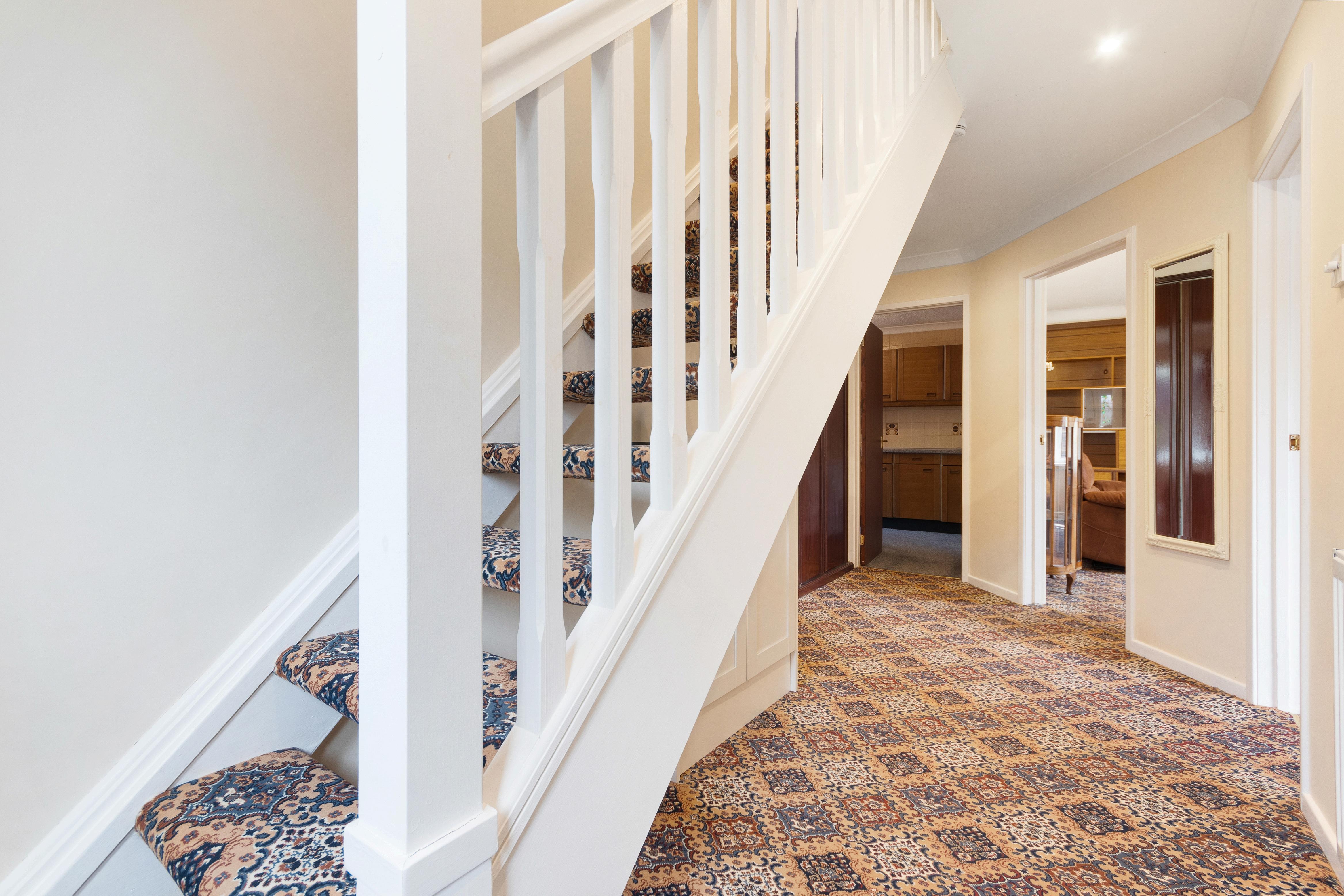 As you step through the side entrance, you’re welcomed by a spacious hallway that sets the tone for the light-filled and inviting interior.