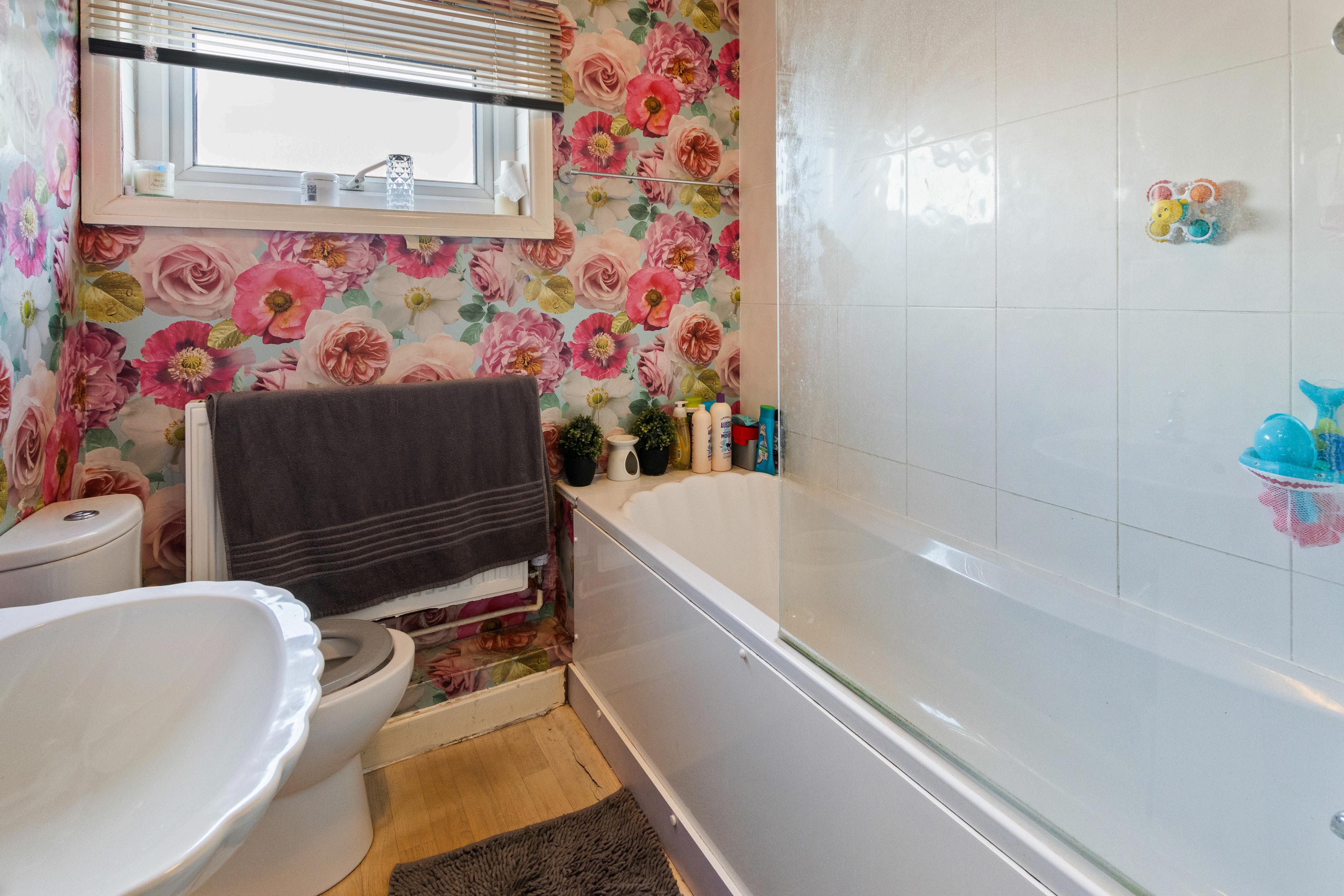 The first floor offers two well-sized bedrooms, including a generous principal bedroom and a second bedroom suitable for a double or large single. A family bathroom, fitted with a three-piece suite, completes this level.