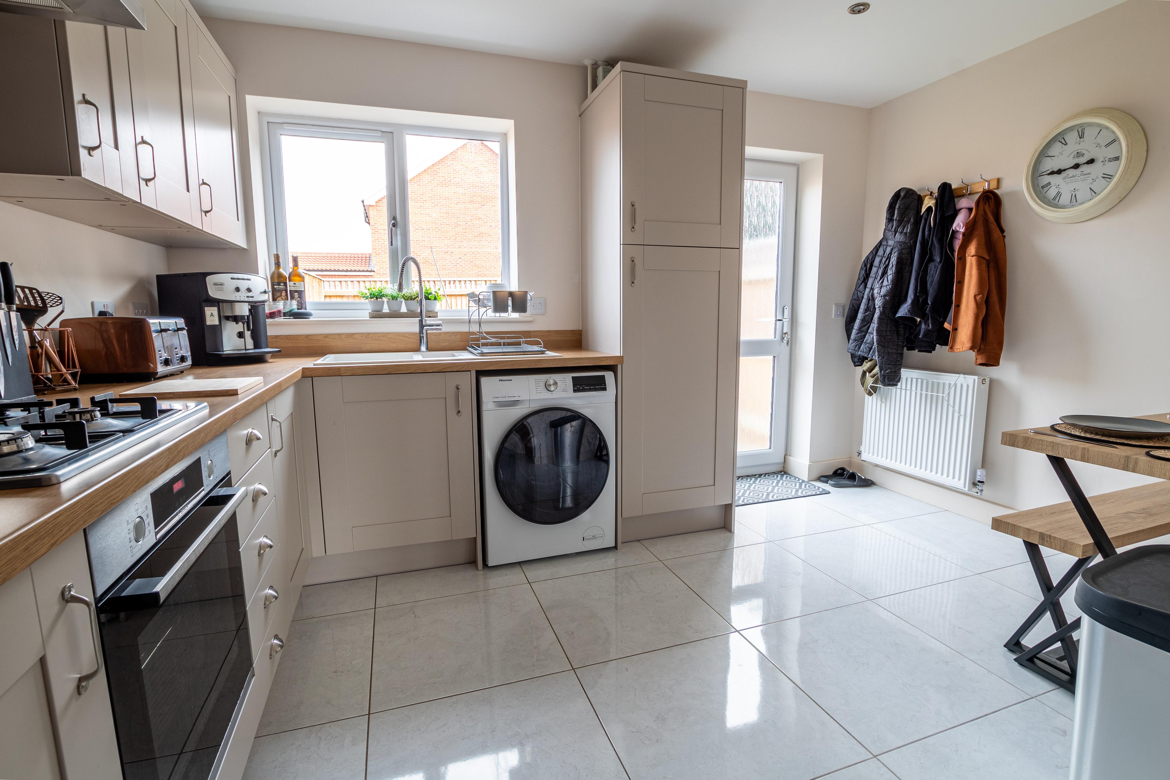 Opening onto a large living room, what is immediately apparent is the quality of decoration, fixtures and fittings this home offers. Decorated to a tasteful, neutral pallet it offers all the modern conveniences that you would expect from a home that was built in 2021. The living area flows into a rear facing kitchen-diner that is equipped with a healthy array of quality, modern units and the floor is finished with large porcelain tiles.