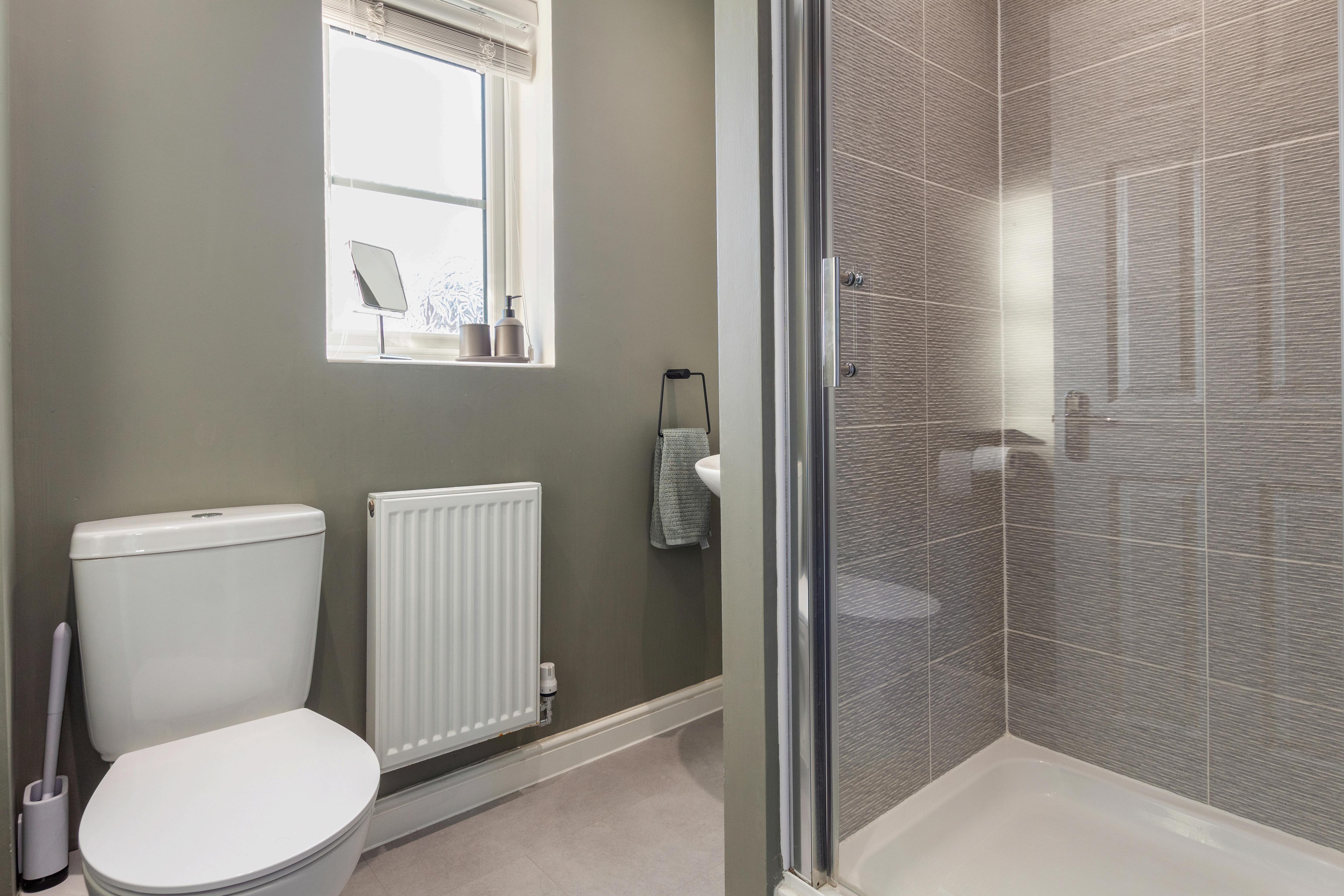 Ascending to the first floor, the landing provides access to the loft and leads to three well-proportioned bedrooms. The master bedroom is an elegant retreat, complete with a walk-in closet and a private en-suite shower room featuring a shower cubicle, wash hand basin, low-level WC, and radiator. The second bedroom is a good size and is currently utilised as an office by the current, while the third bedroom offers flexibility as a nursery, study, or guest room. The family bathroom is finished to a high standard, incorporating a panelled bath, a wash hand basin, low-level WC, and a heated towel rail for added comfort.