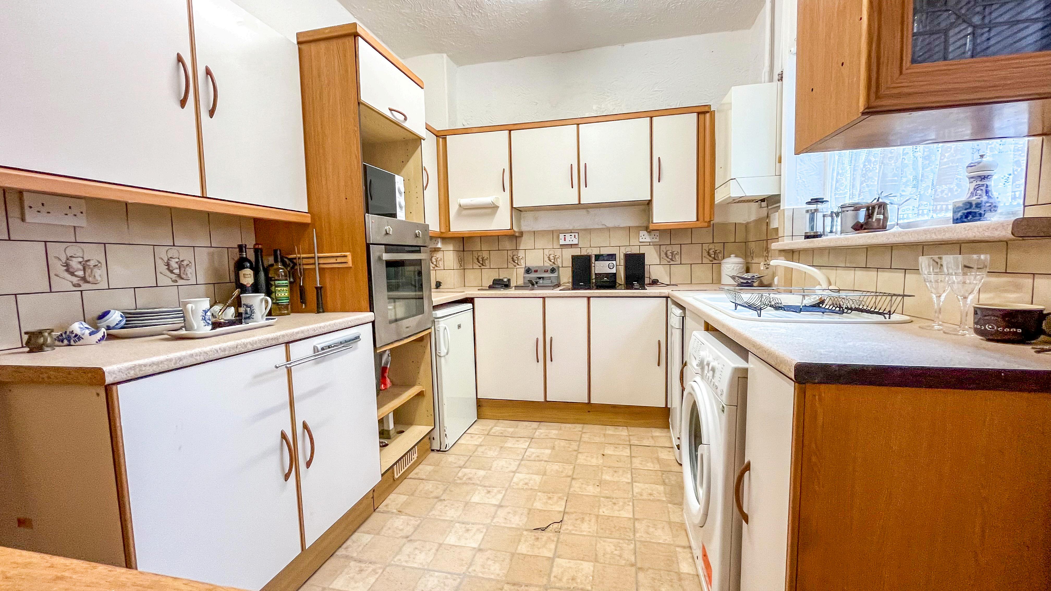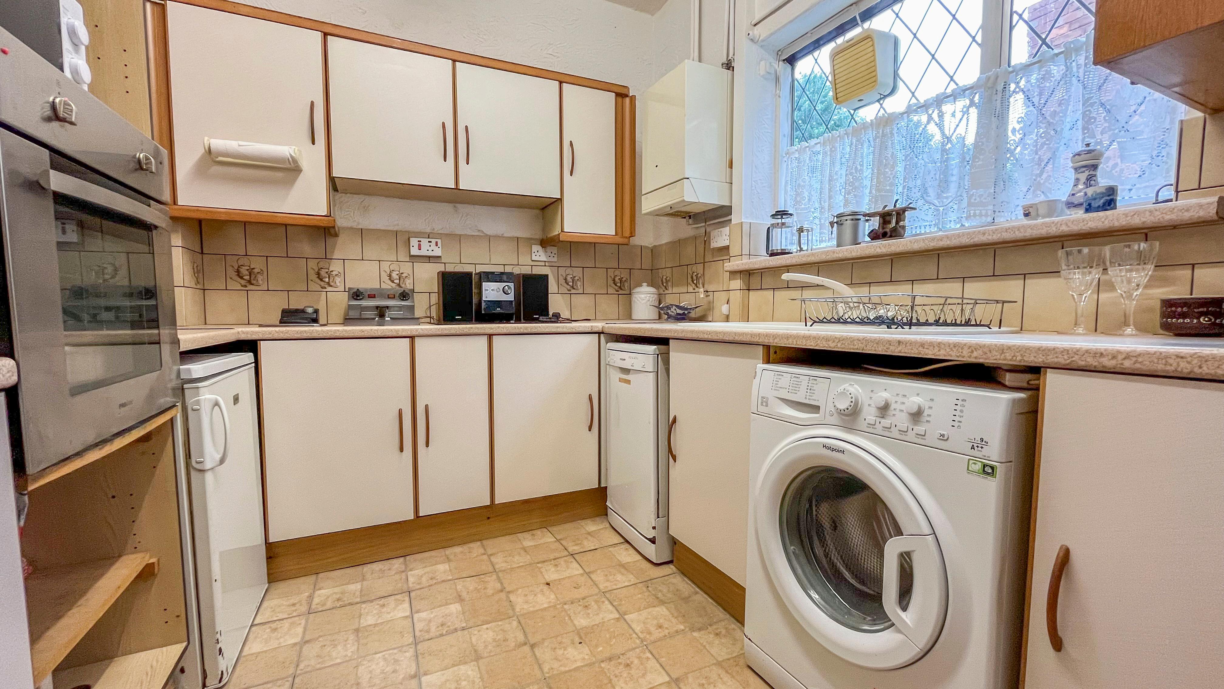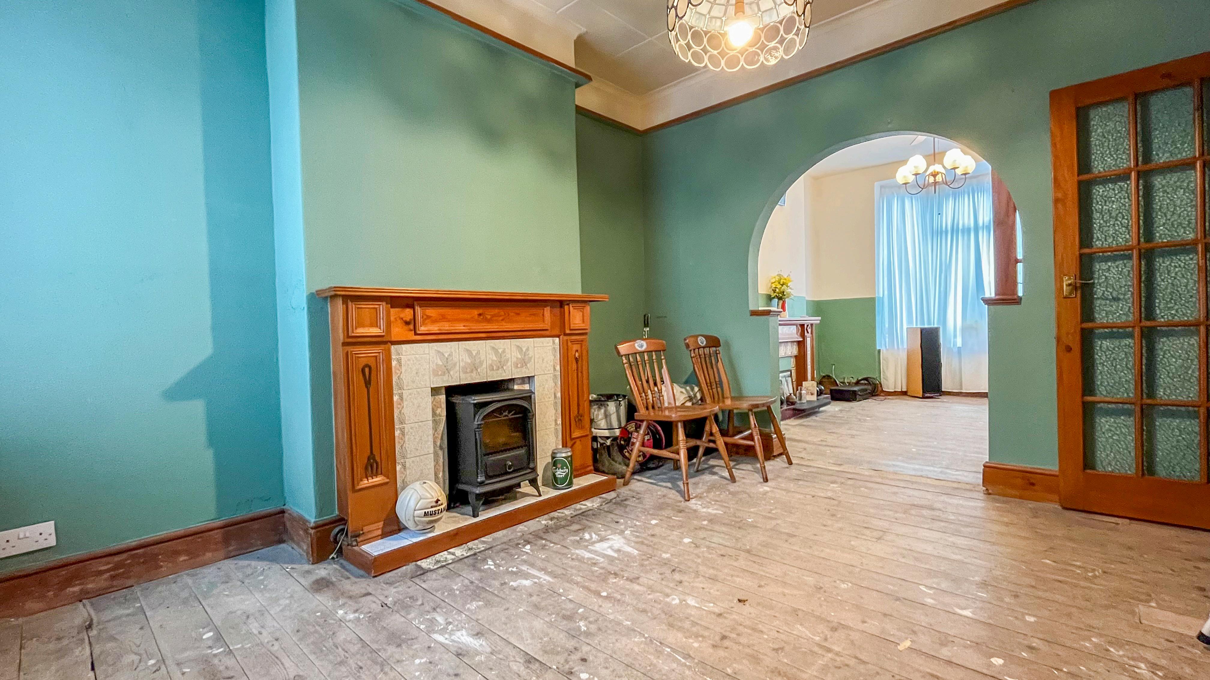 As you step inside, the entrance hallway leads you to a bay-fronted lounge featuring a decorative tiled fire surround. An archway connects the lounge to the dining room, creating a spacious and versatile living area. The traditional fitted kitchen, complete with understairs storage and a side exit door to the rear garden, offers practicality and charm.