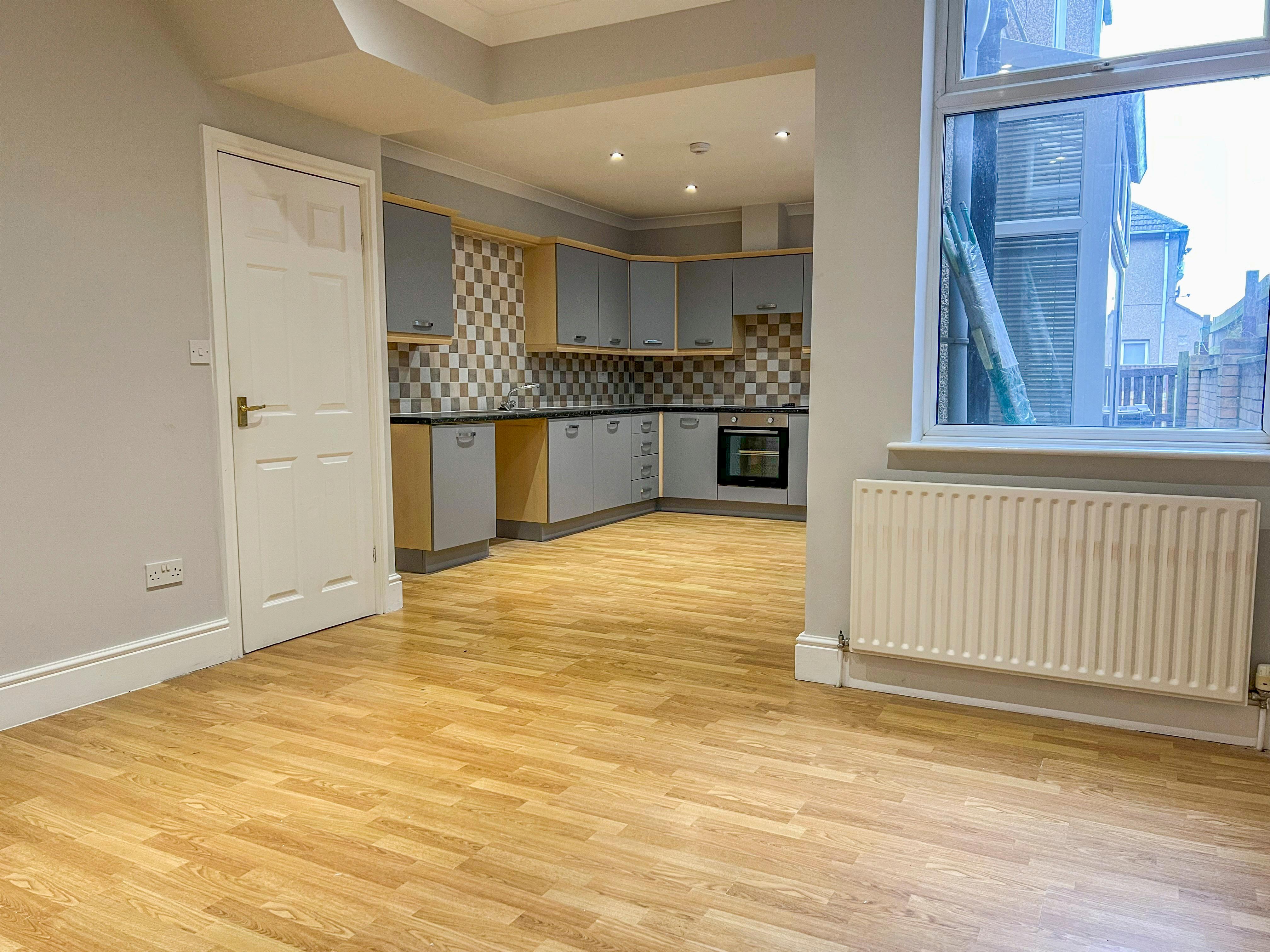 The property benefits from a shared main entrance, leading to separate private entrances. Upon entry, you are welcomed into a bright, open-plan living space that seamlessly combines the lounge and kitchen-dining area — perfect for modern living. The front of the flat features a lounge or generously sized double bedroom, allowing you to tailor the layout to your needs.
