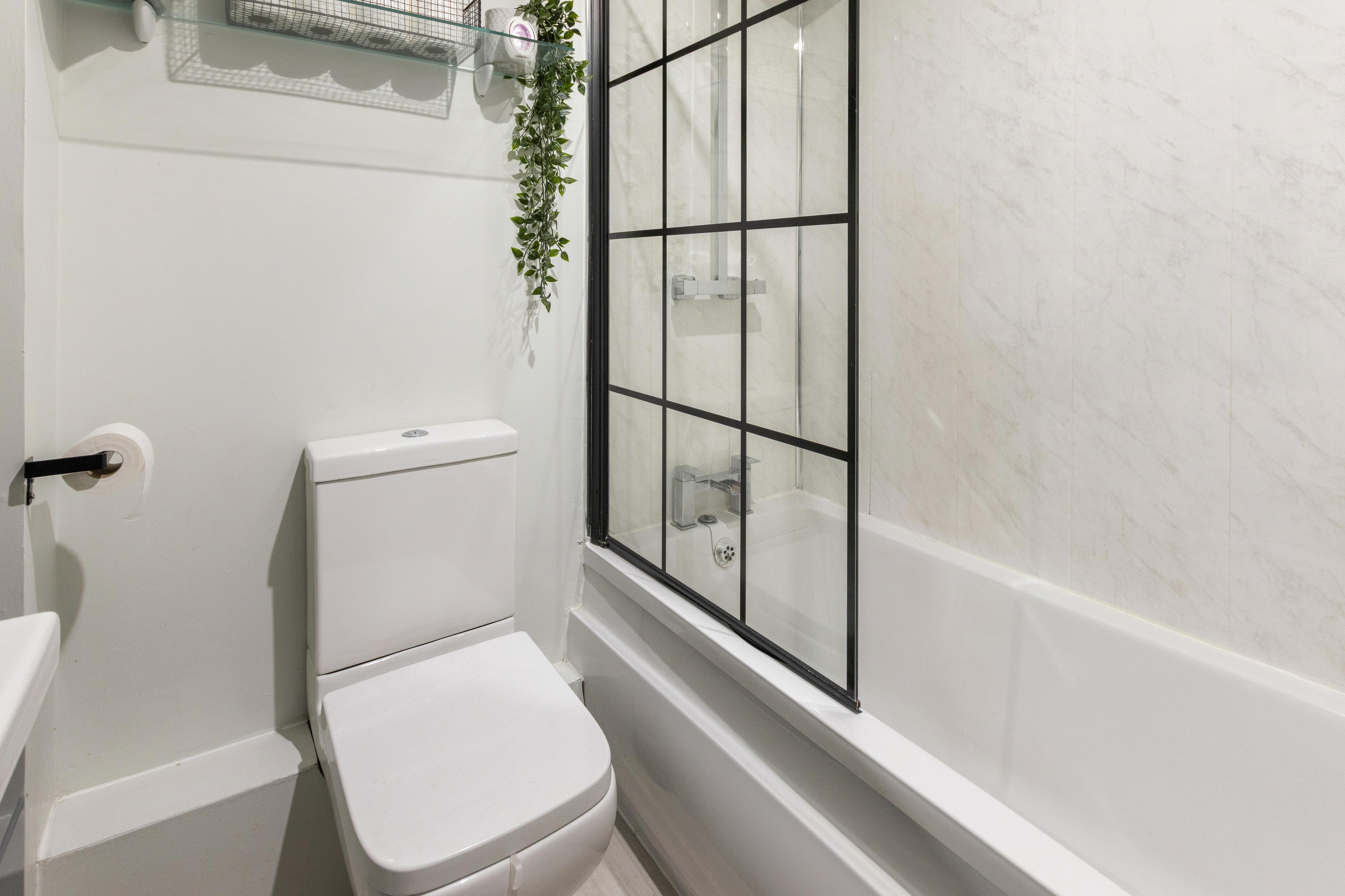 Ascending upstairs, the property accommodates two generously sized double bedrooms alongside a sleek, modern bathroom. The rear bedroom benefits from built-in wardrobes, maximizing storage without compromising on space.